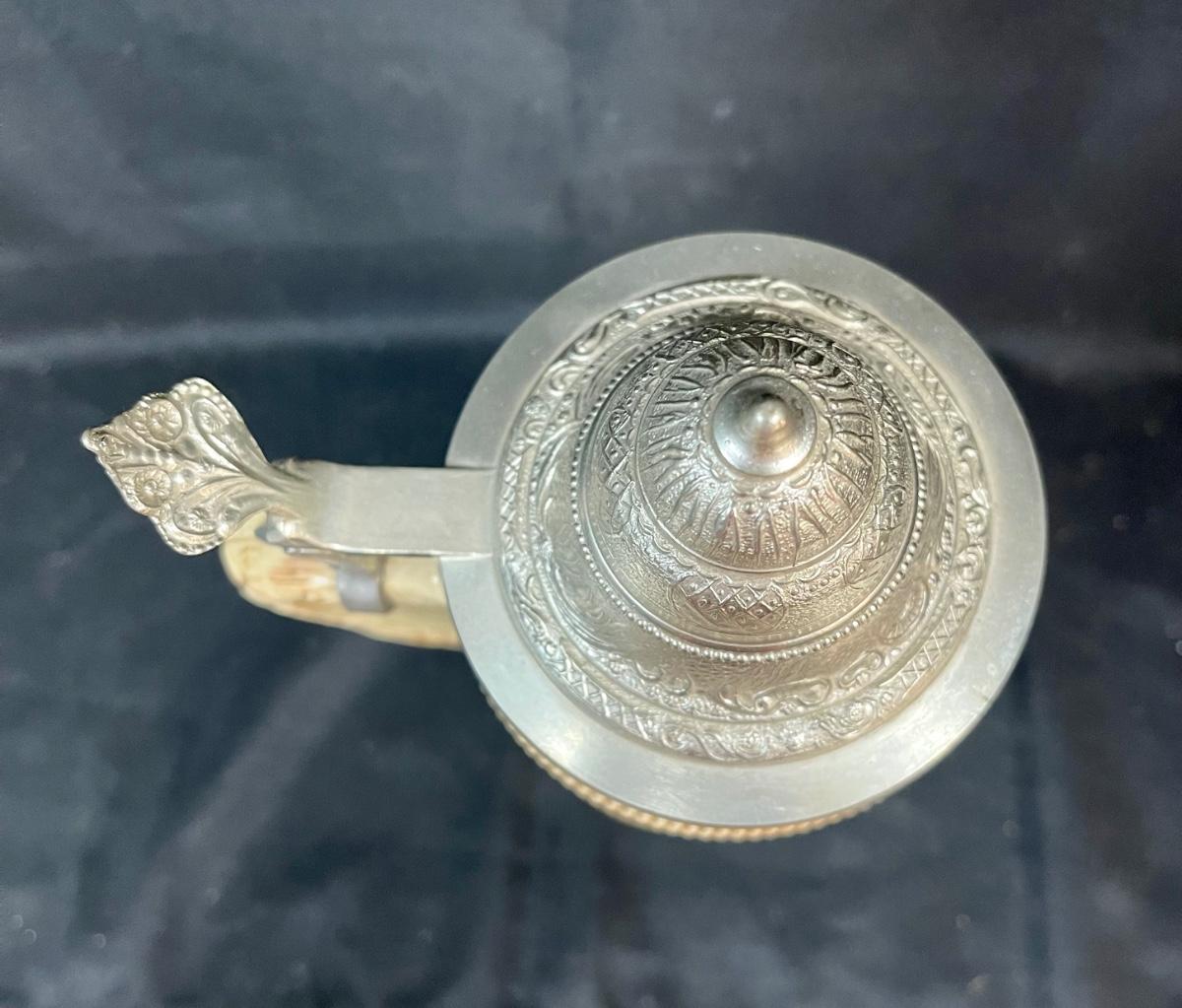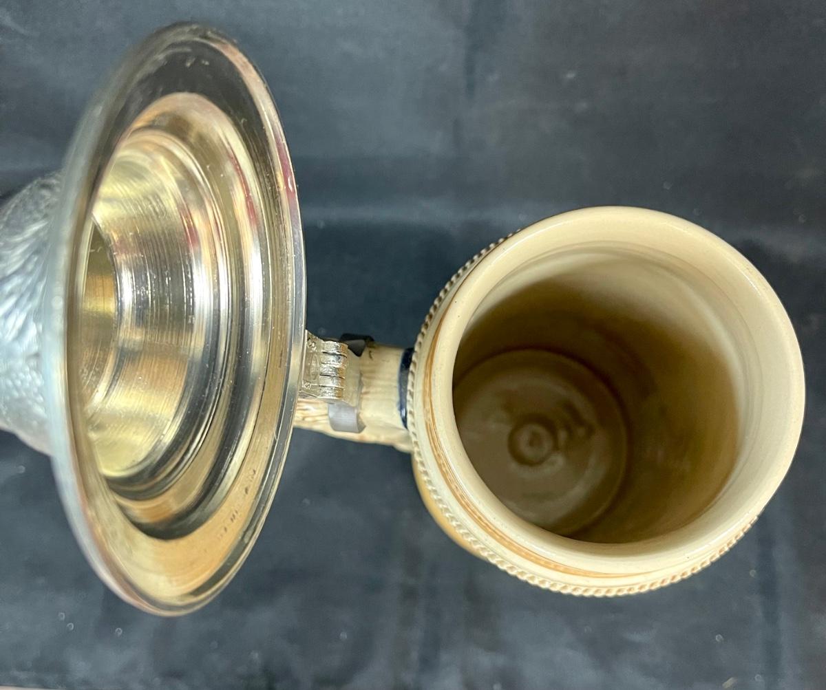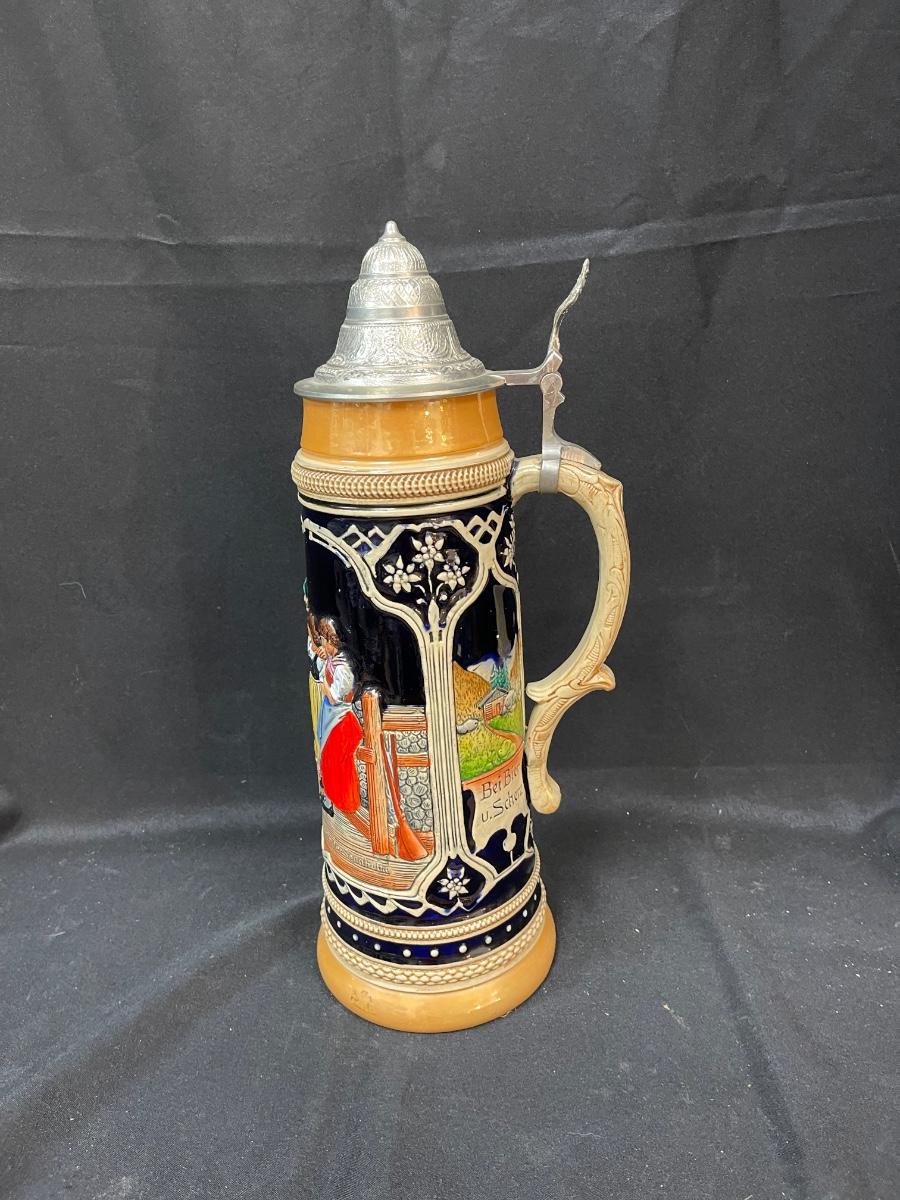 Western Germany Lidded Beer Stein 18” Tall Ceramic party scene