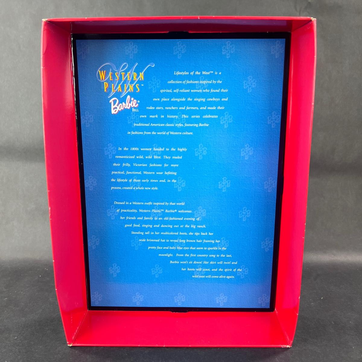 Part of the Lifestyles of the West Collection, comes this Western Plains Barbie, collector edition. This doll was produced in 1998 by Mattel. This doll has not been out of its box. This box does have some damage. **|** Please see photos for details and condition. ::: Shipping is available on this lot. If you require shipping you must let us know at the close of the auction. We will coordinate with you after the item has been won. Shipping fees will include insurance up to or exceeding the value of all items being mailed. If you have any questions regarding this lot please contact the auctioneer either via this website, by direct email or by phone. PICK UP TIMES and other important information can be found in the TERMS and DESCRIPTION of the auction. Please take a look for pertinent information. Thanks!
