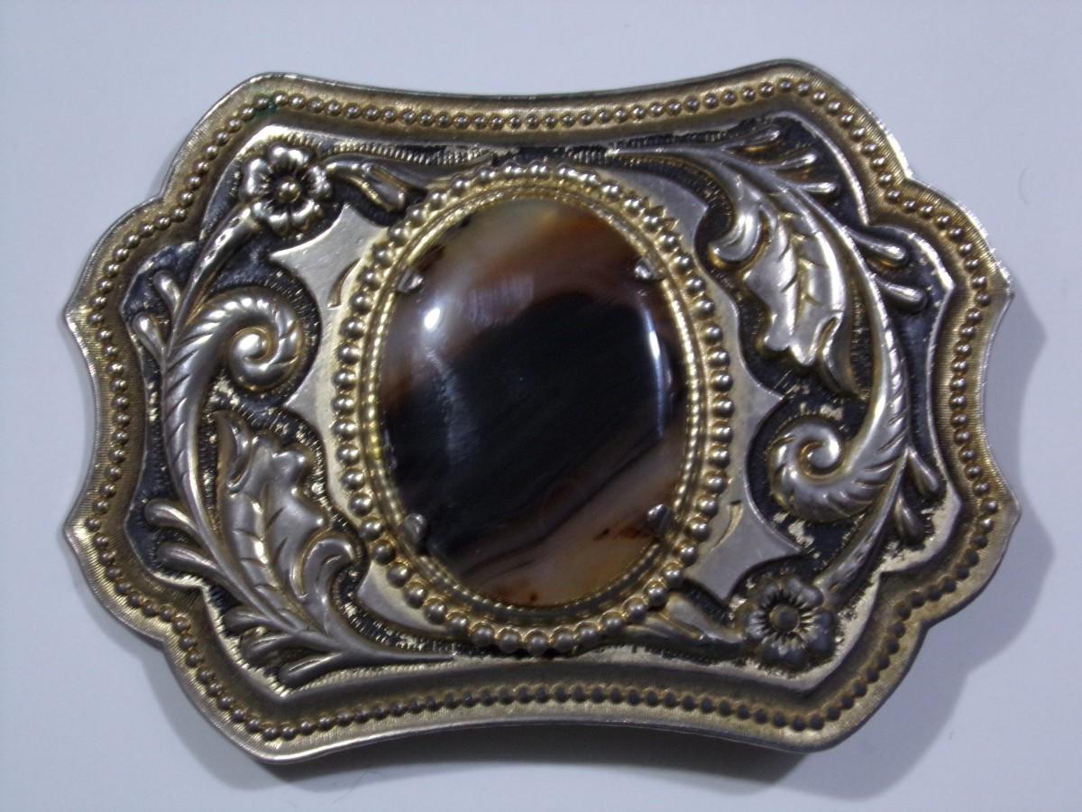 Western style men's belt buckle w/ tiger eye stone, pre-owned