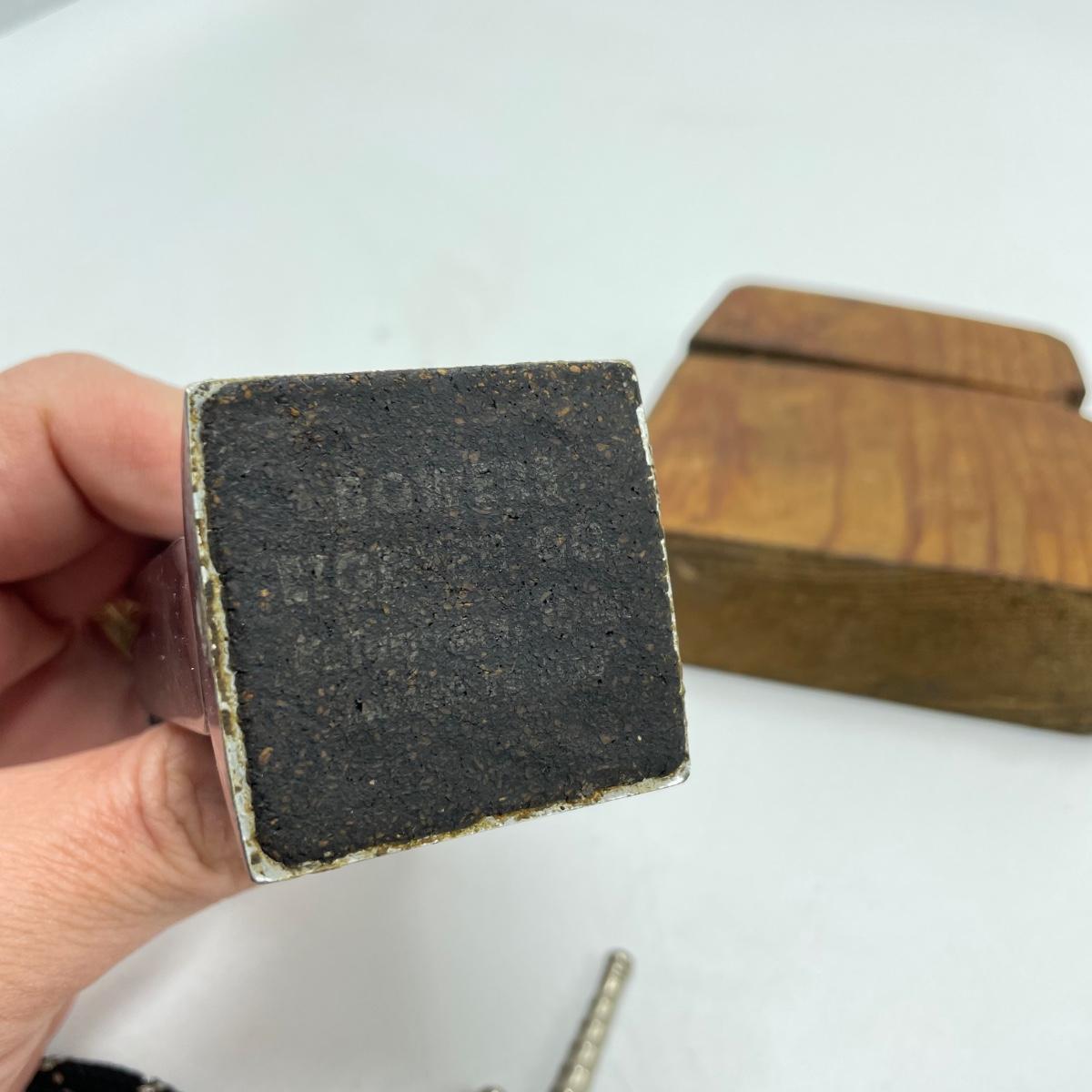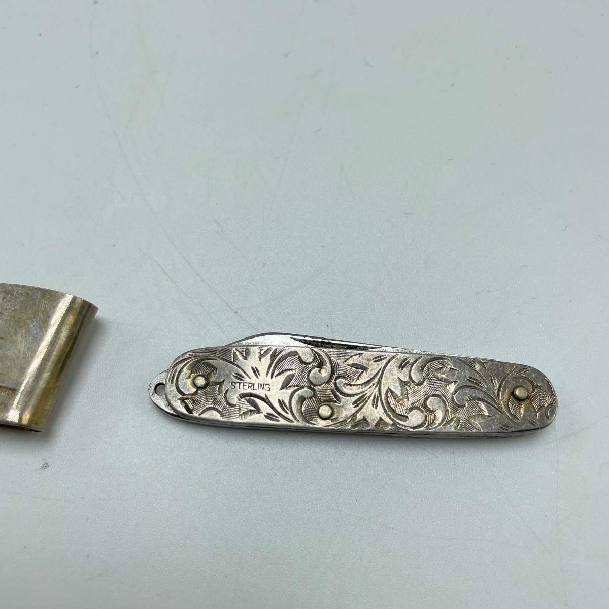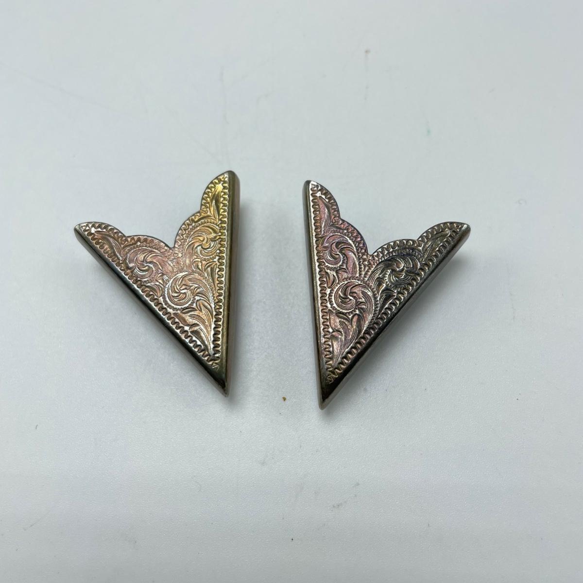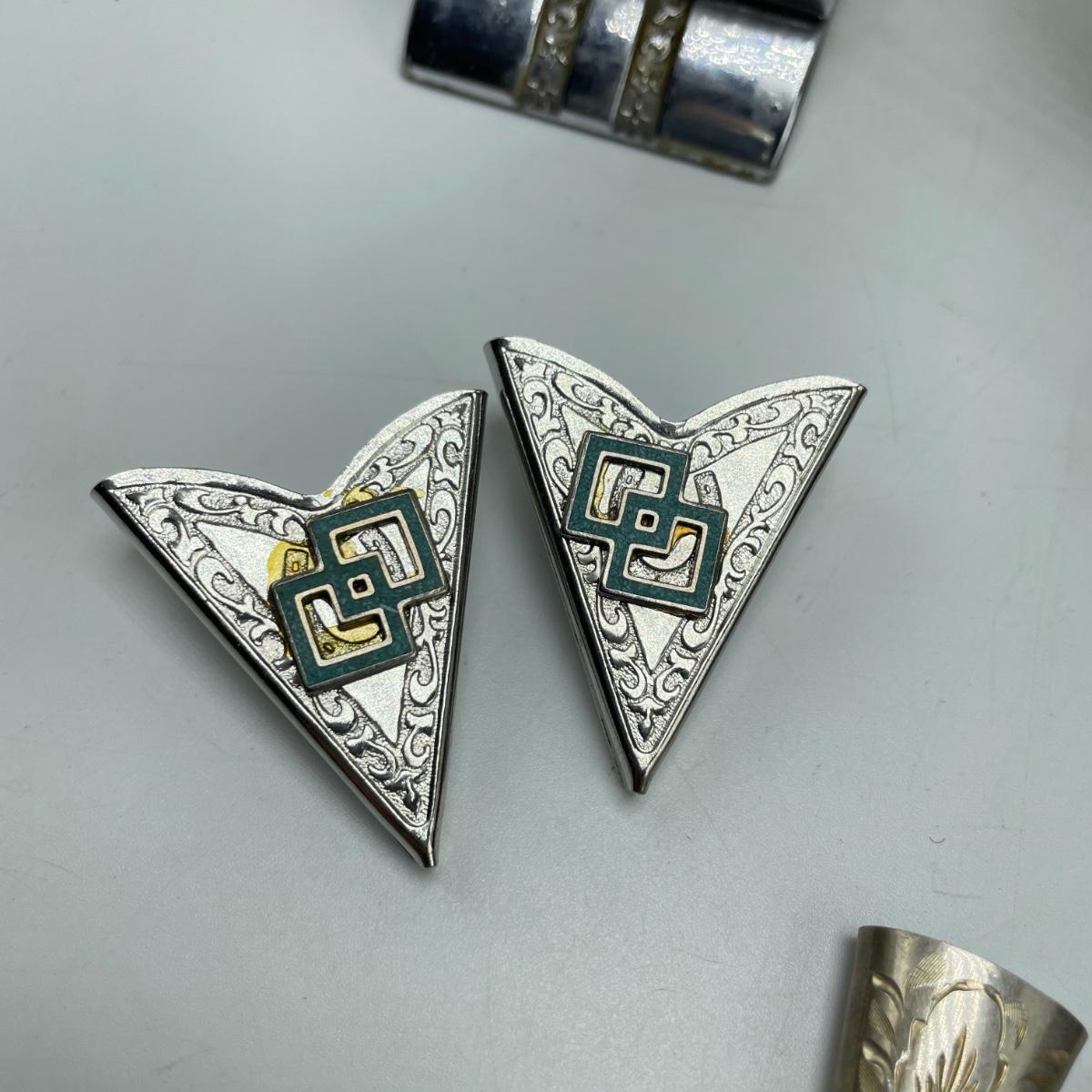 A heavy brass belt buckle appears to be hand painted with a clear coat of resin to protect it. Lot includes a Swank bolo, two sets of collar tips and two vintage lighters. Lot also features two sterling pieces- a pocket knife and another western tie accessory. The pocket knife appears somewhat swollen and will not currently open. See images. Shipping available.