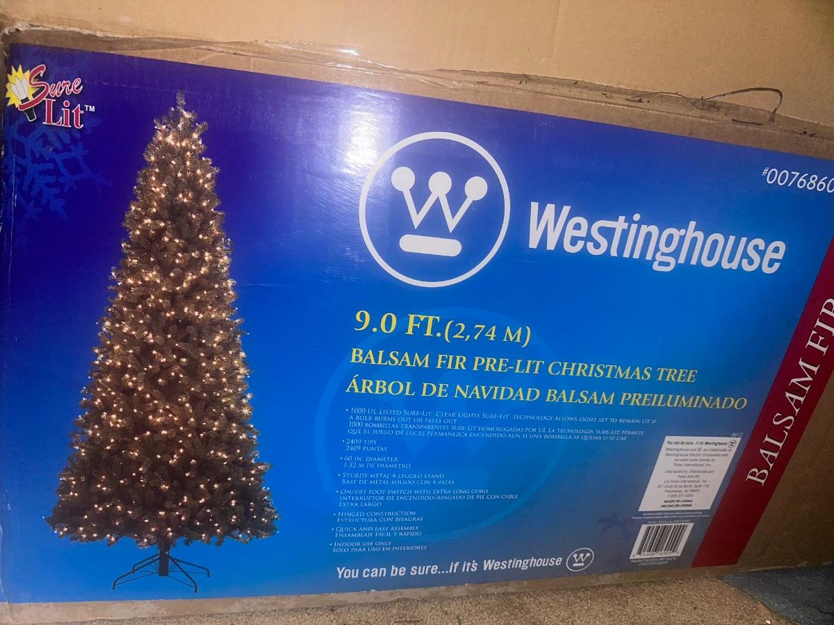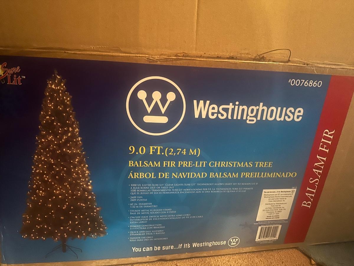 9 foot Fir Christmas tree. In 3 pieces. Heavy duty! Ready to brighten up your Christmas season!