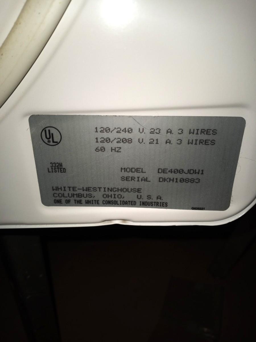 WESTINGHOUSE CLOTHES DRYER WITH MANUEL