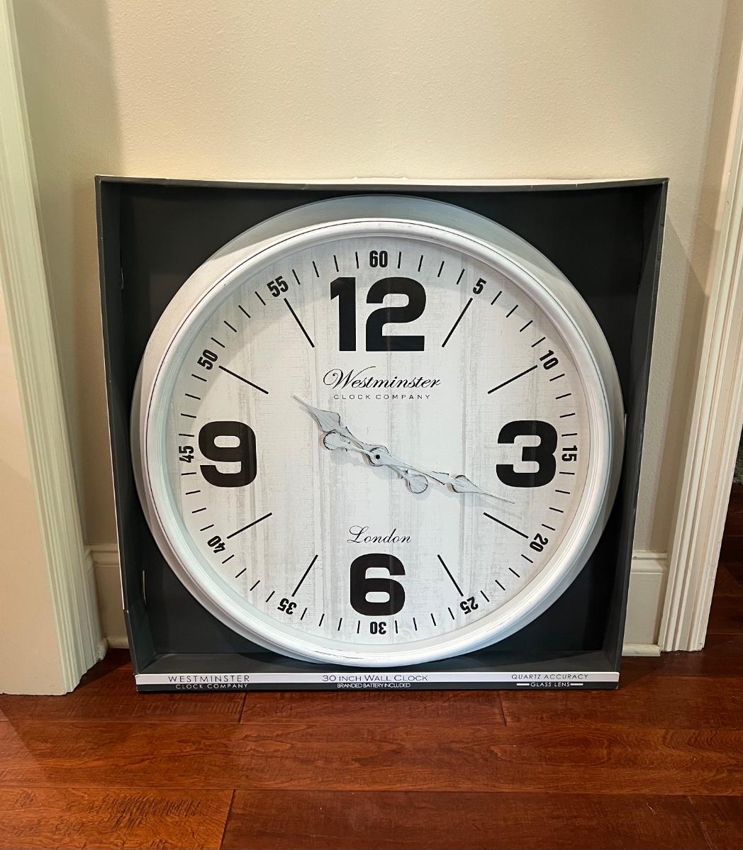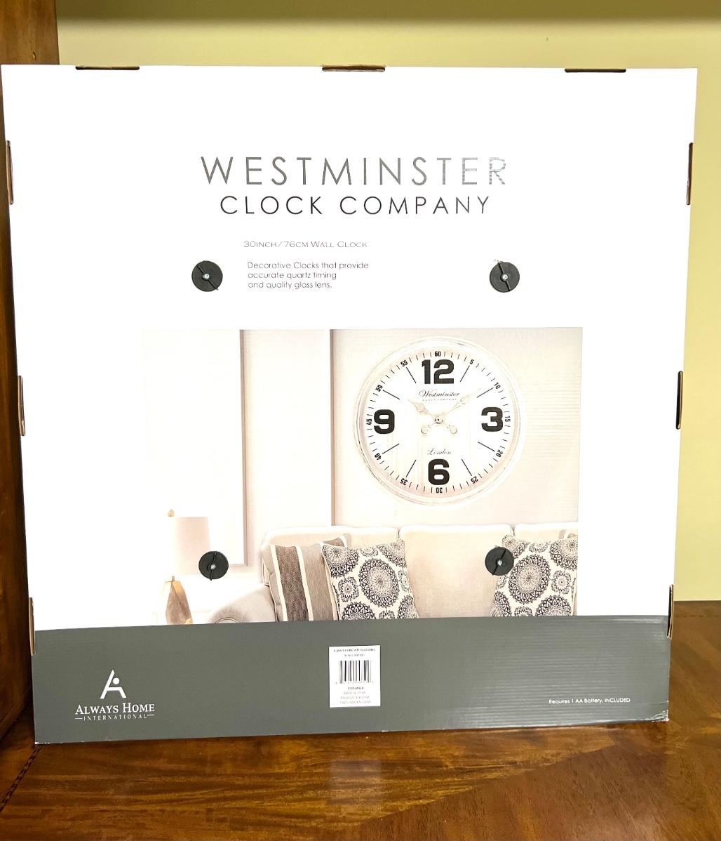 Large Westminster 30” Wall clock. Brand new in packaging.