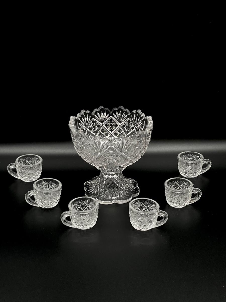 (1) Punch bowl 4 1/4” H x 4.5” Round ~ (6) Cups 1 1/4” H ~ Can be used as a Childs Set