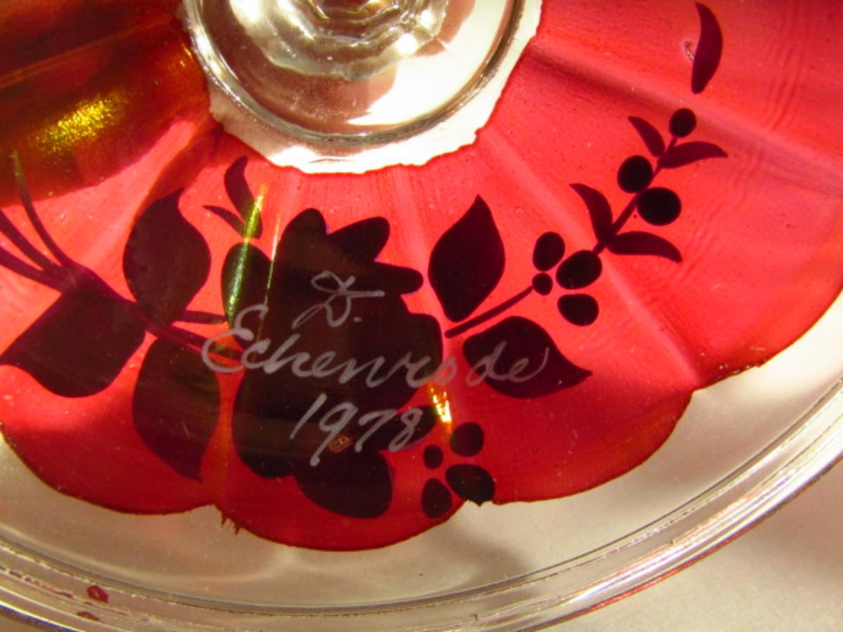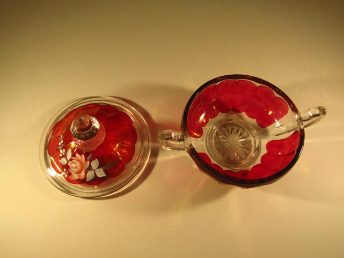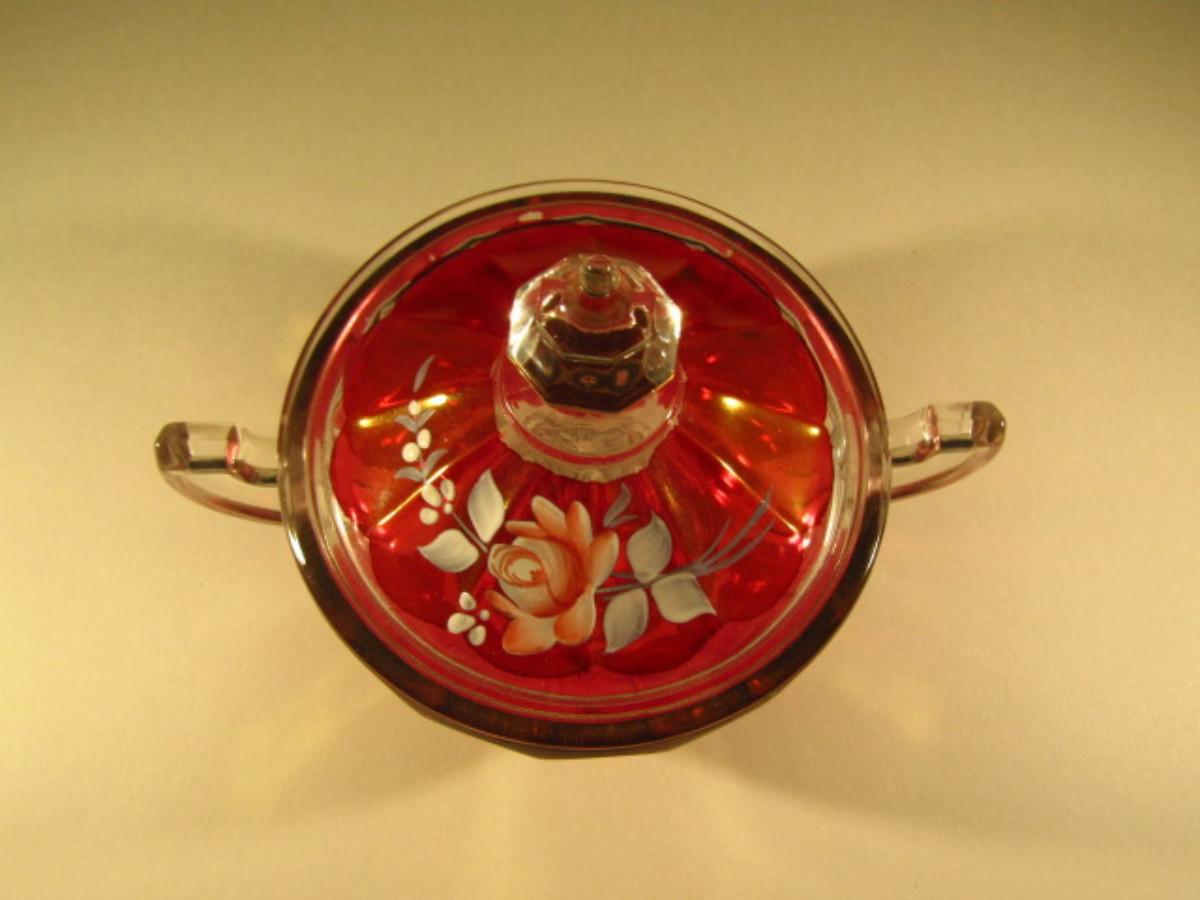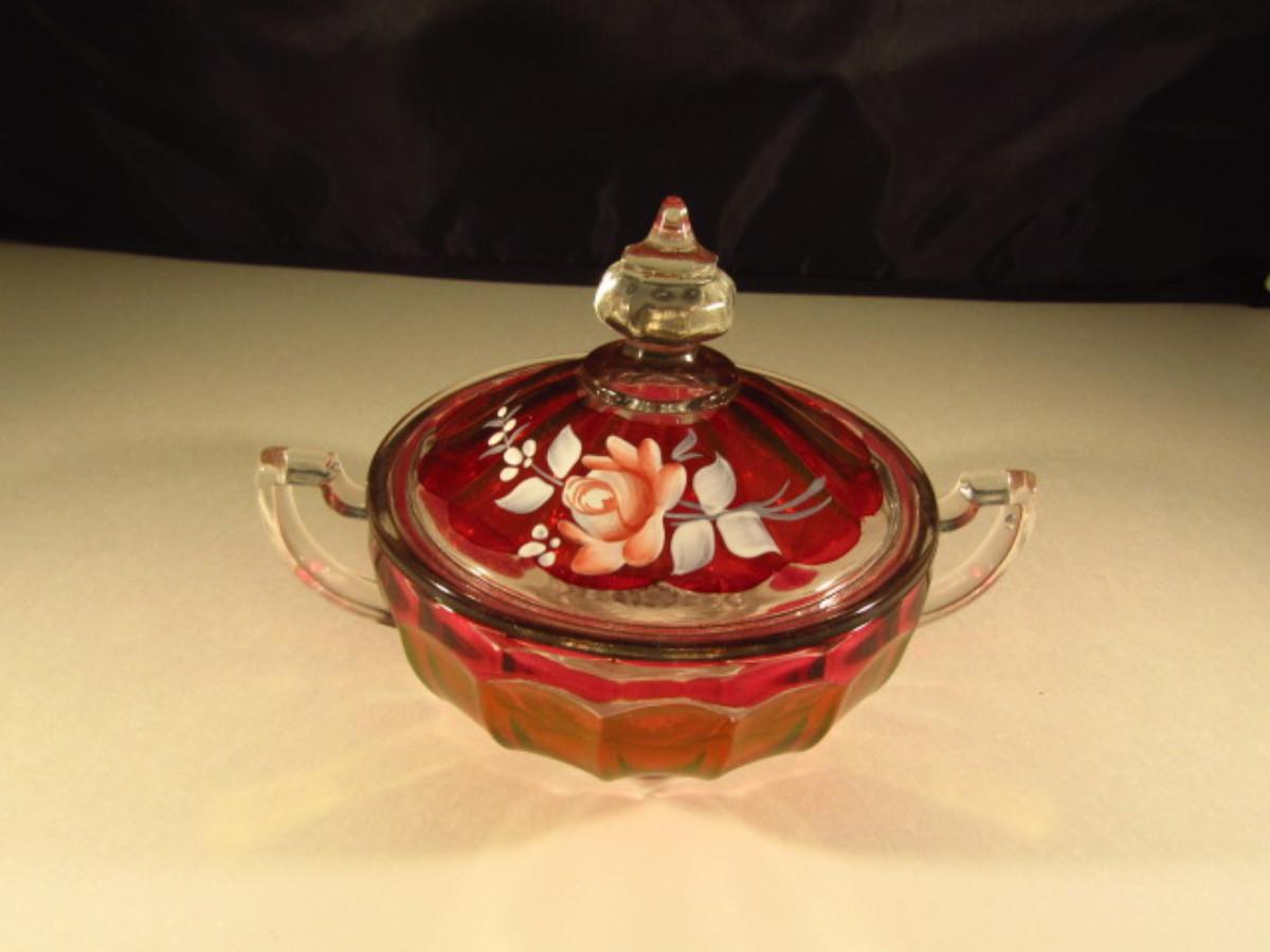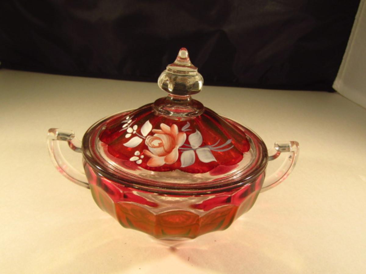 Westmoreland Hand Painted Glass Sugar Bowl with Lid (Signed and Dated)