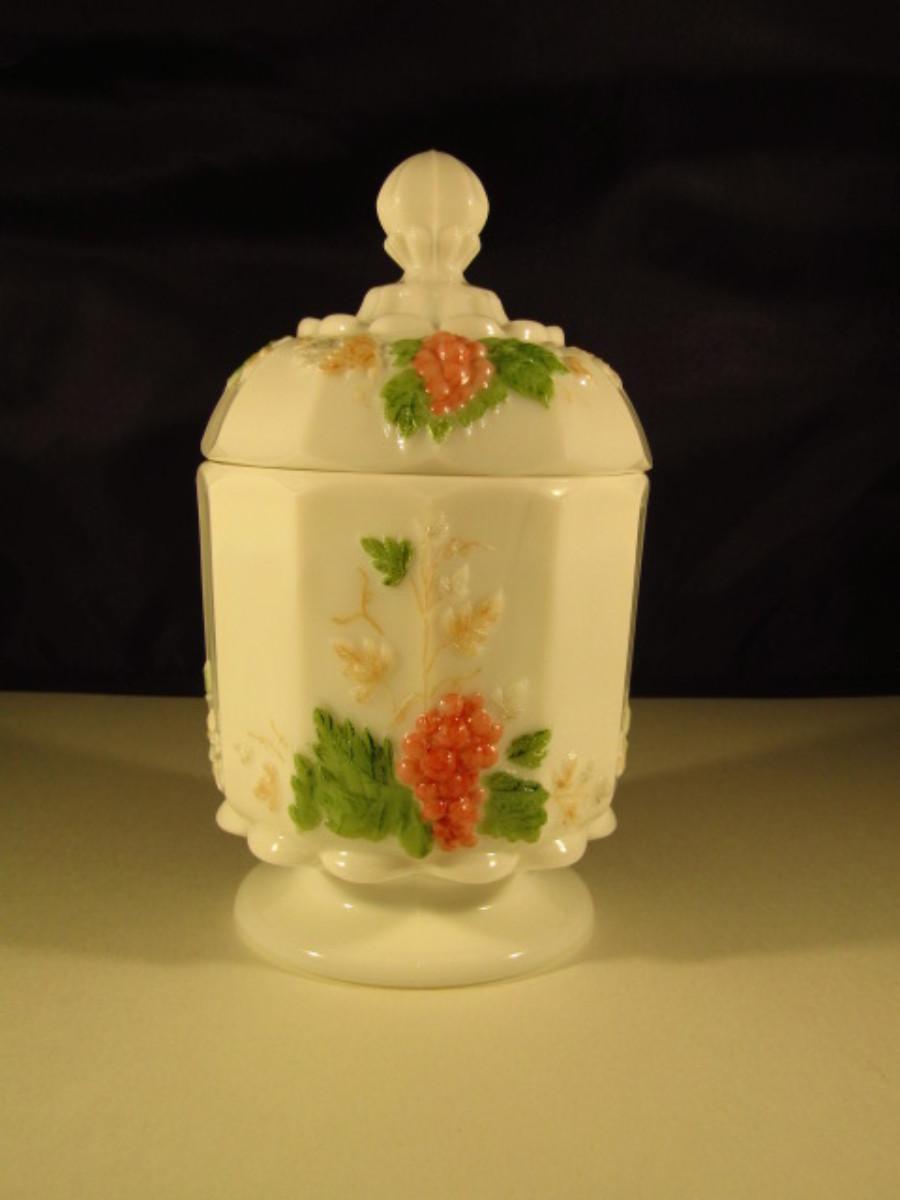 Westmoreland Milk Glass and Hand Painted Sugar Bowl with Lid