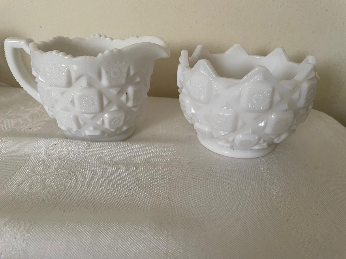 Westmoreland "Diamond" pattern Milk Glass Cream & Sugar