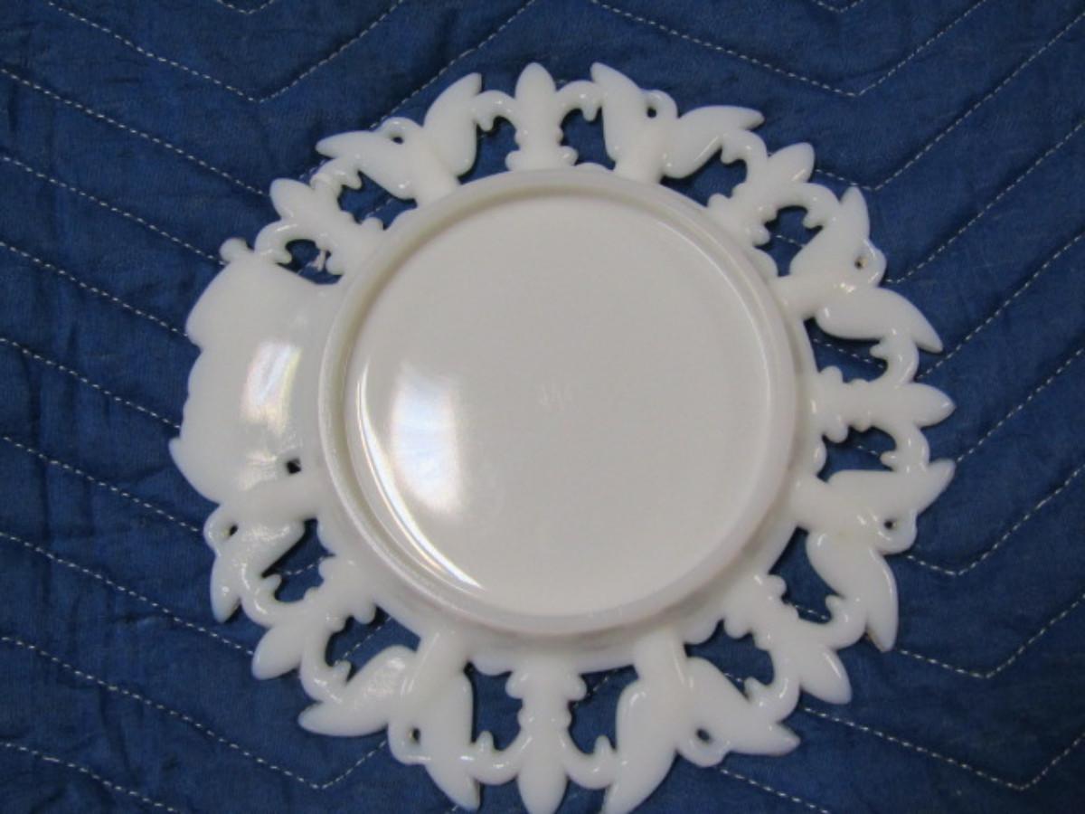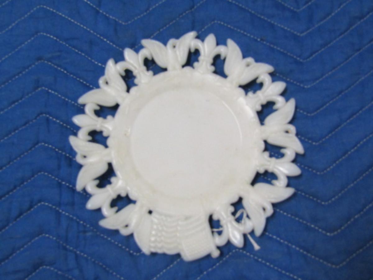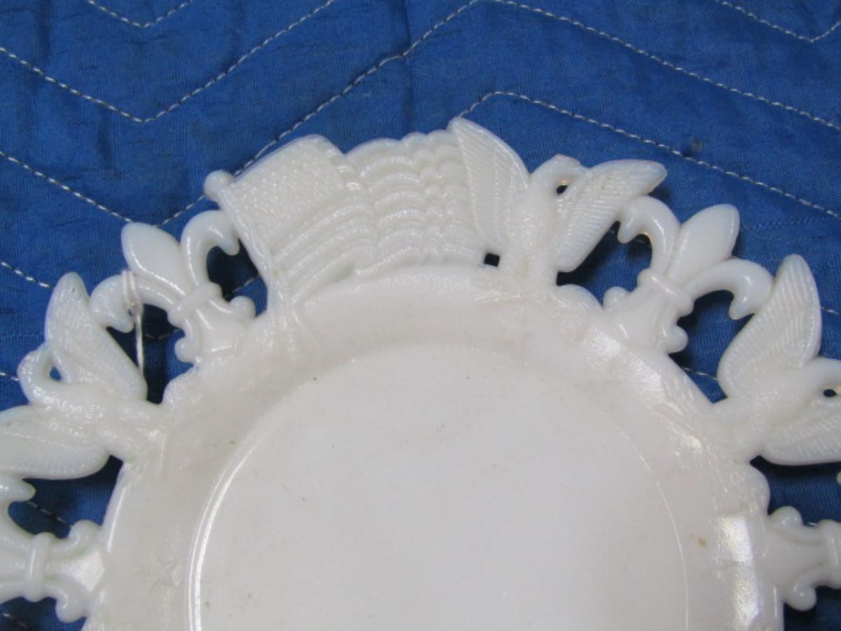 Westmoreland Milk Glass Plate With Flag, Eagles and Fleur De Lis- Approx 7" in Diameter