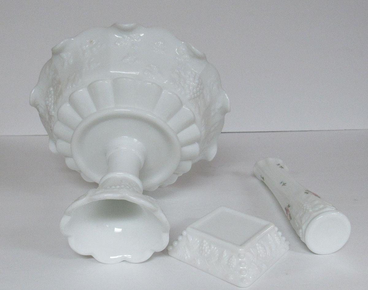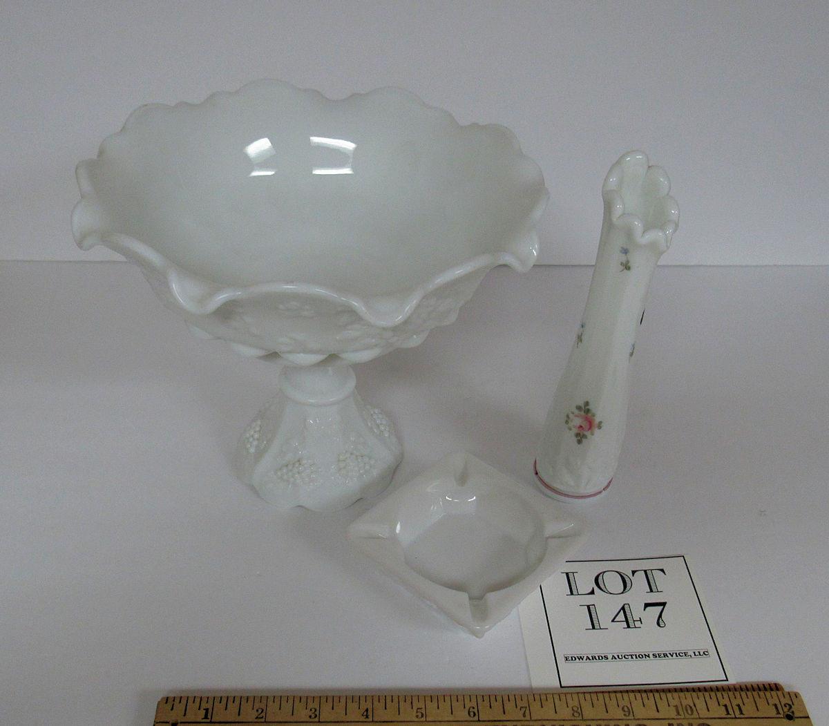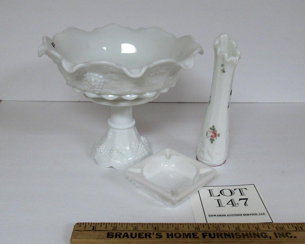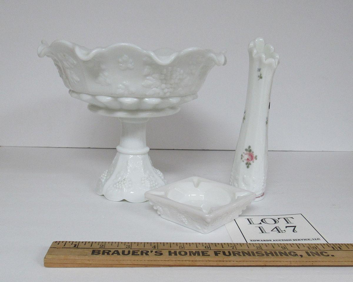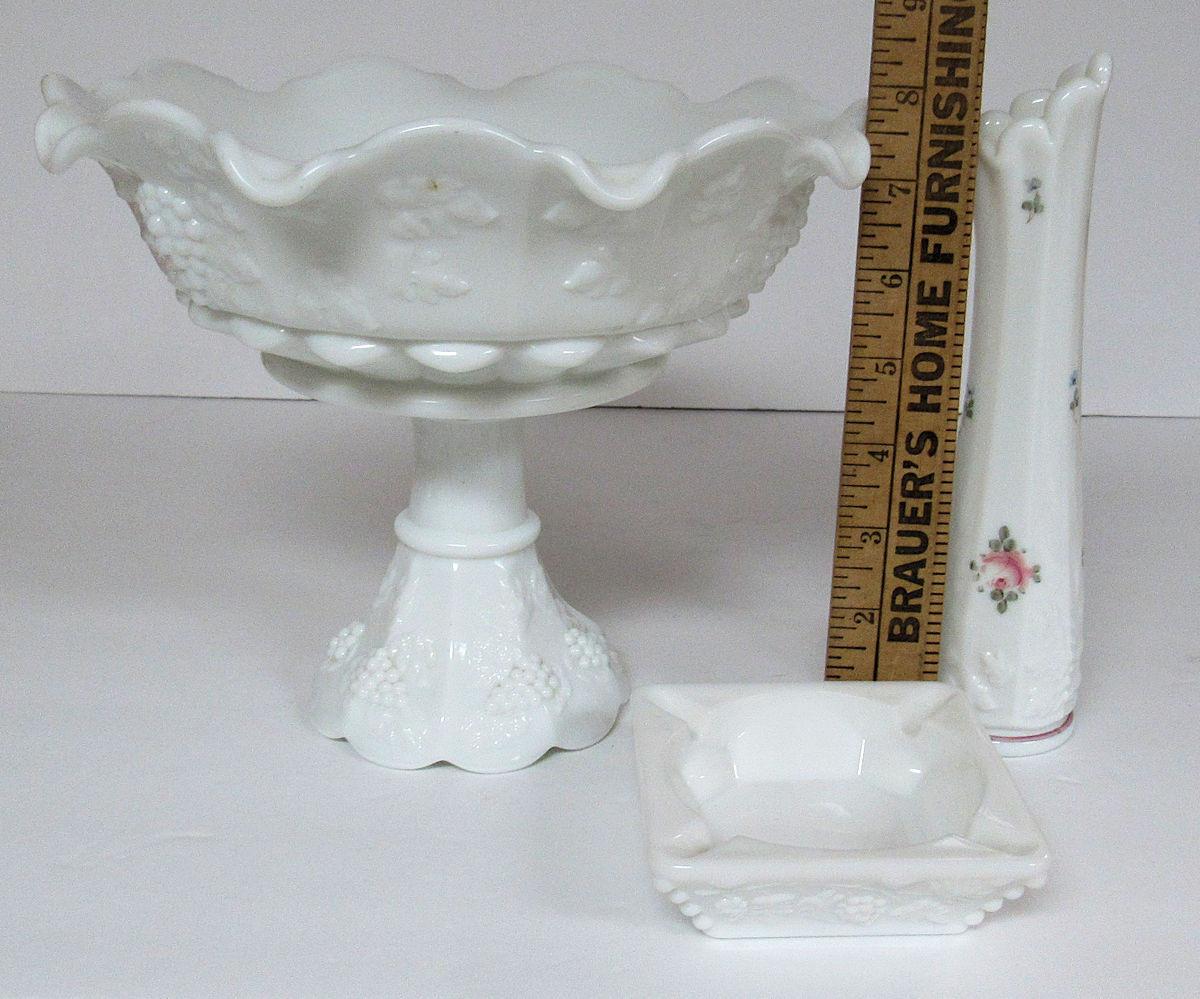Westmoreland Paneled Grape Lot, Large Compote, Ashtray, Hand Painted Bud Vase