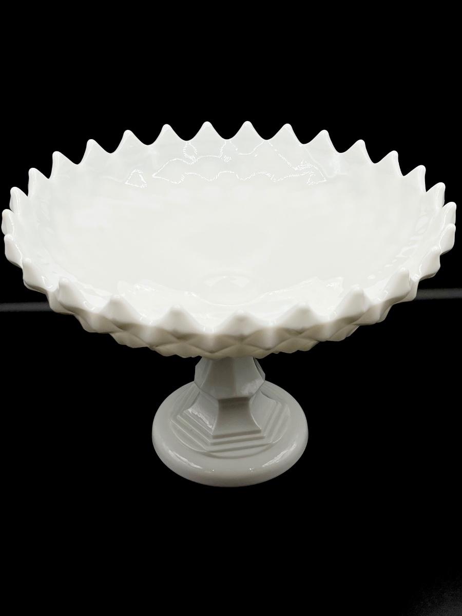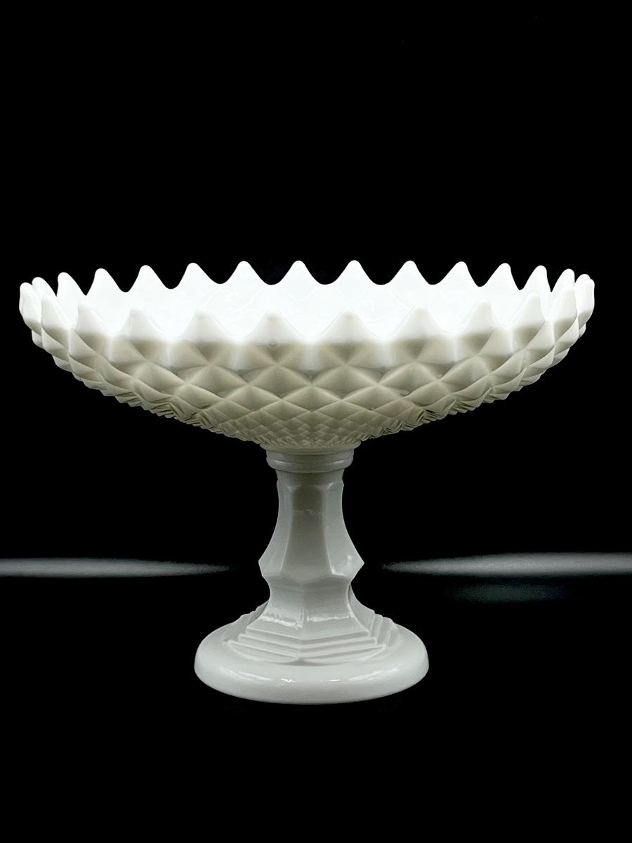 WESTMORELAND ~ Vtg. English Hobnail White Milk Glass Footed Candy Dish