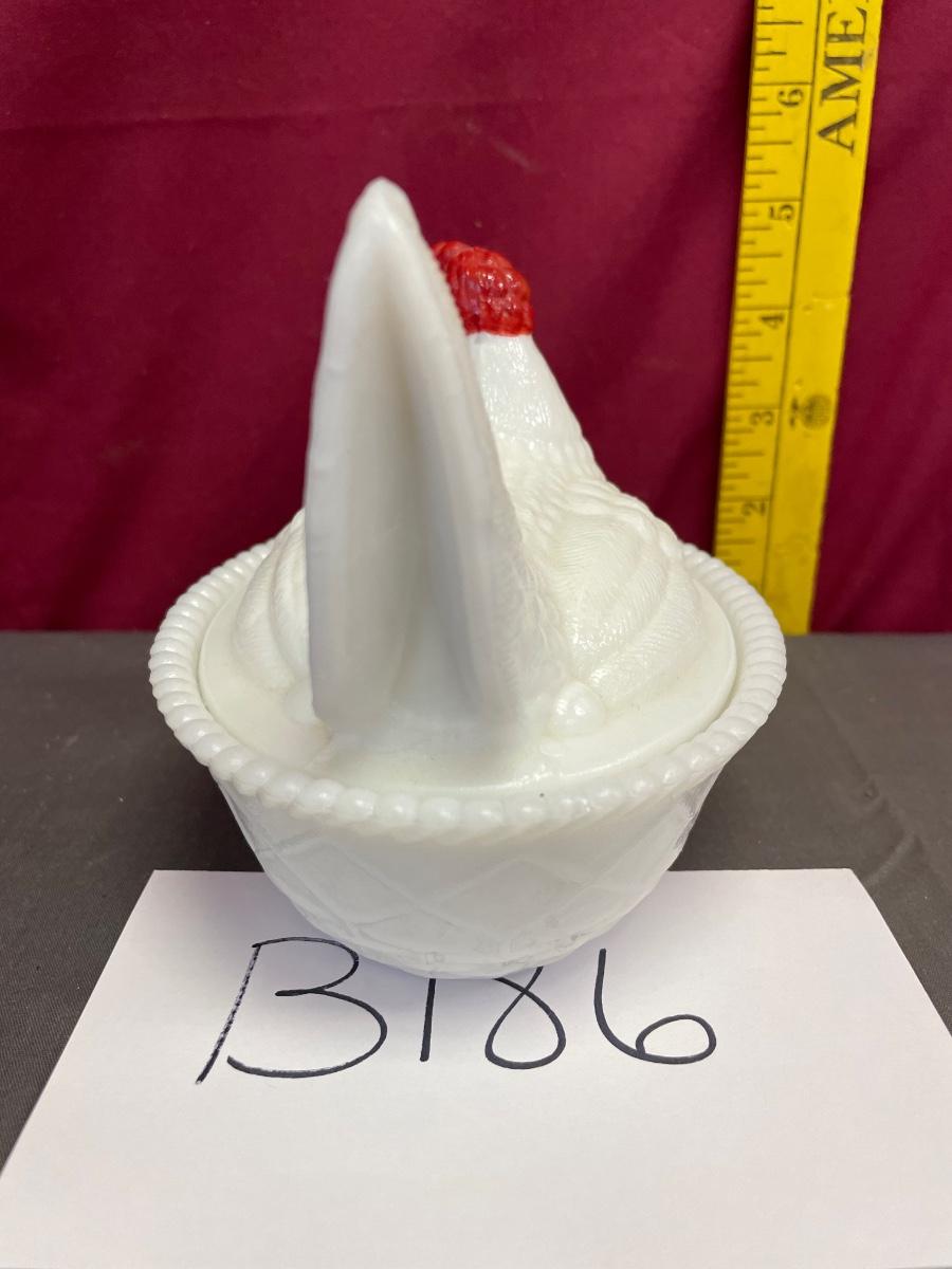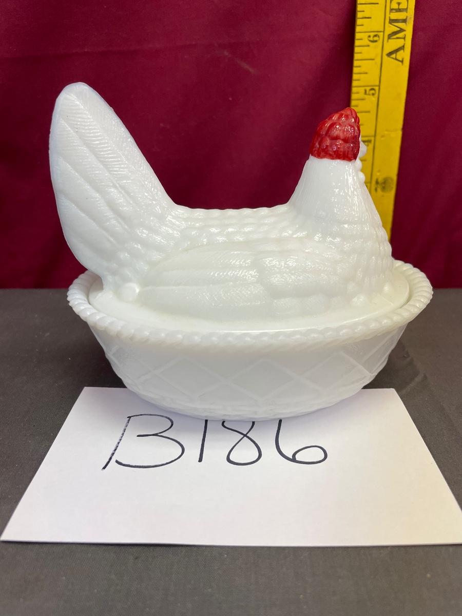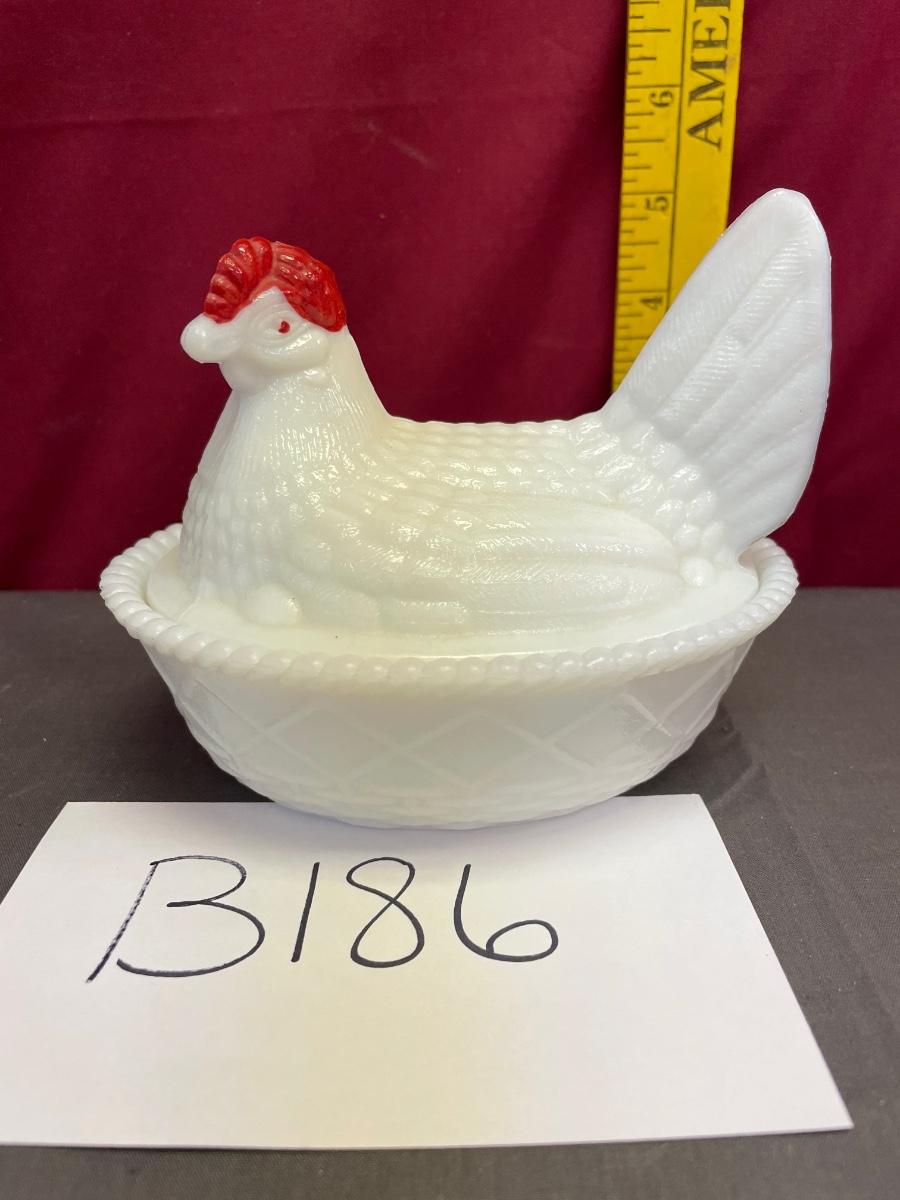 Westmoreland white hen on a nest