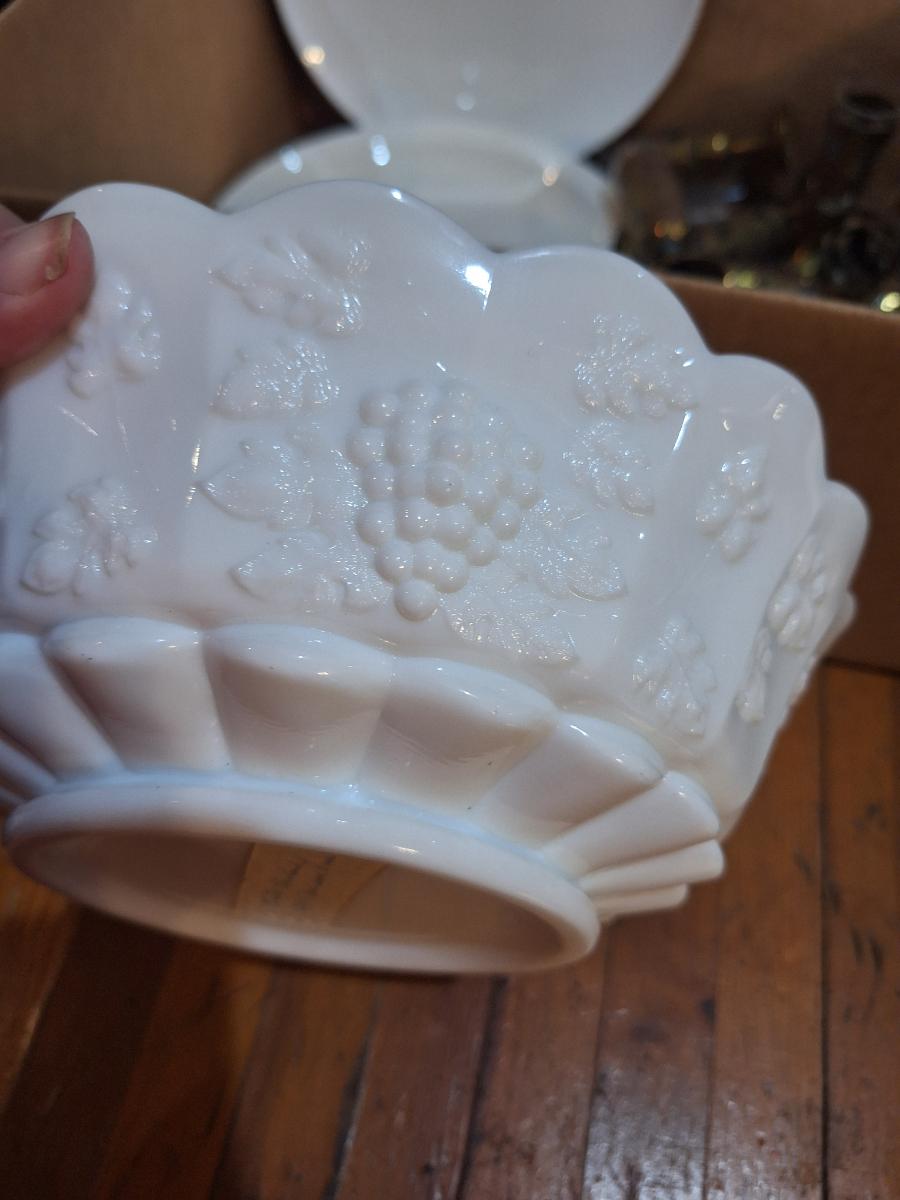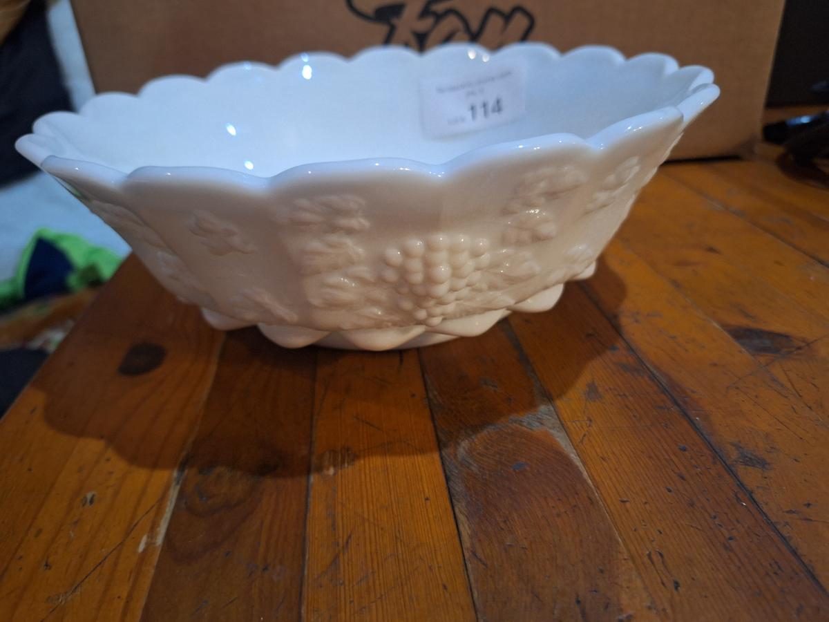 Westmoreland white milk glass bowl in Paneled grape pattern