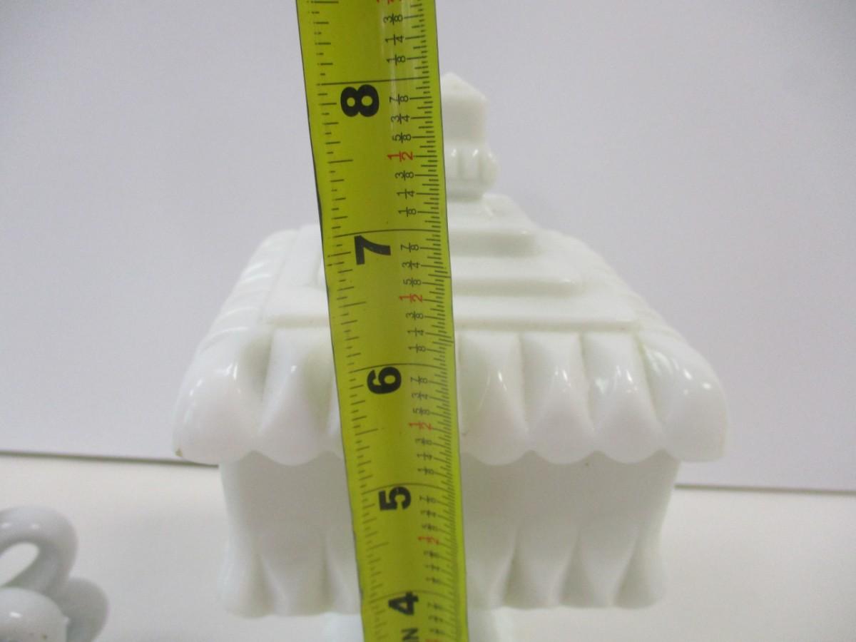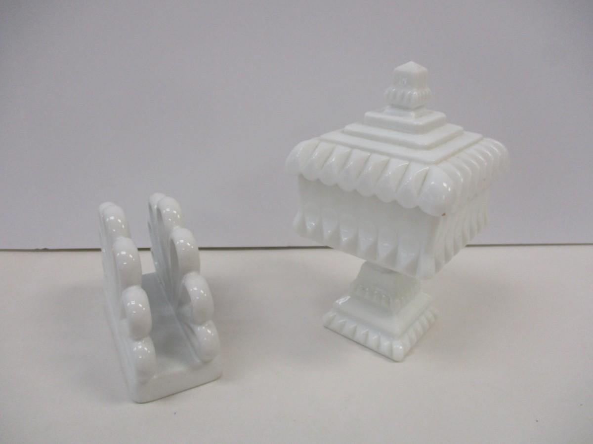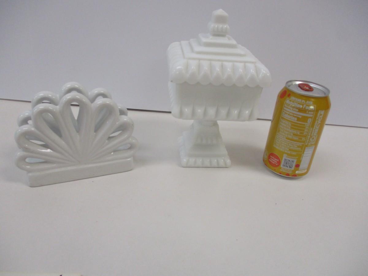 Westmoreland White Milk Glass Square Wedding/Box/Candy Dish With Lid & Milk Glass Napkin Holder
