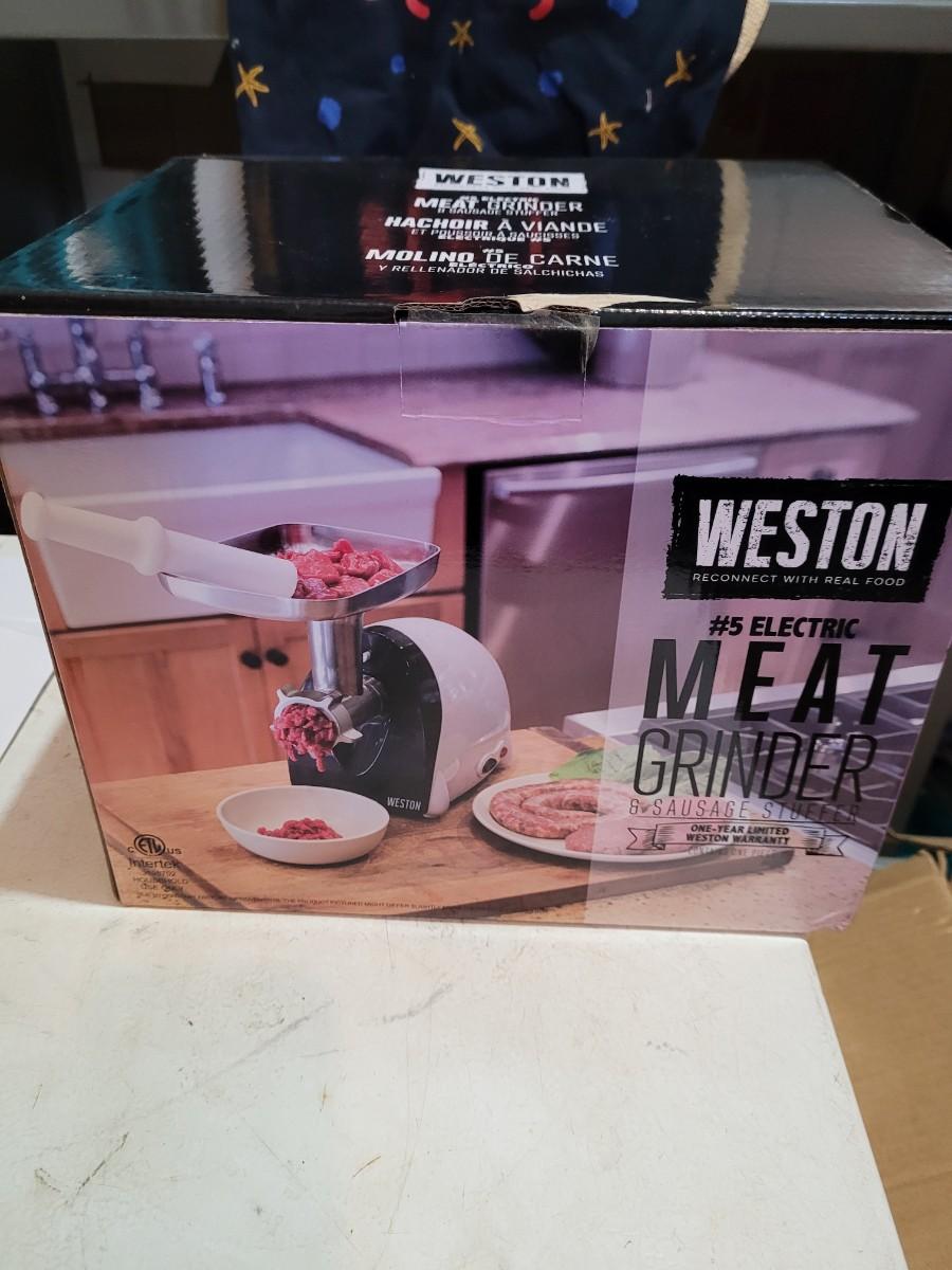 Weston meat grinder and sausage stuffer. New in box 5/8 hp 500 watt motor
