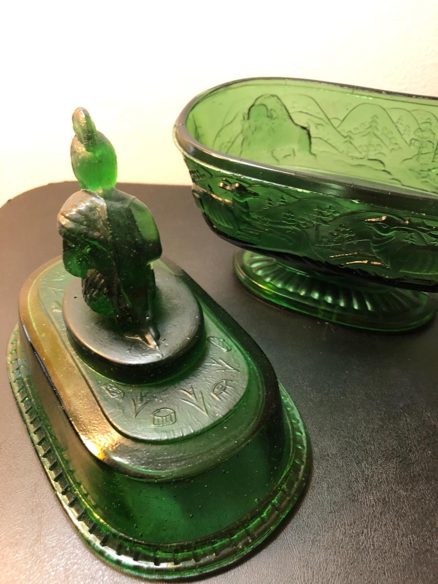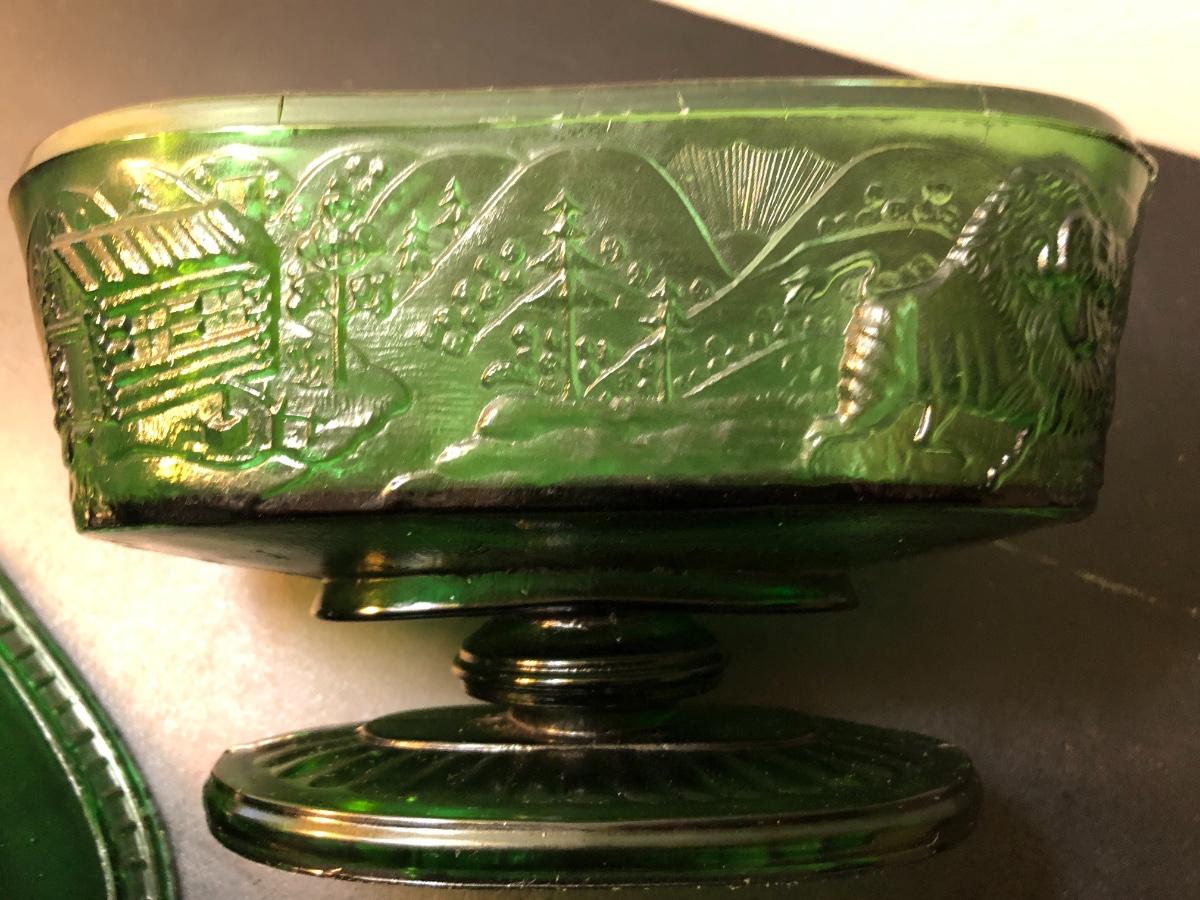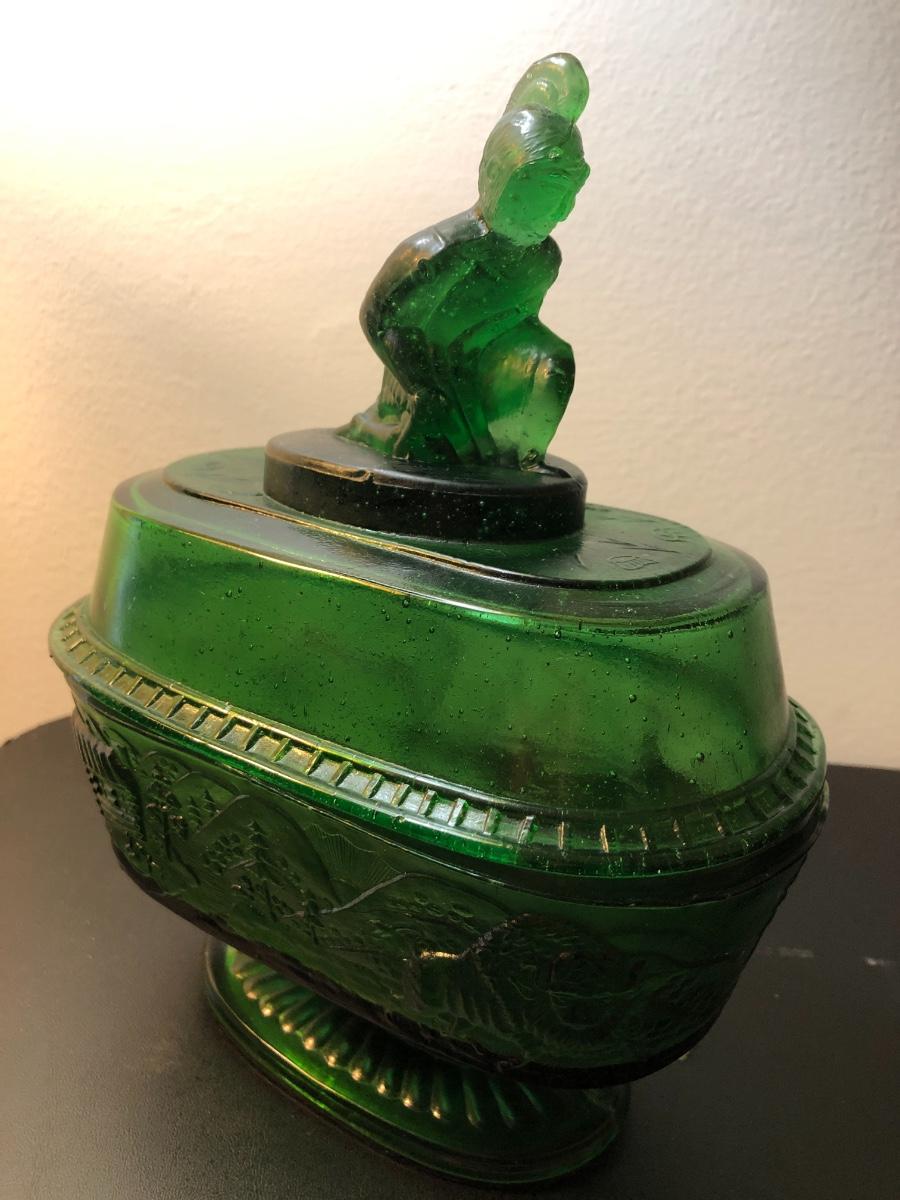 “Westward Ho” Rare Green Pioneer Glass by Gillinder and Sons -Lot 108