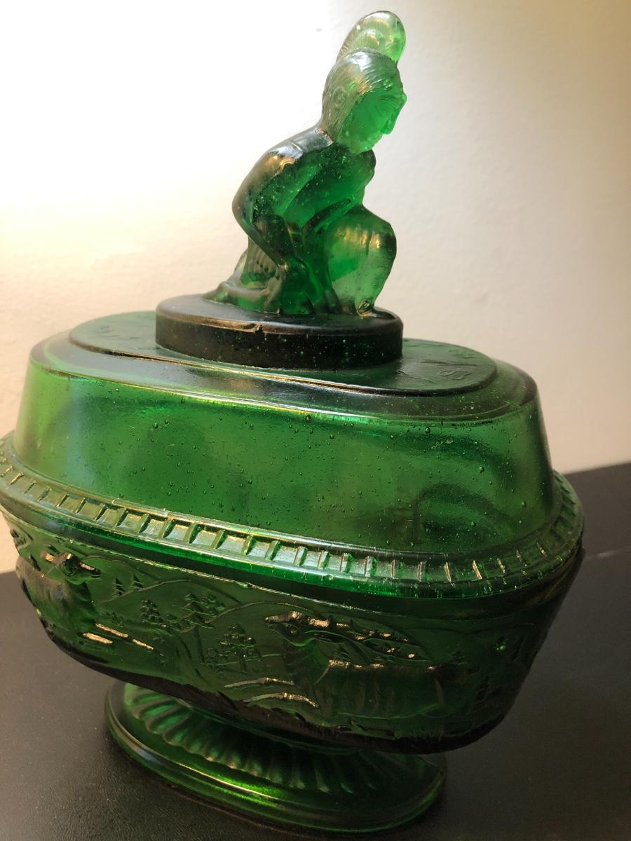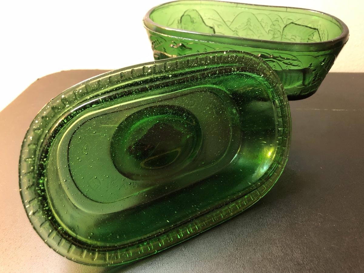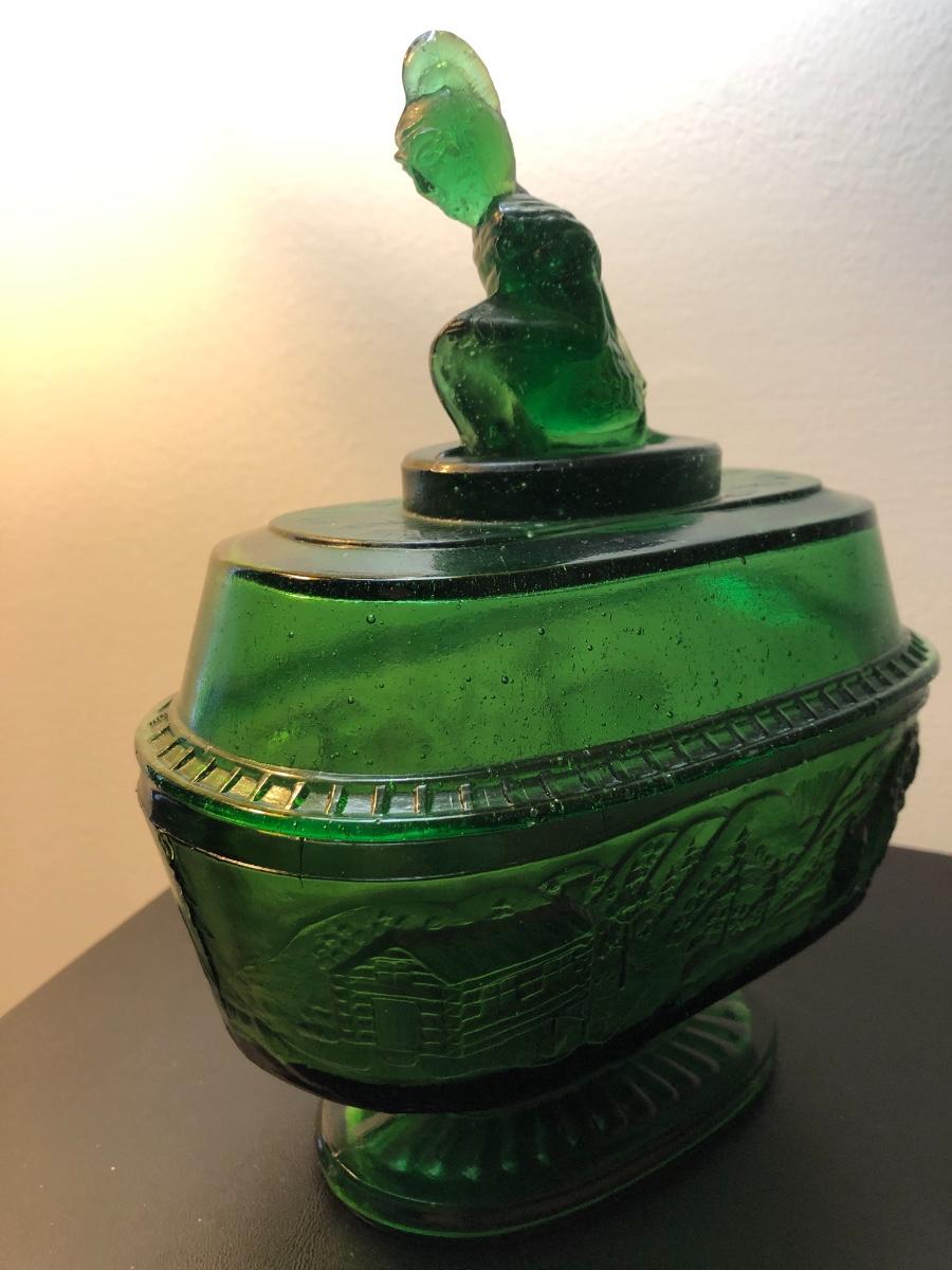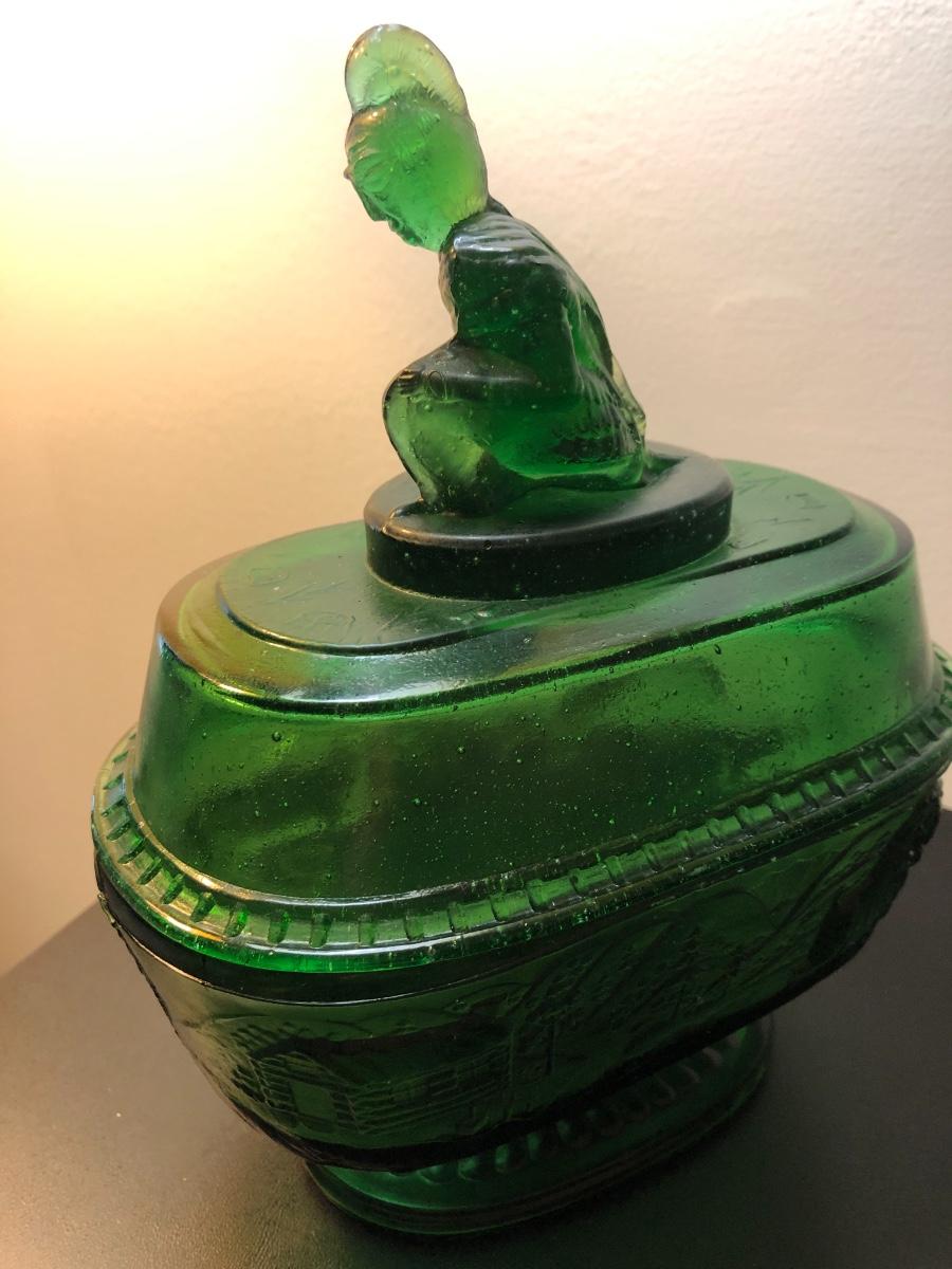“Westward Ho” Rare Green Pioneer Glass by Gillinder and Sons -Lot 108