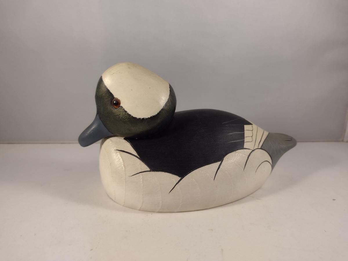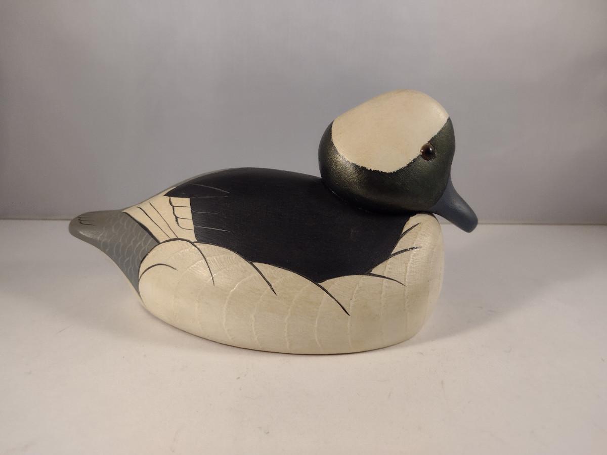 Westwood Creations Painted Duck Decoy (#7). Item measures approx 5 1/4" tall, 8 1/2" long.