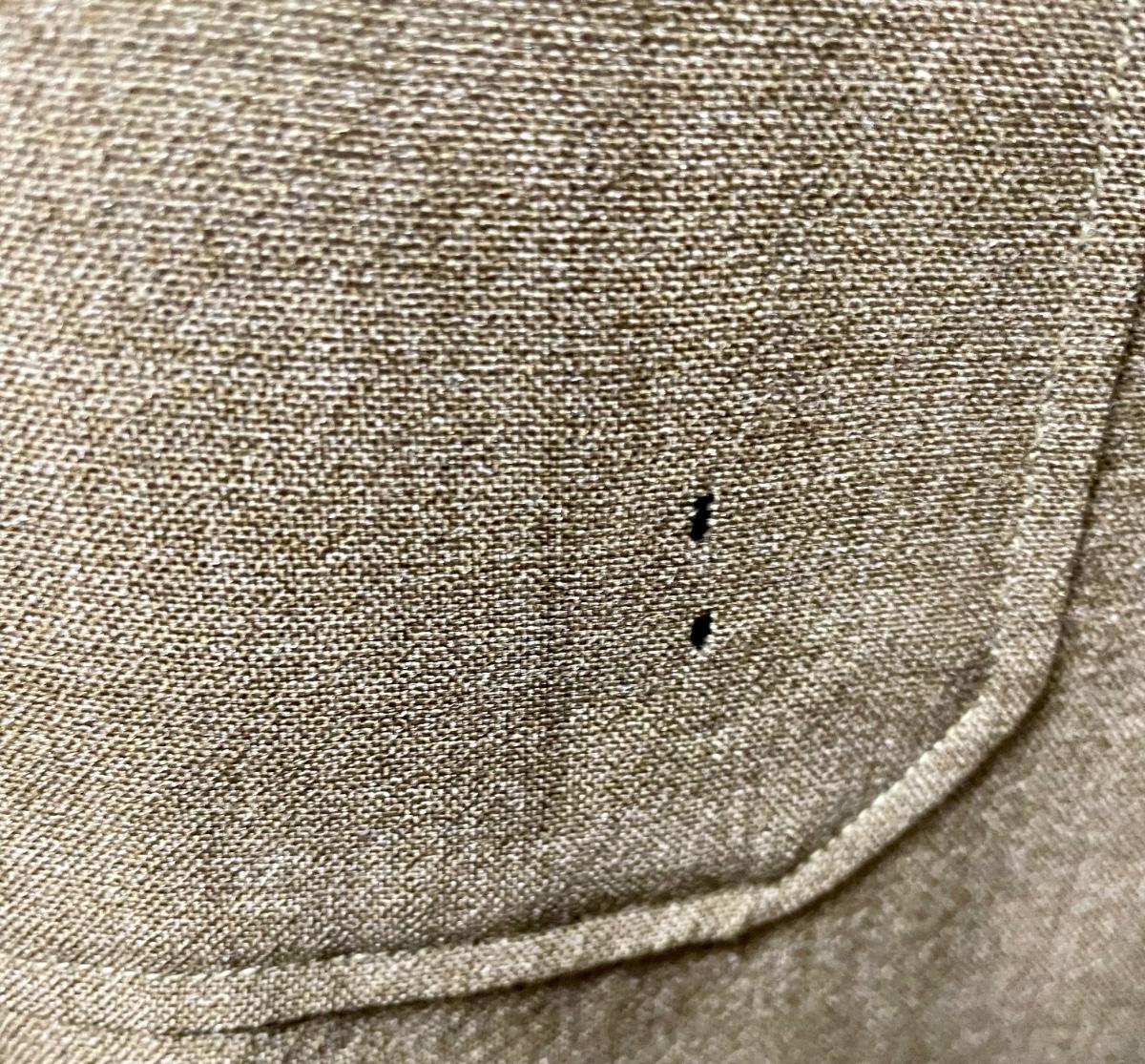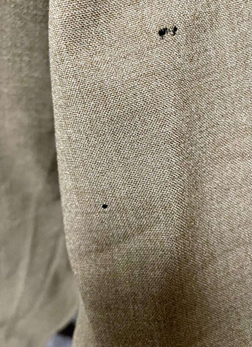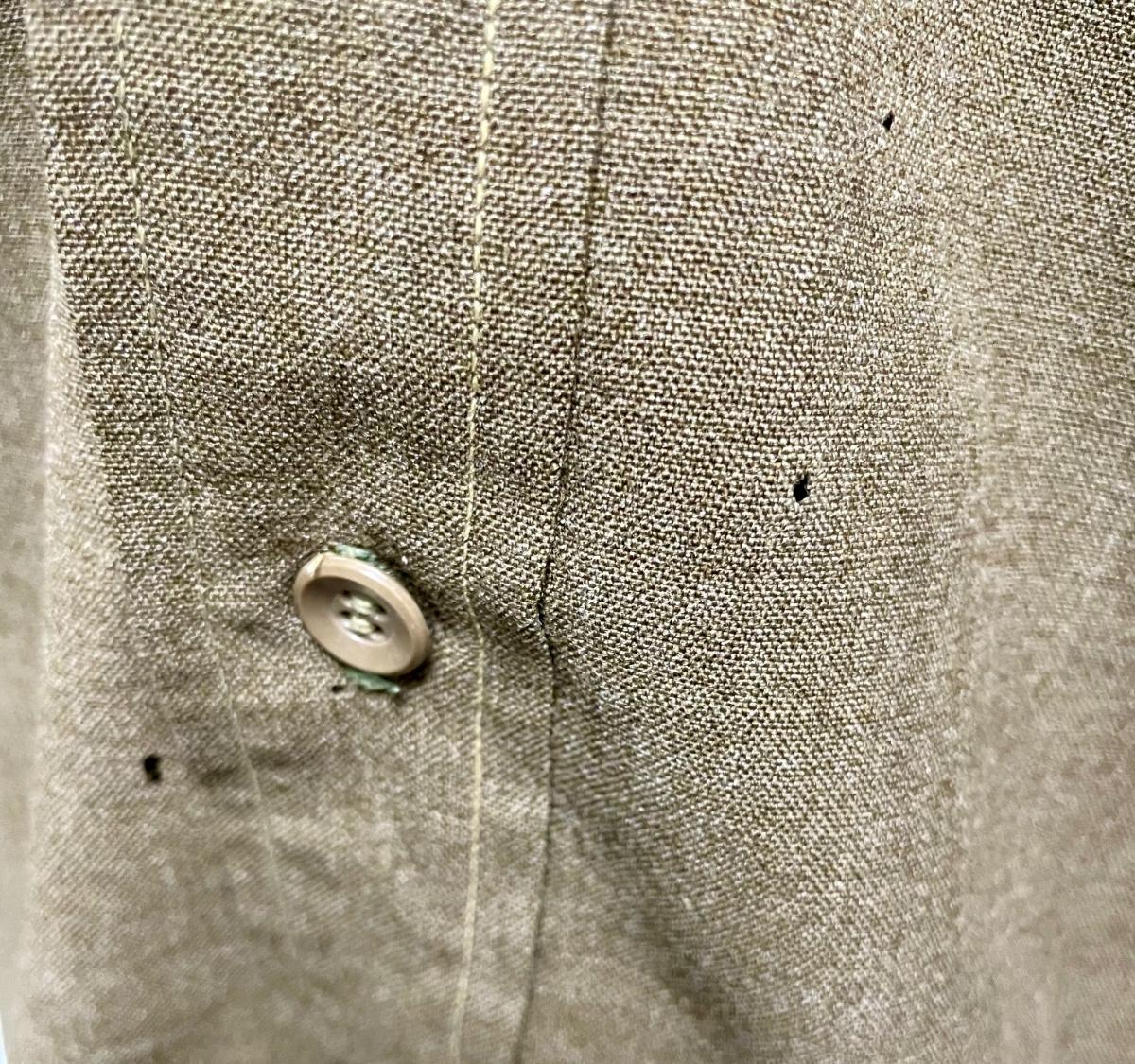 No size or label inside. Most likely issued in 1944 or 1945. In storage for many years, has several moth larva holes. See photos for details.