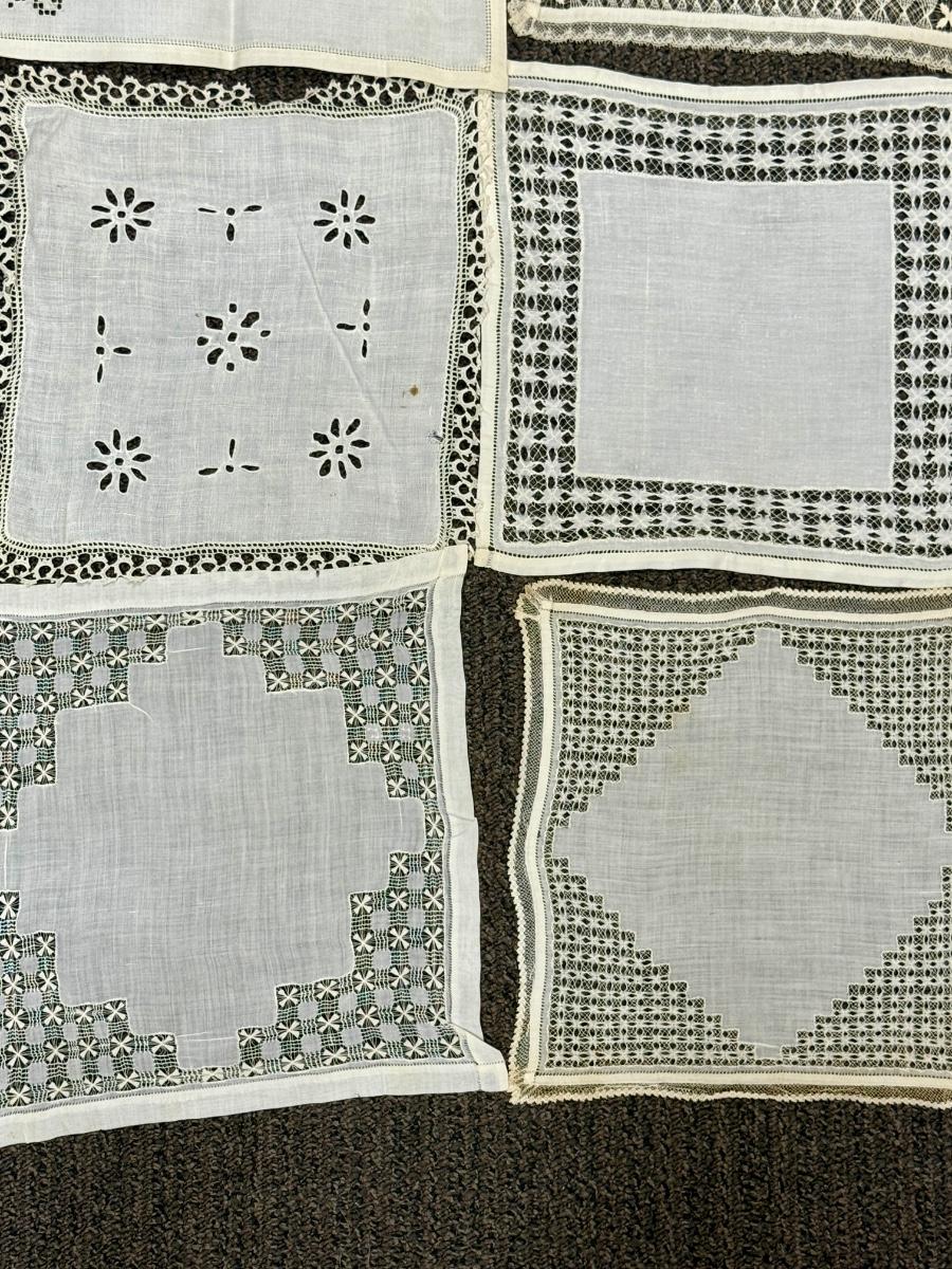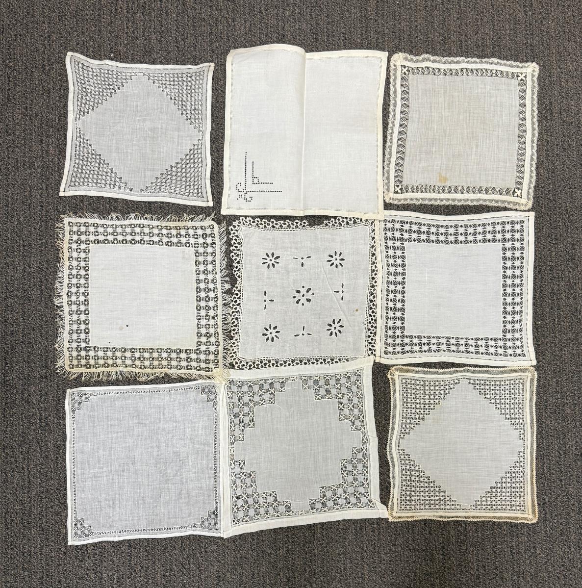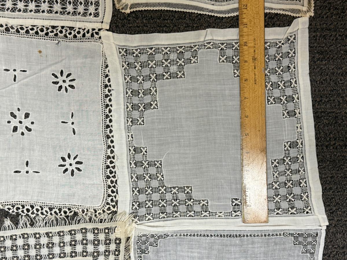 Lot of 9 Antique White Square Cotton Linen Textile Home Decor Art Deco Handmade 1800's- early 1900's