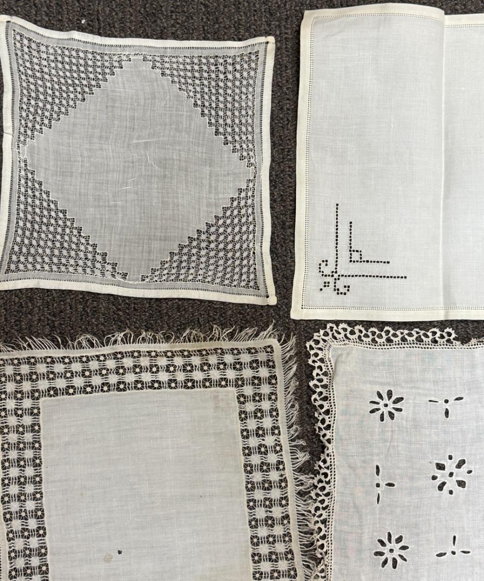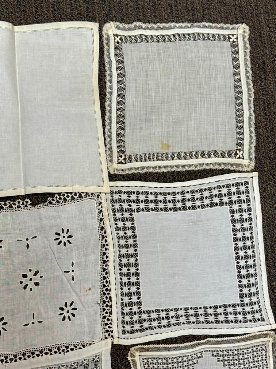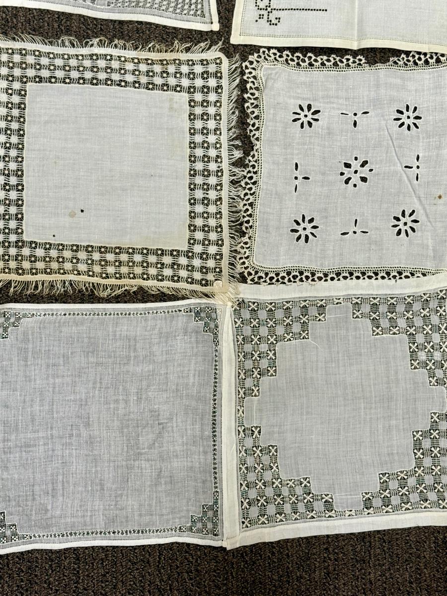 Lot of 9 Antique White Square Cotton Linen Textile Home Decor Art Deco Handmade 1800's- early 1900's