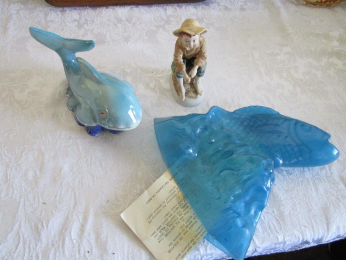 Whale figurine, fisherboy figurine, fish ice sculpture mold