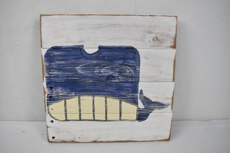 Whale Rustic Wooden Wall Decor Sign 14" x 14"