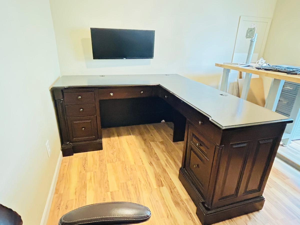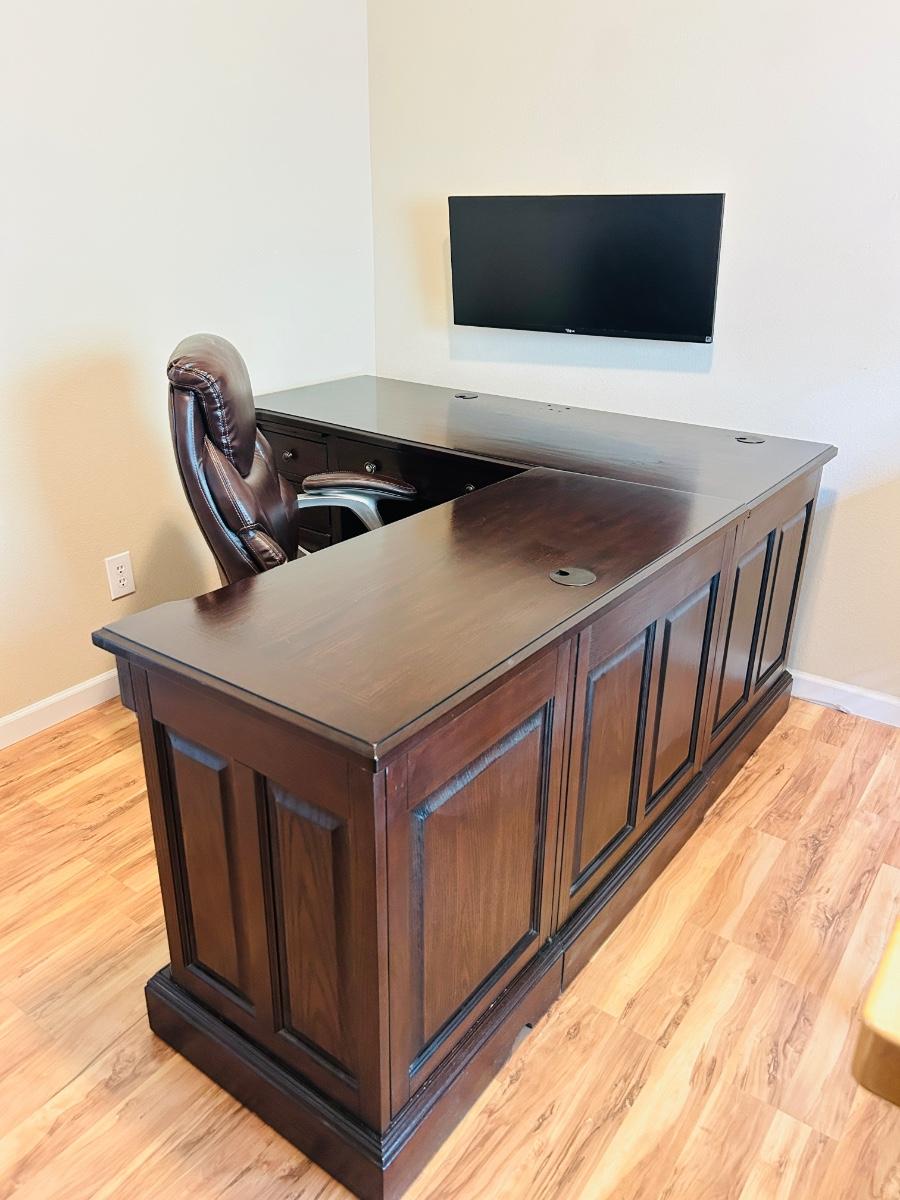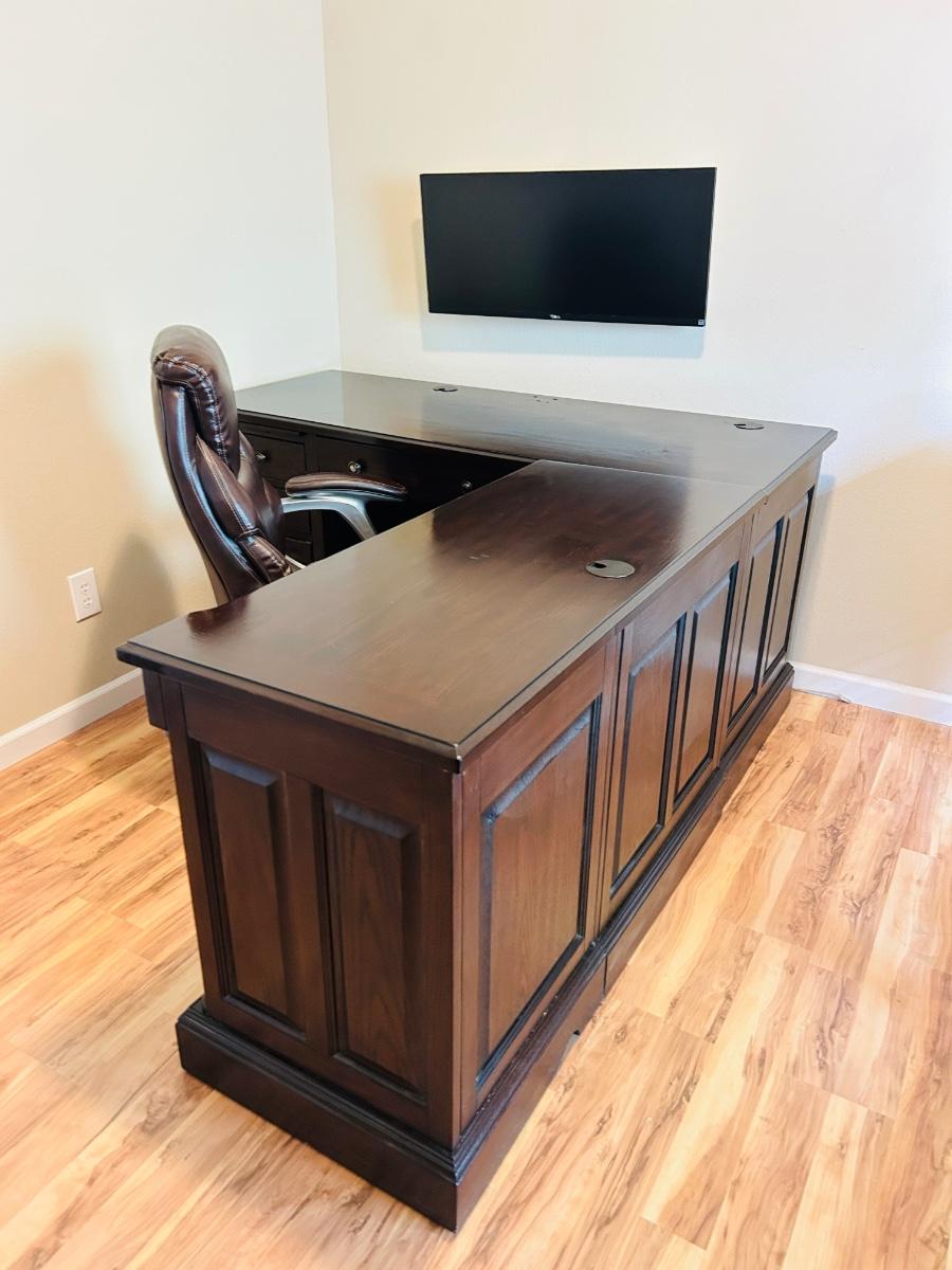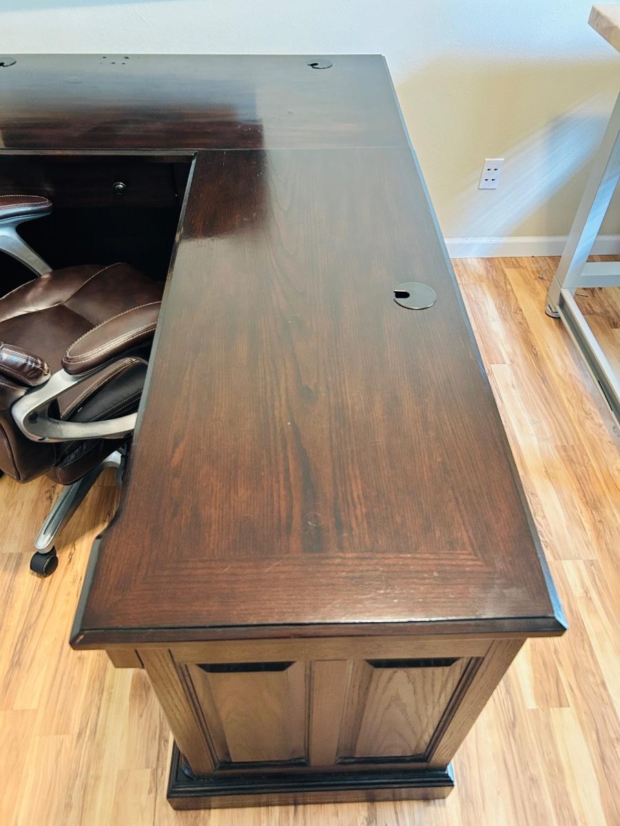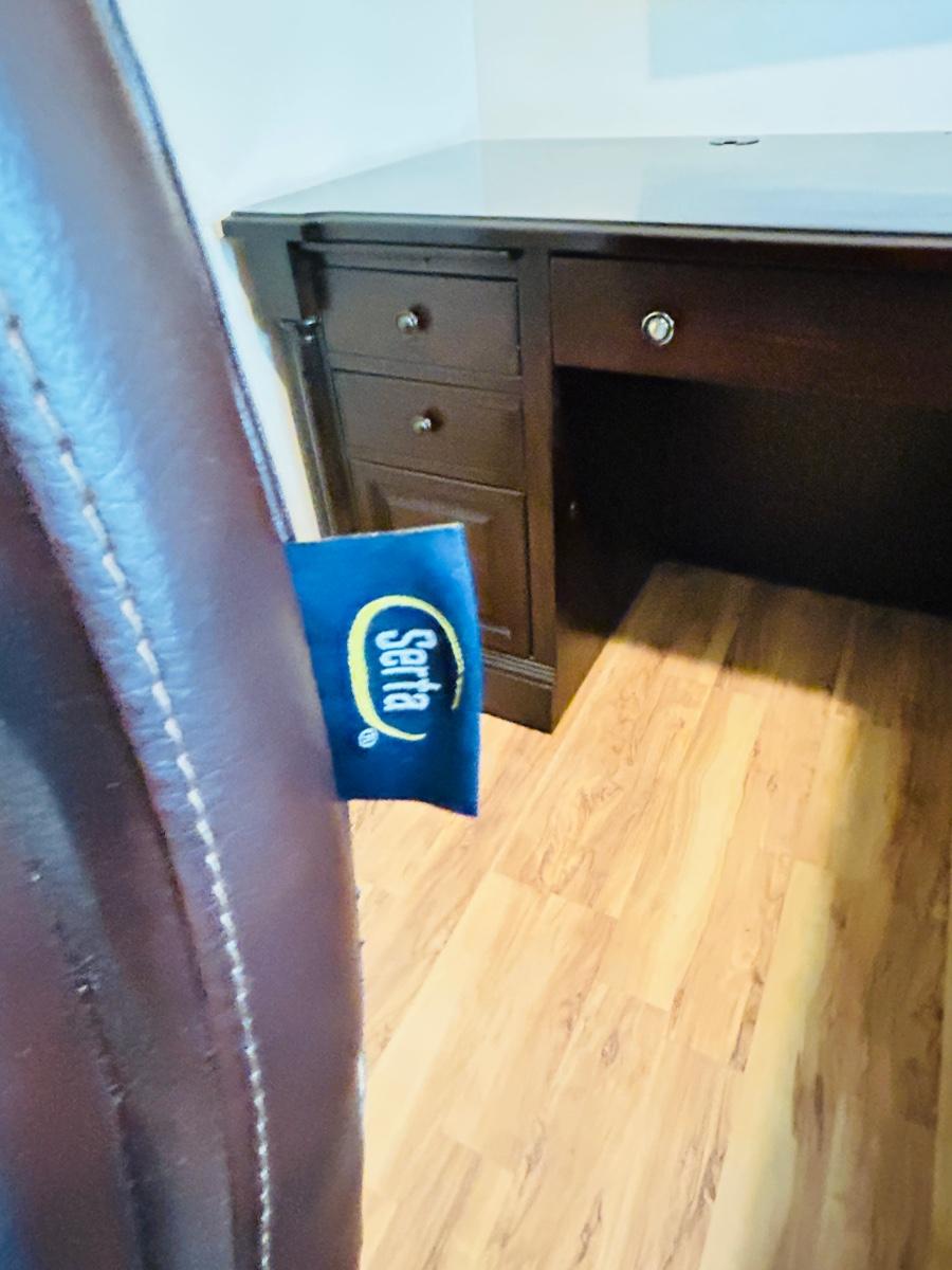WHALEN FURNITURE MFG HANDSOME L-SHAPED DESK AND SERTA LEATHER? DESK CHAIR