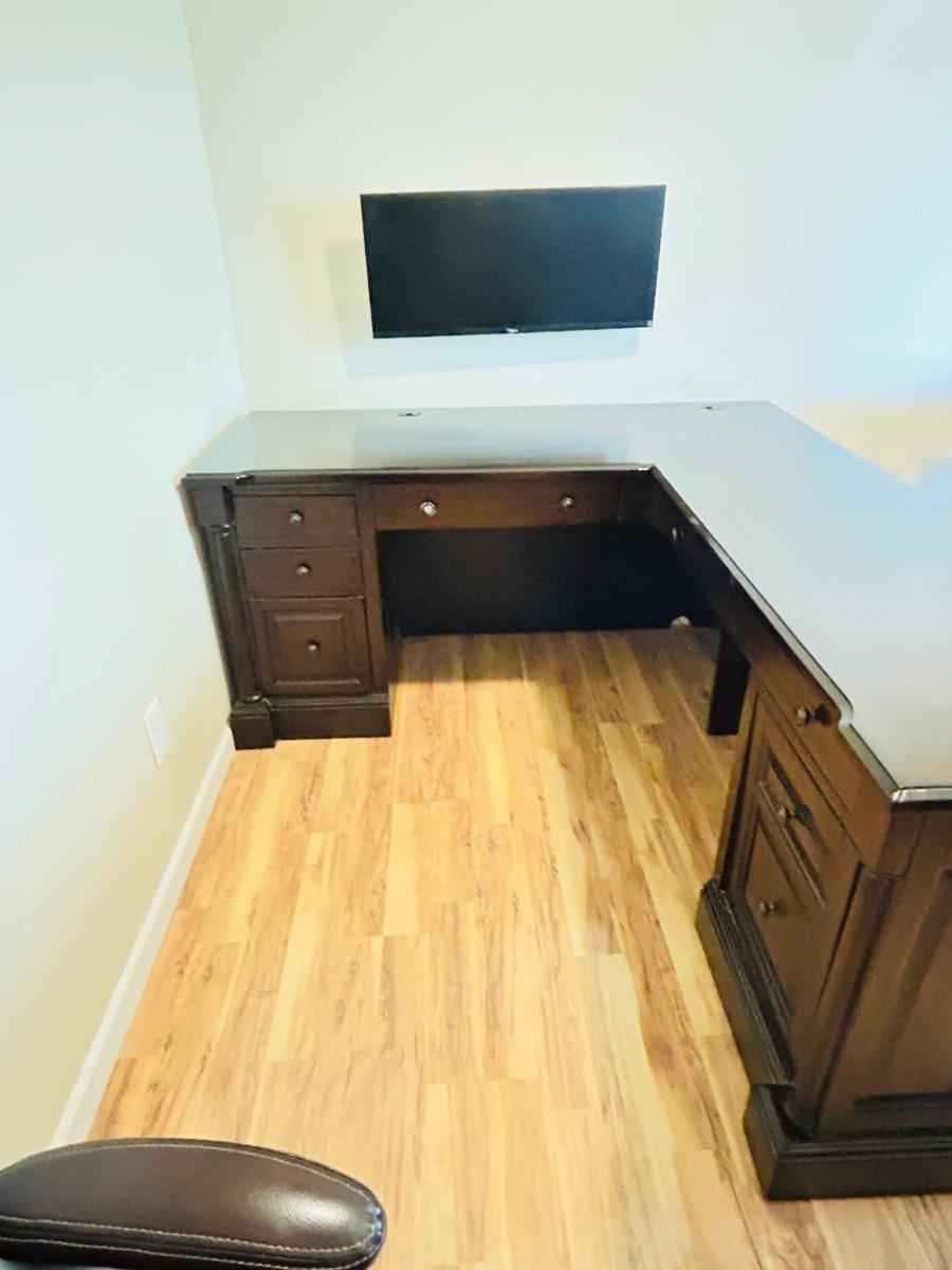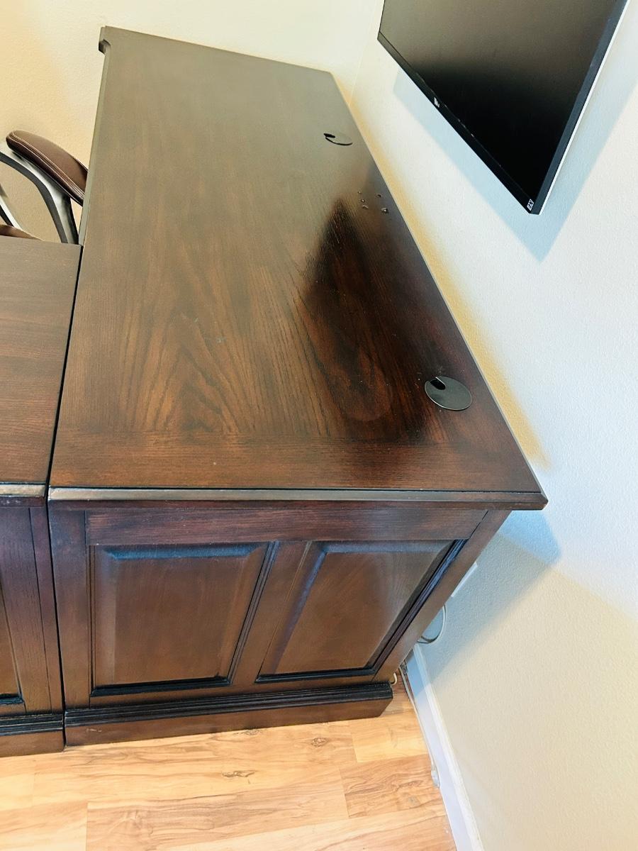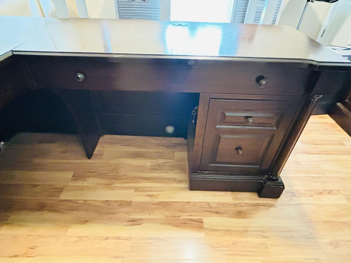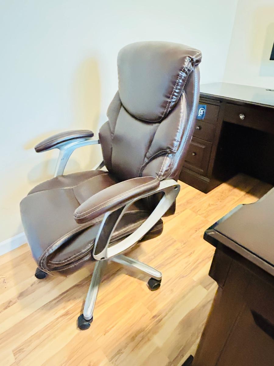 WHALEN FURNITURE MFG HANDSOME L-SHAPED DESK AND SERTA LEATHER? DESK CHAIR