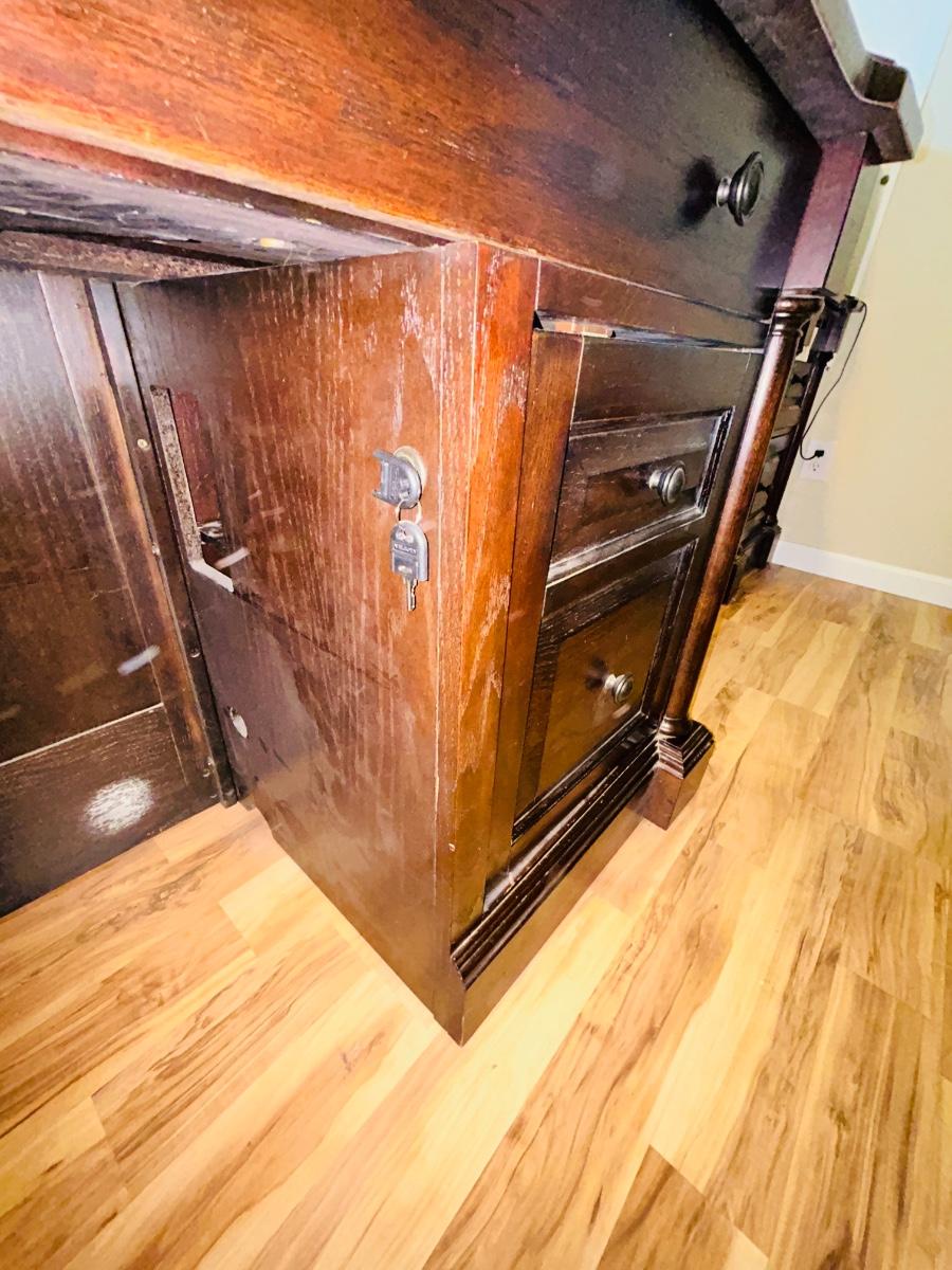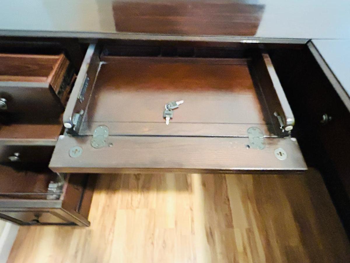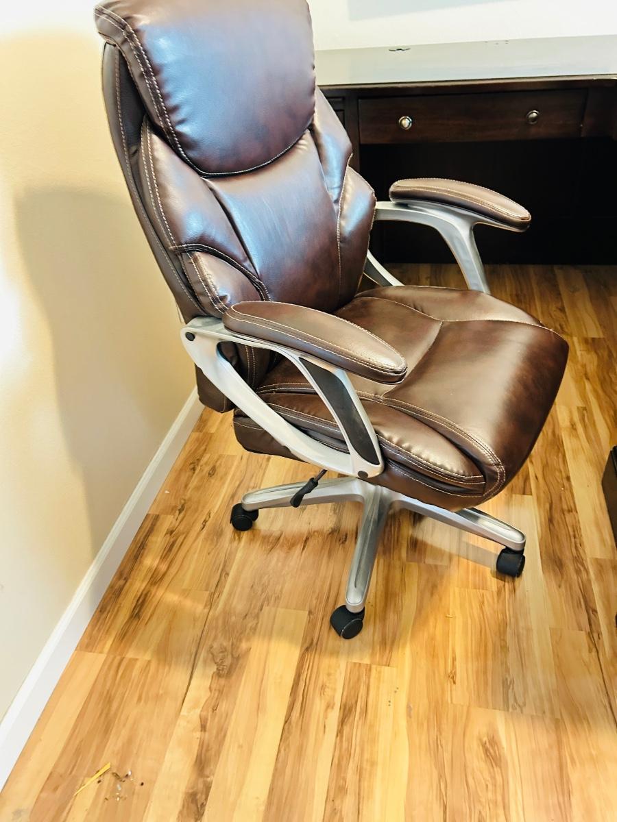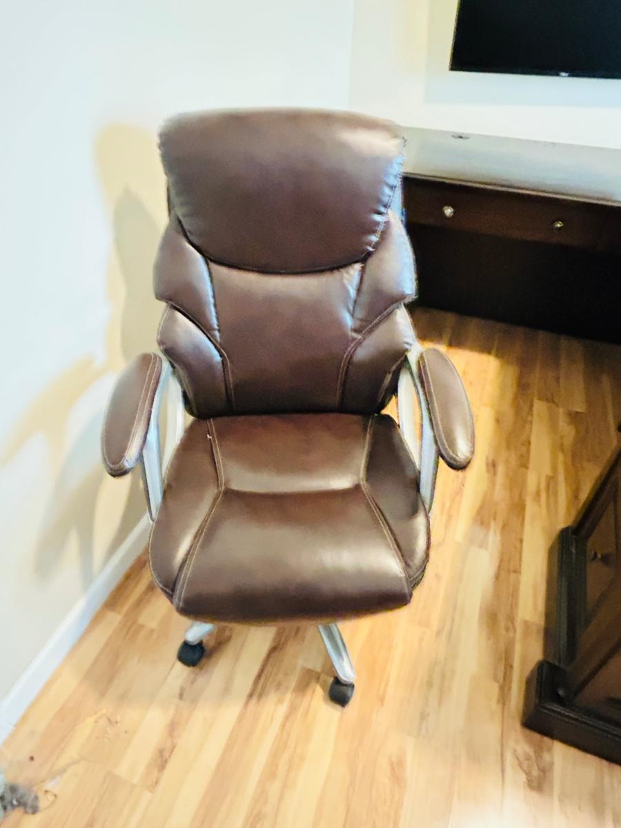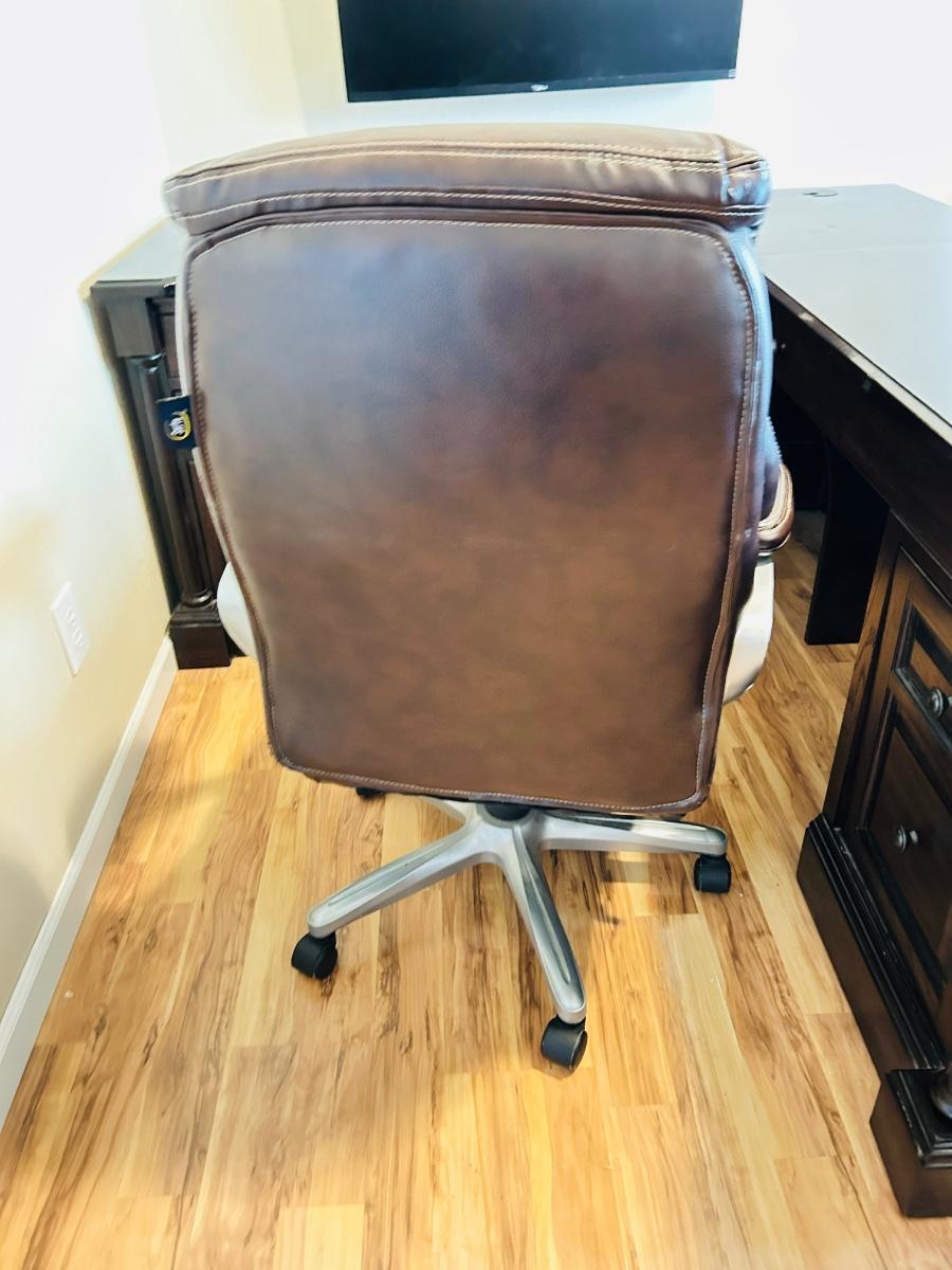 WHALEN FURNITURE MFG HANDSOME L-SHAPED DESK AND SERTA LEATHER? DESK CHAIR