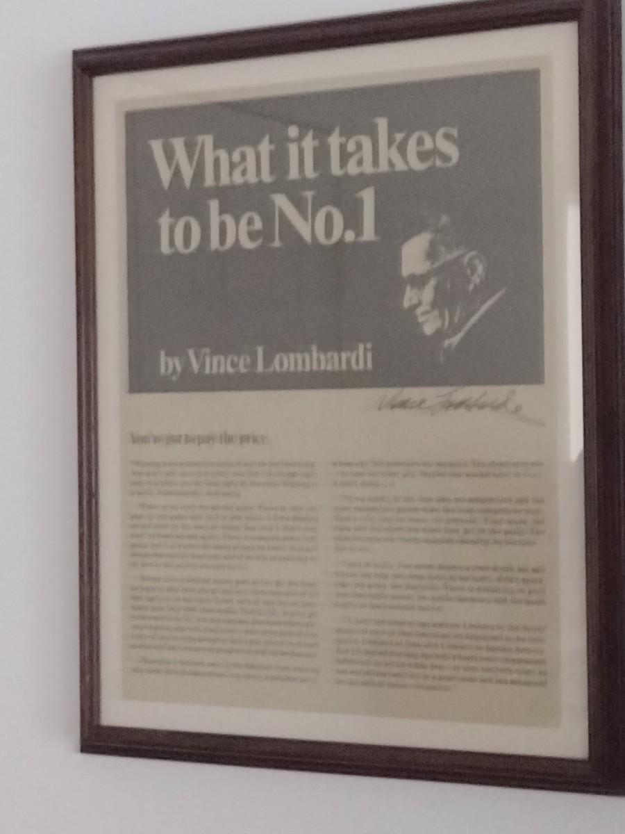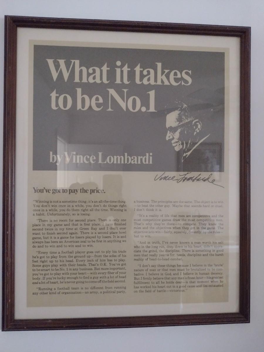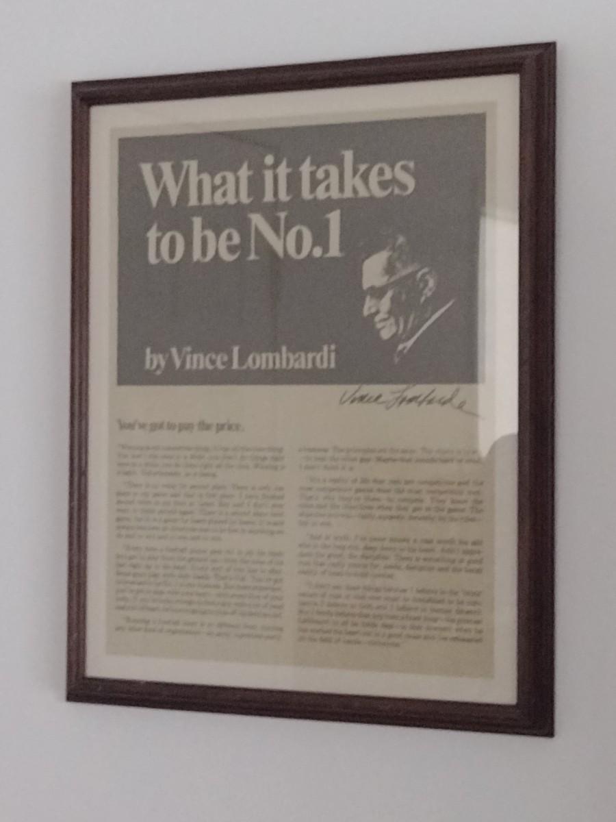 'What it Takes to be No.1' by Vince Lombardi -Framed and Under Glass