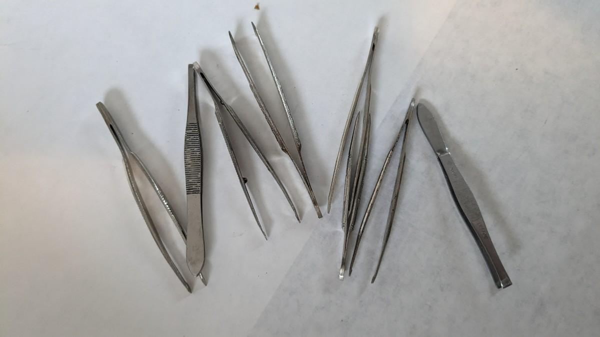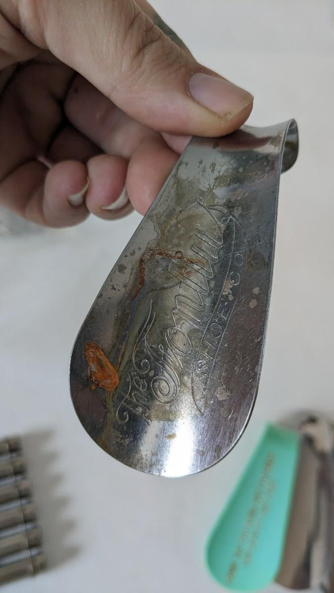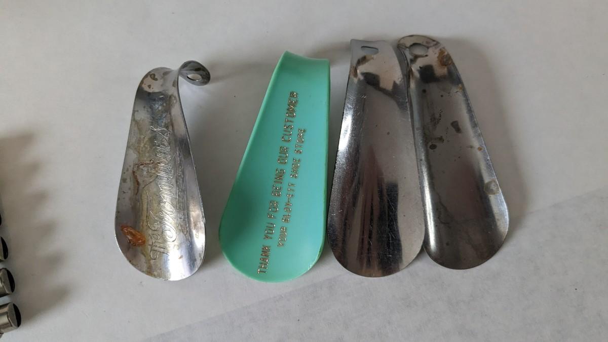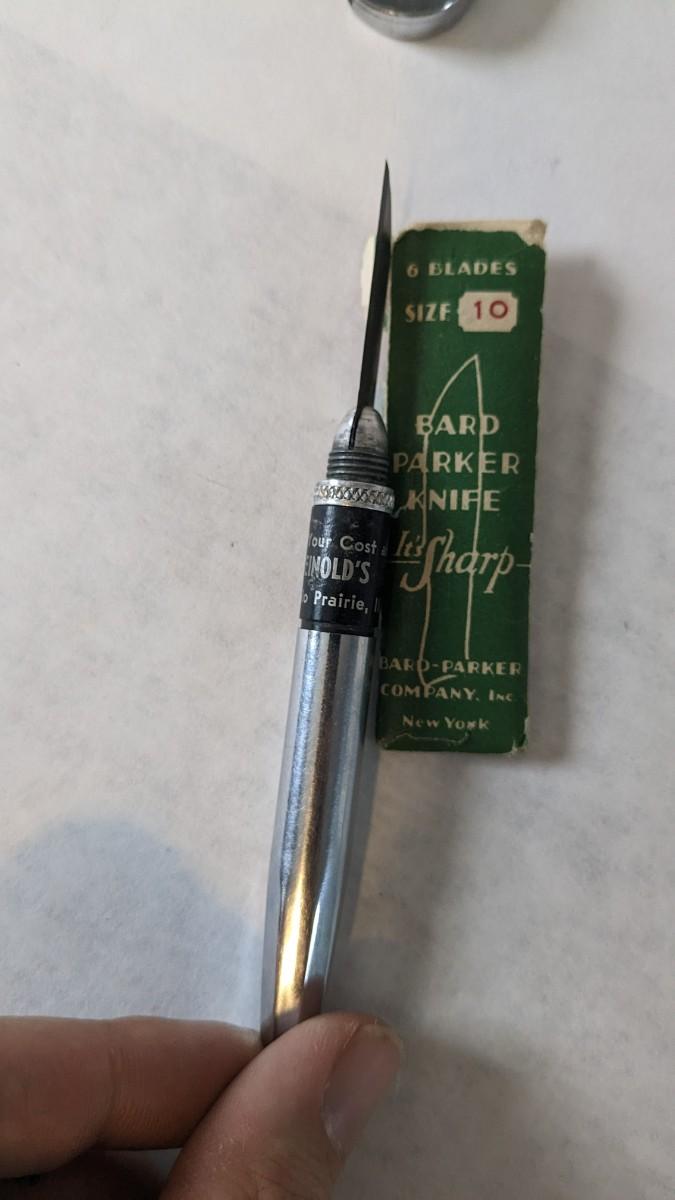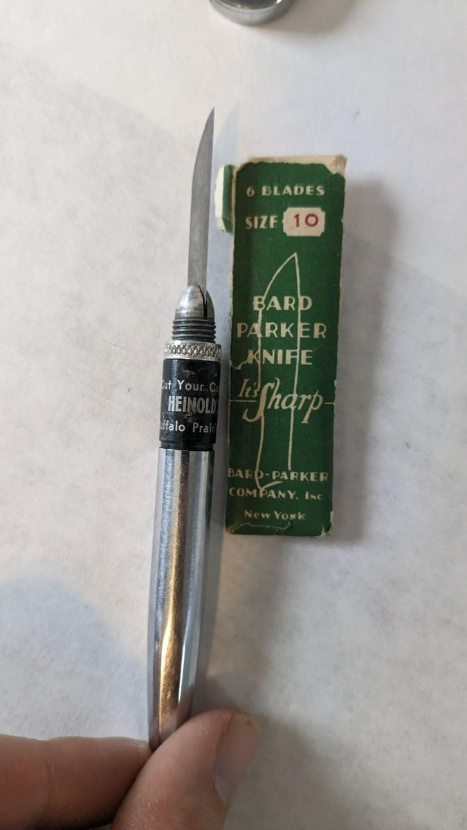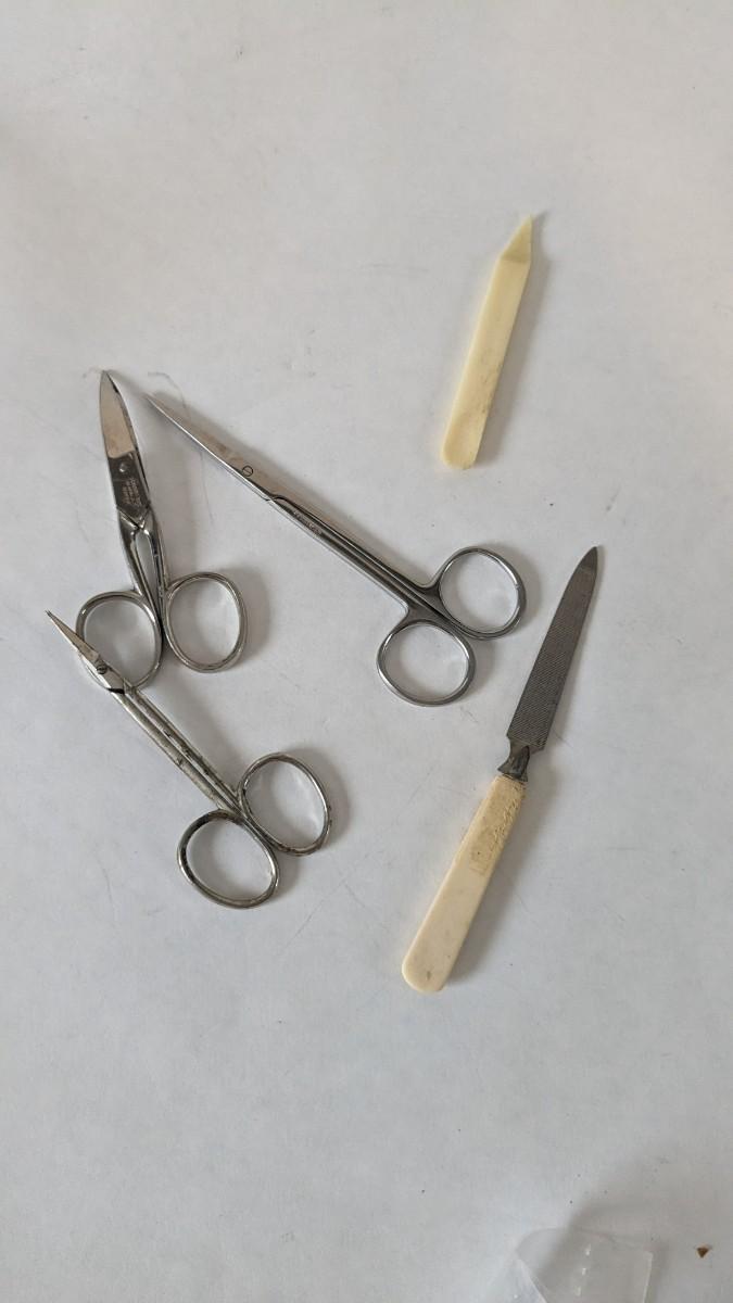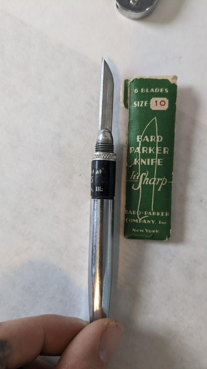 Fun little assortment of everything you find on the top of a man's dresser or in his pocket. Includes tweezers, metal nail files, pocket shoe horns and various nail clippers. As well as great Storz beer comb and file holder, two Victor Feeds knives, a strange promotional exacto knife with replacement blades, a very early harmonica, two mustache brushes, and a neat retractable multi tool. Some real goodies in this one