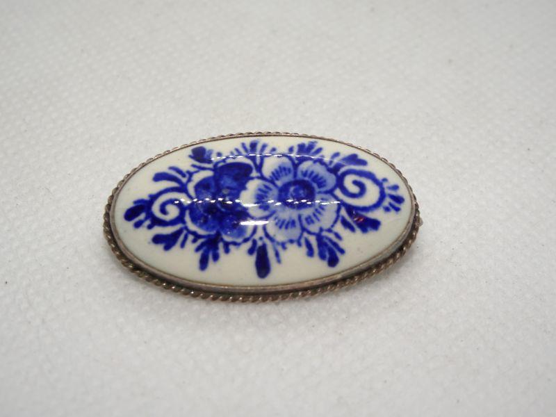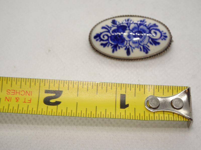Gorgeous Delph Porcelain Oval Brooch, Blue & White