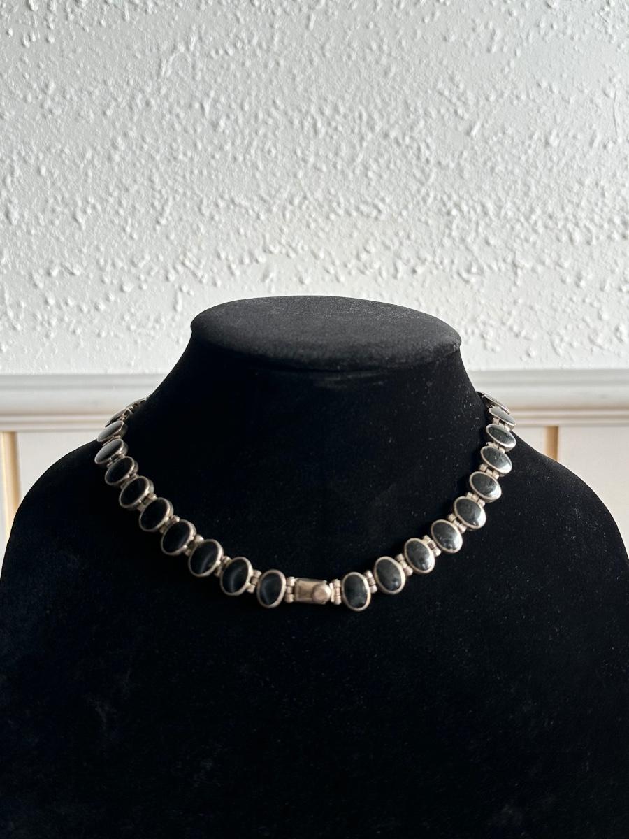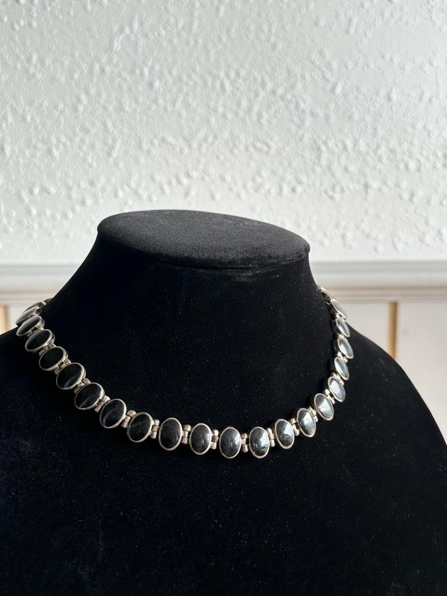 WHBM Necklace Black Faceted Bezel Set in Sterling Silver