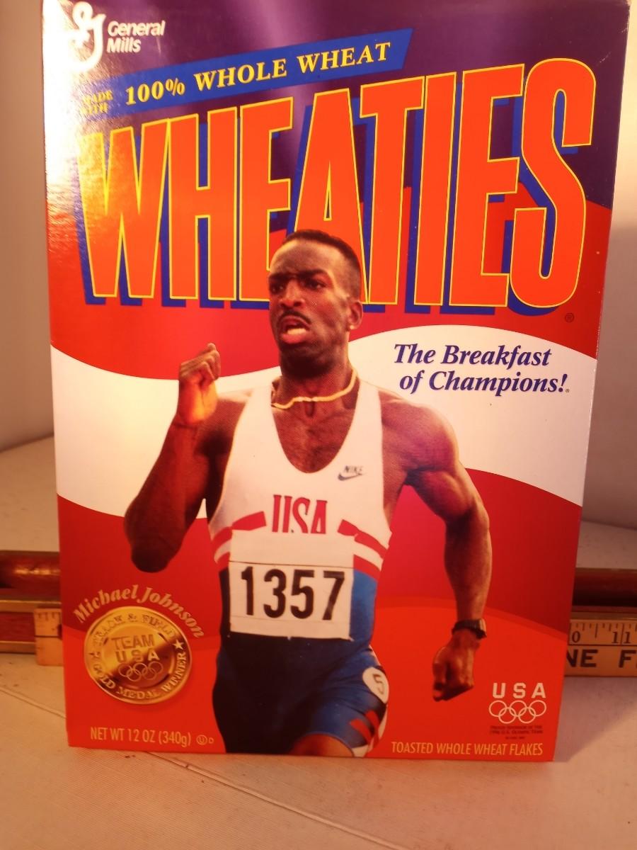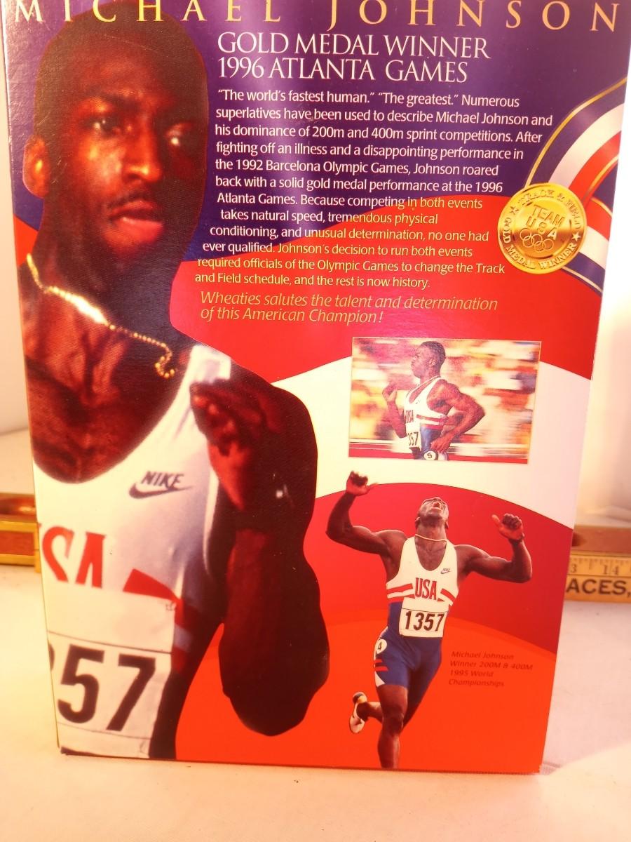 WHEATIES Box 1996 MICHAEL JOHNSON Dan O’Brien Track & Field Winner OLYMPICS upld 2/1