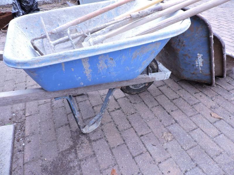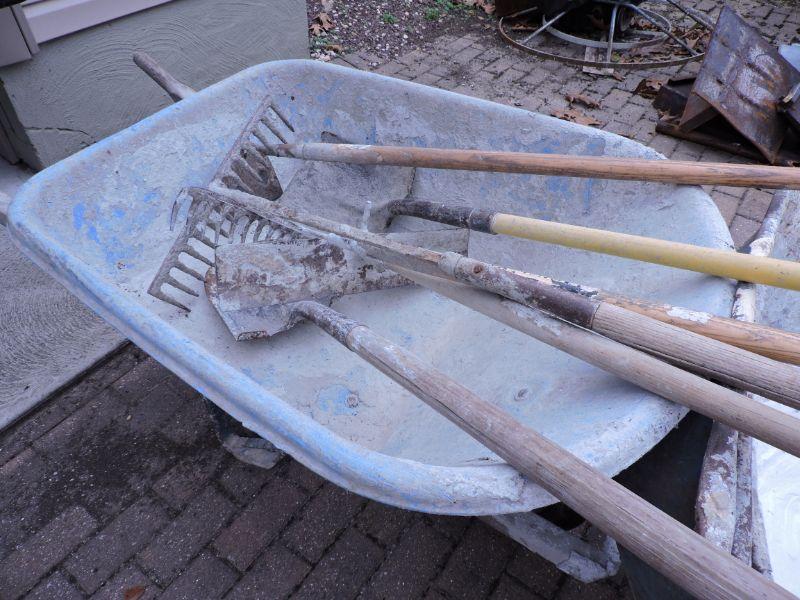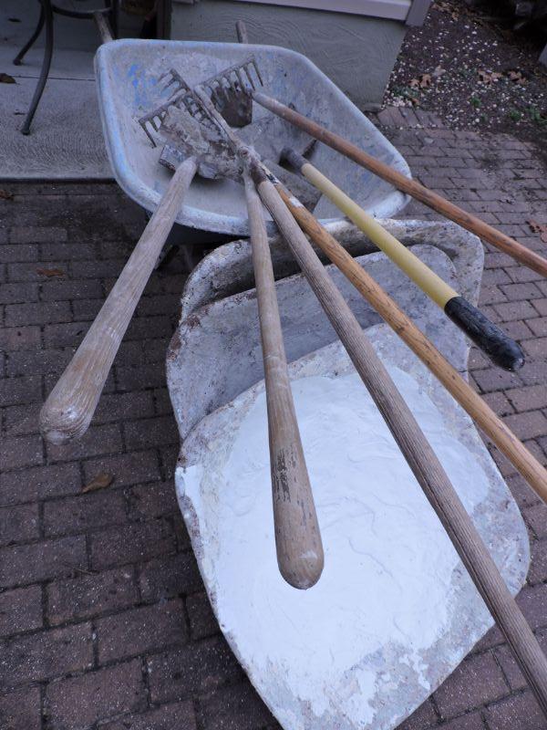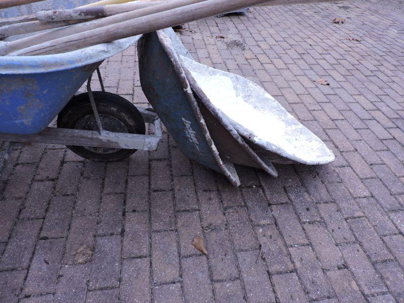 Wheelbarrow with Steel Mortar  Pans and Mixing Tools