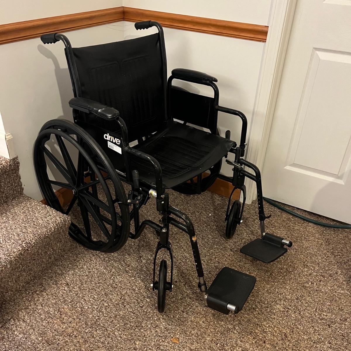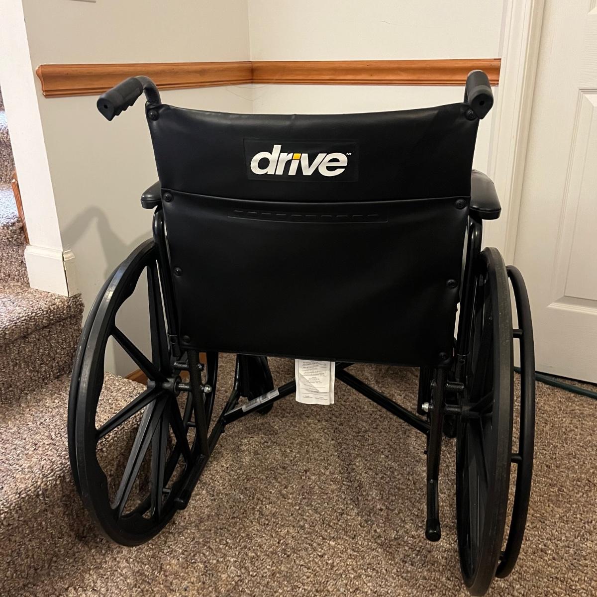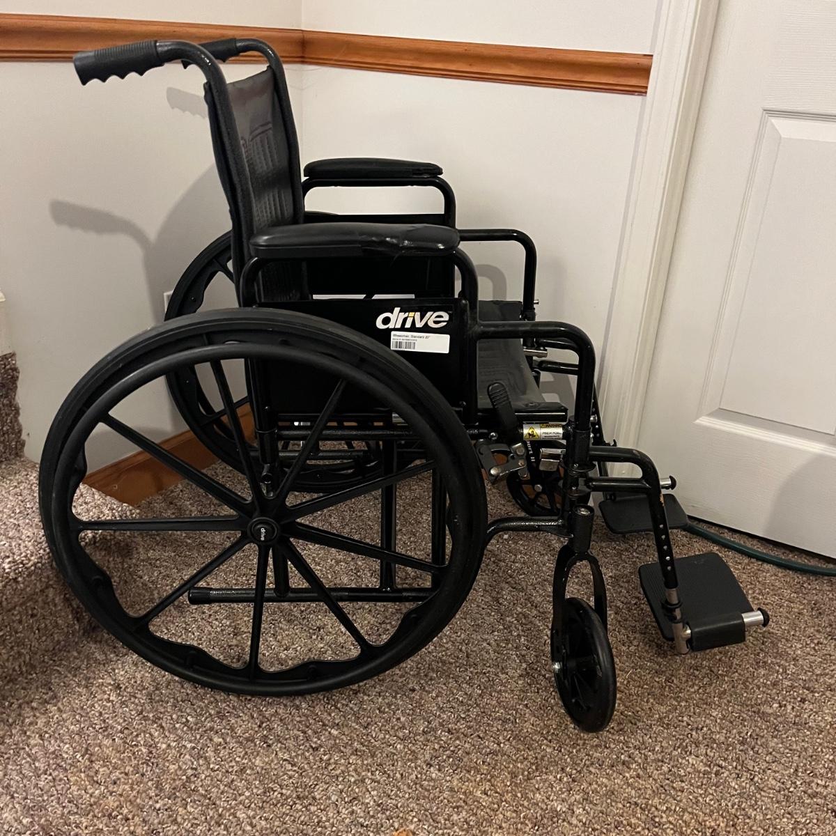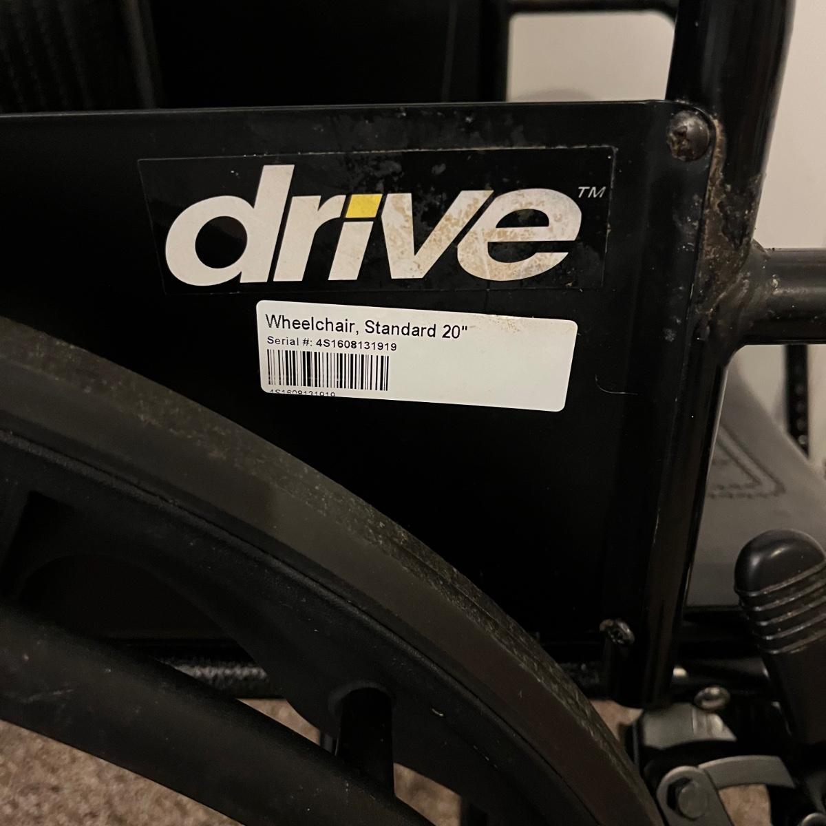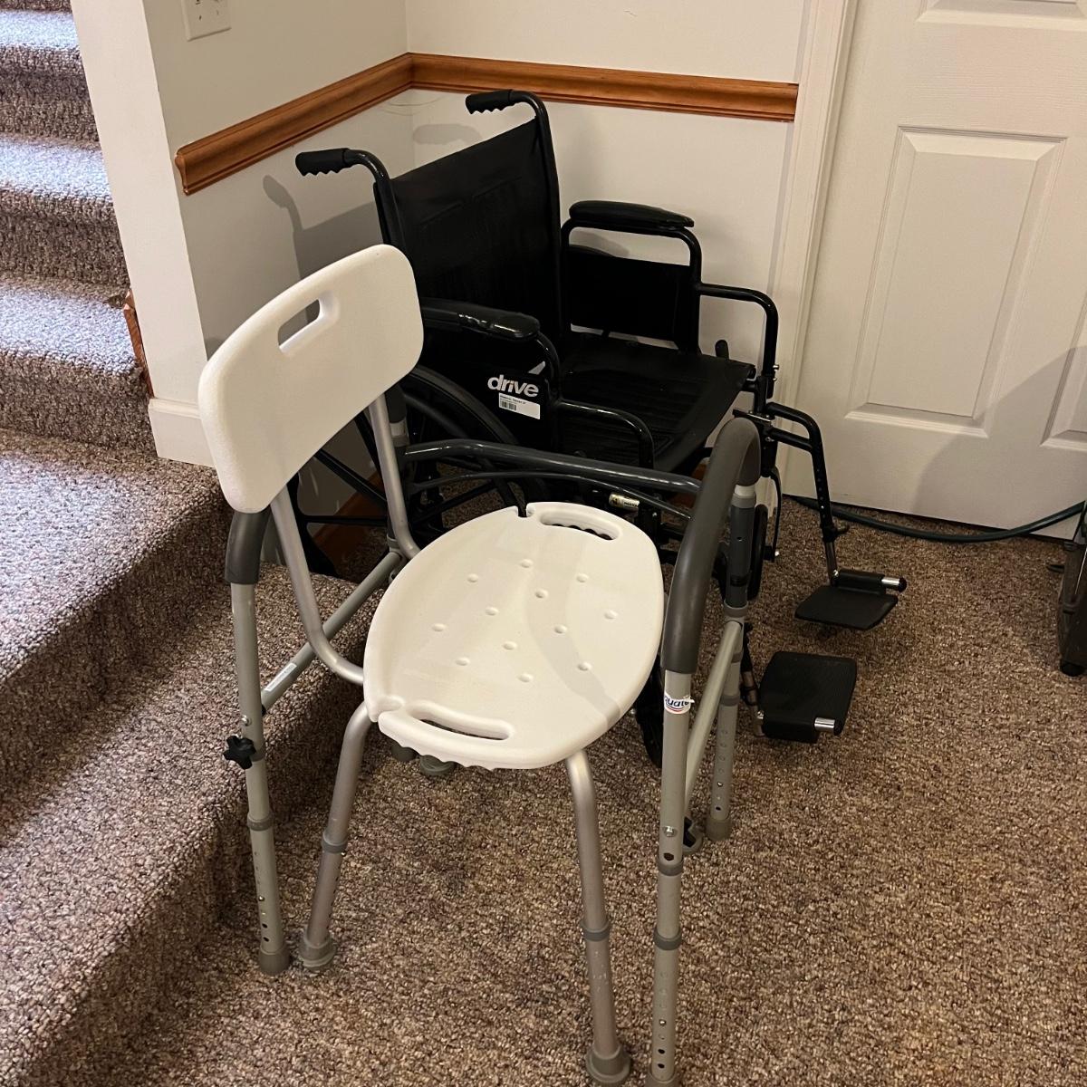 Lot includes a Drive 20” standard wheelchair, Walker and shower chair that both have adjustable height.