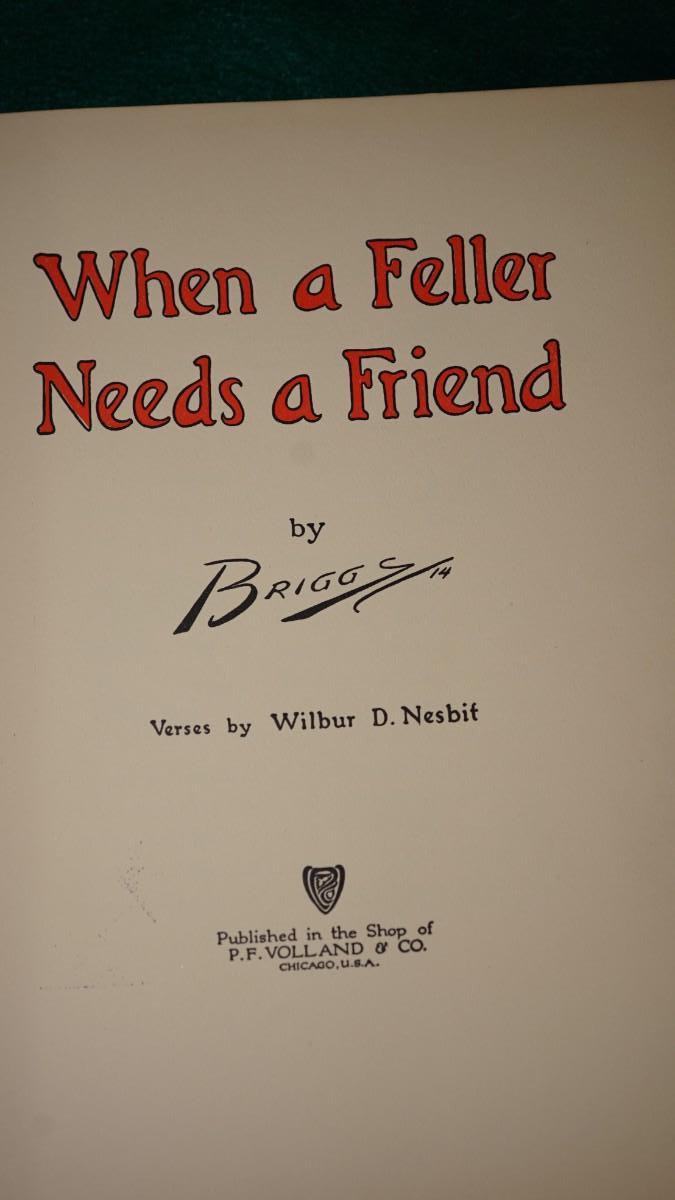 WHEN A FELLER NEEDS A FRIEND BY BRIGGS HARDCOVER verses BY WILBUR NESBIT Copyright 1914