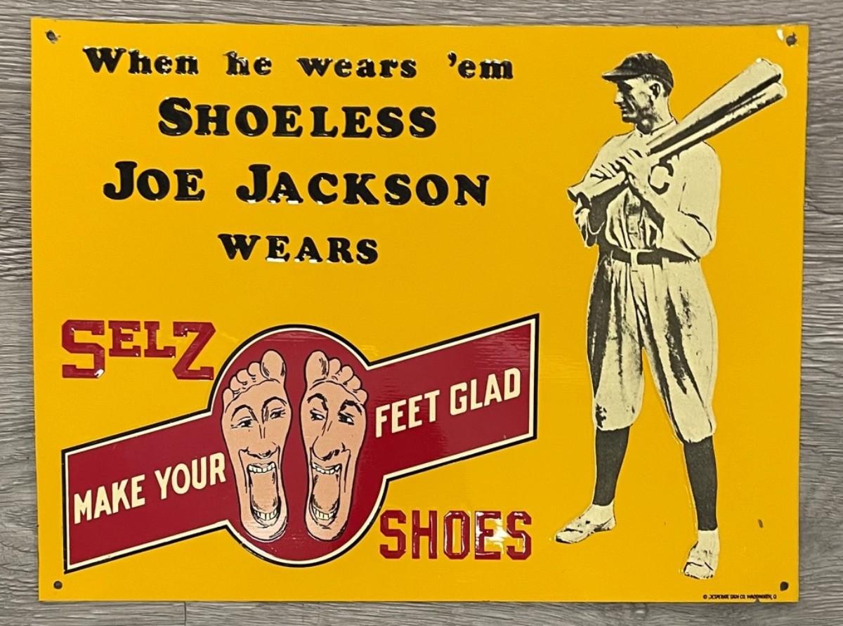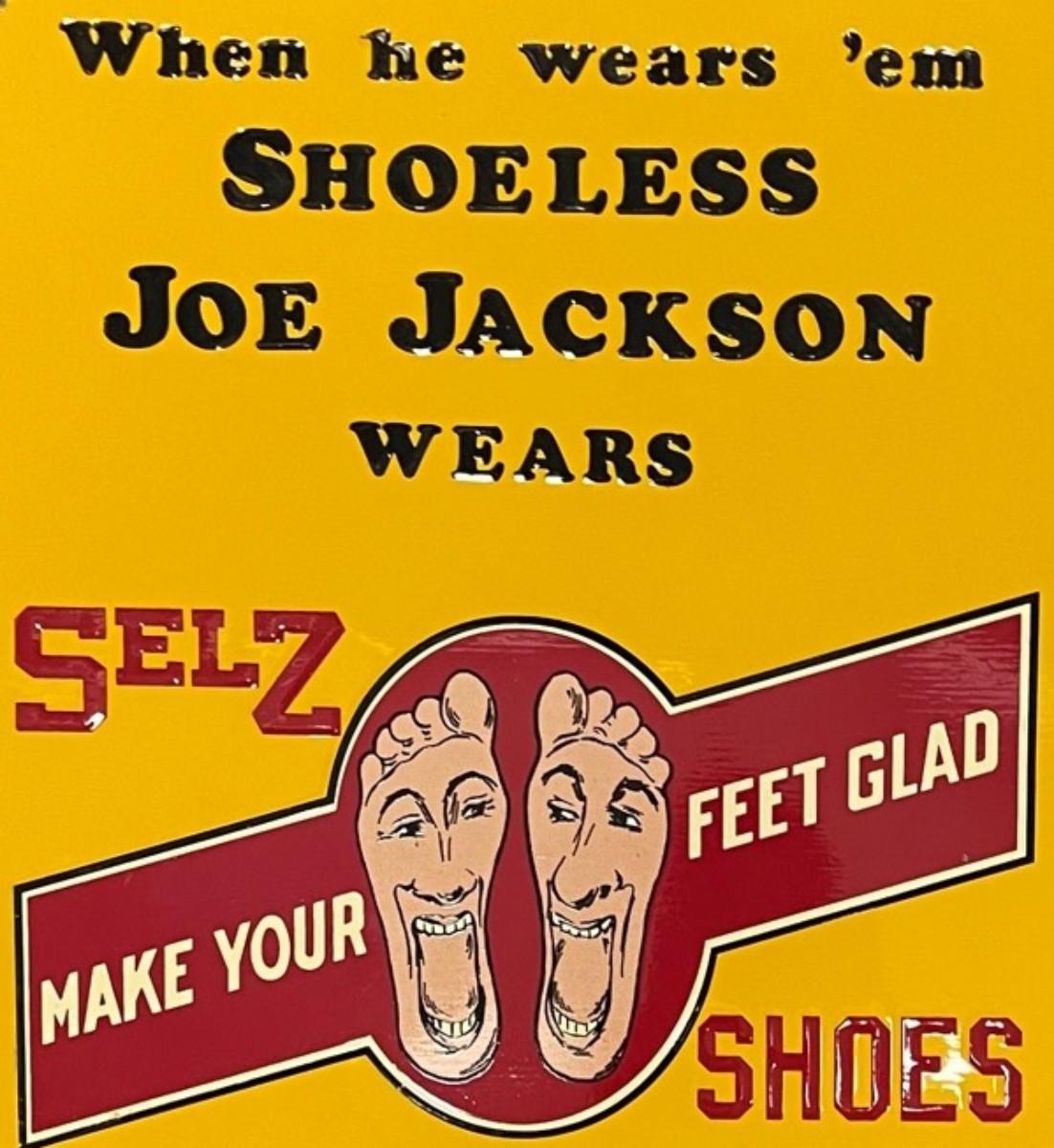 When he Wears 'em Shoesless shoes Joe Jackson wears Advertising Sign