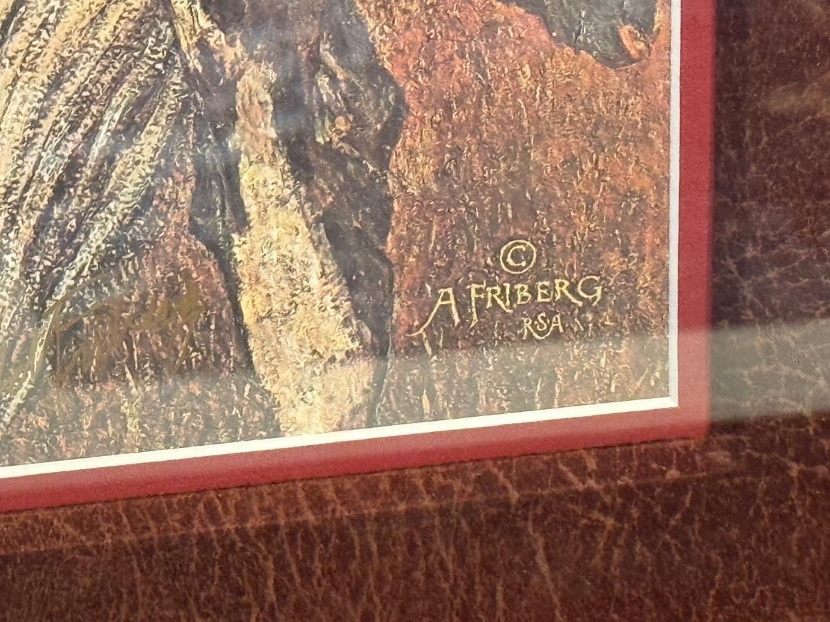 #870/900 Arnold Friberg signed & numbered Native American with Horse Art titled "When the Land Was His" nicely framed and matted.