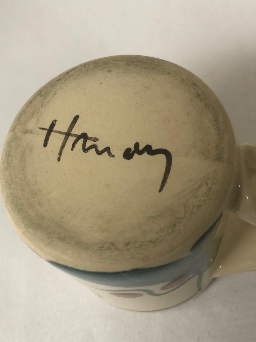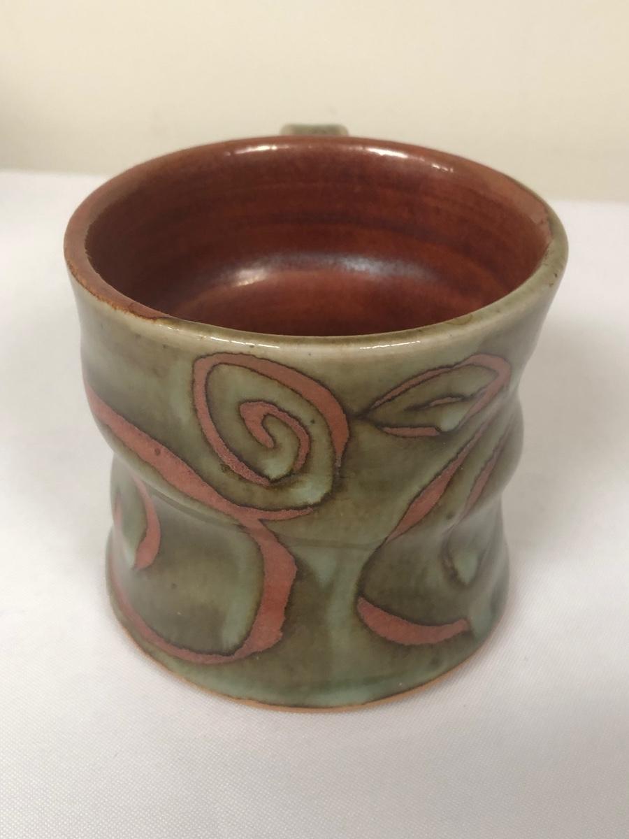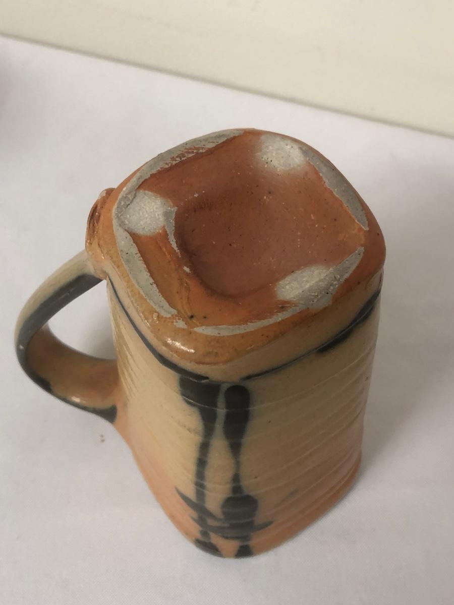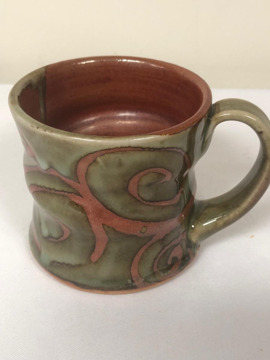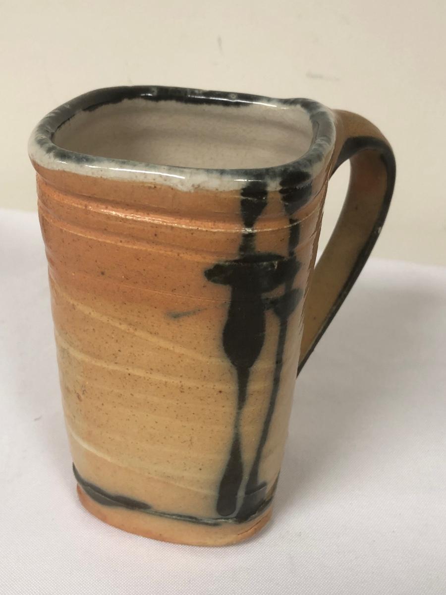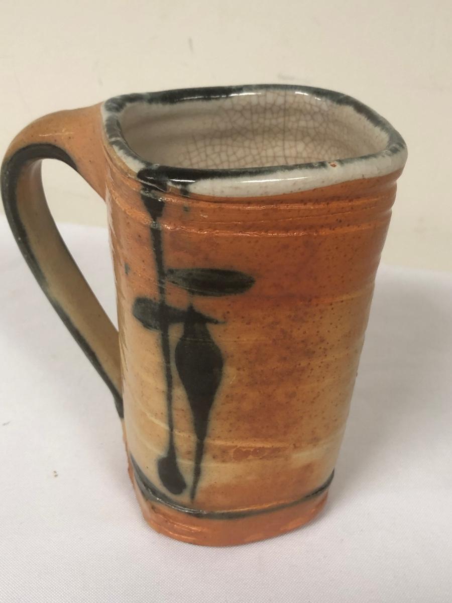 These three handmade coffee mugs are unique, with two having a whimsical design and the tallest (5”) having an Asian flare. One of the mugs has a signature. Shipping Available.