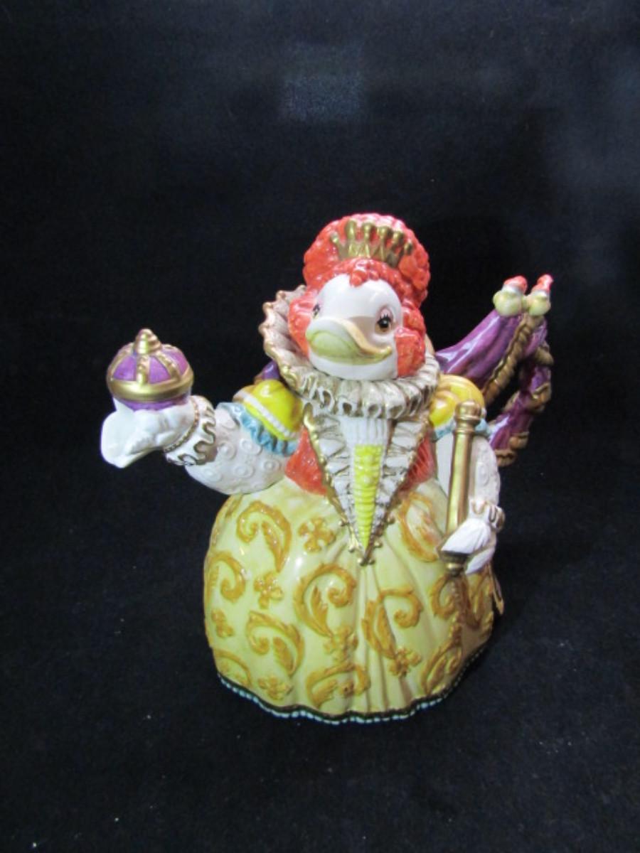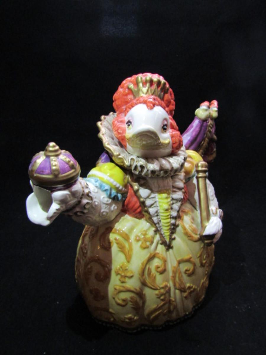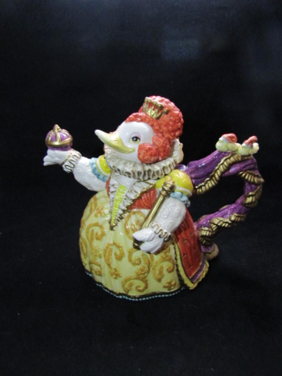 Whimsical Fitz and Floyd Painted Ceramic Teapot- 'Queen Elizabird'  (#324)