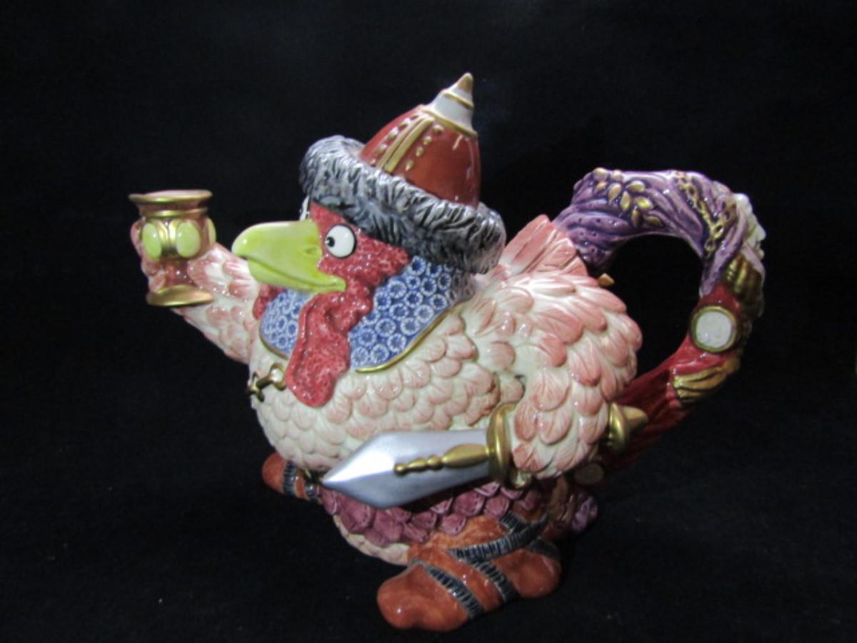 Whimsical Fitz and Floyd Painted Ceramic Teapot- 'Attila the Hen'  (#325)