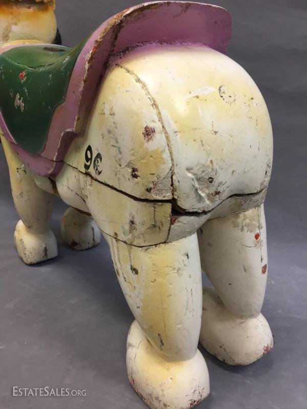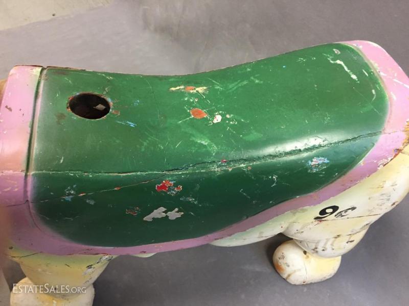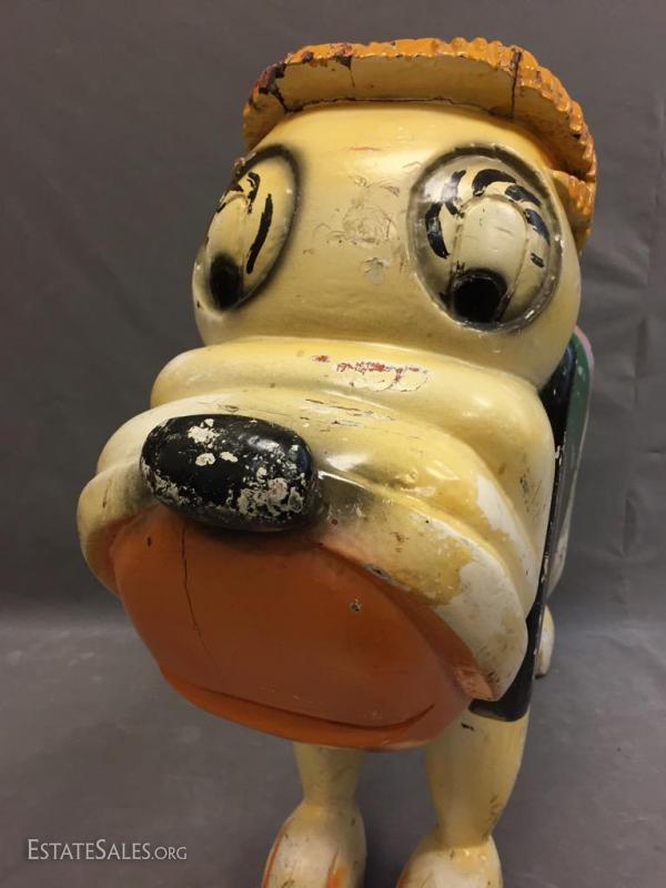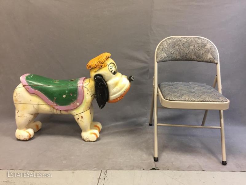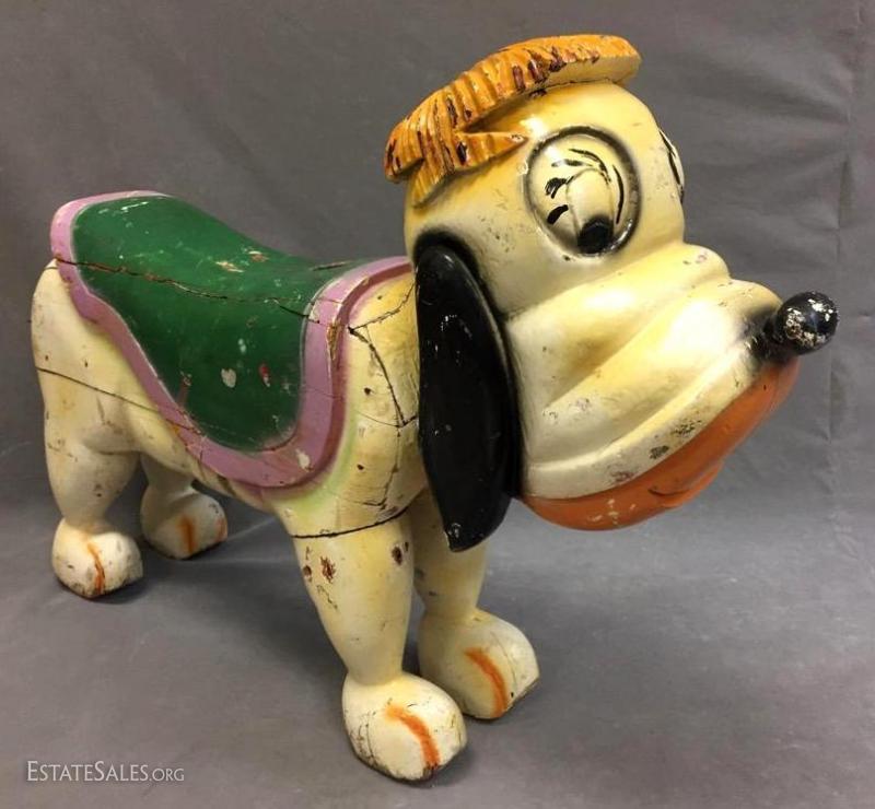 Whimsical Hand-carved Carousel dog featuring original paint, 25" tall x 33" wide.