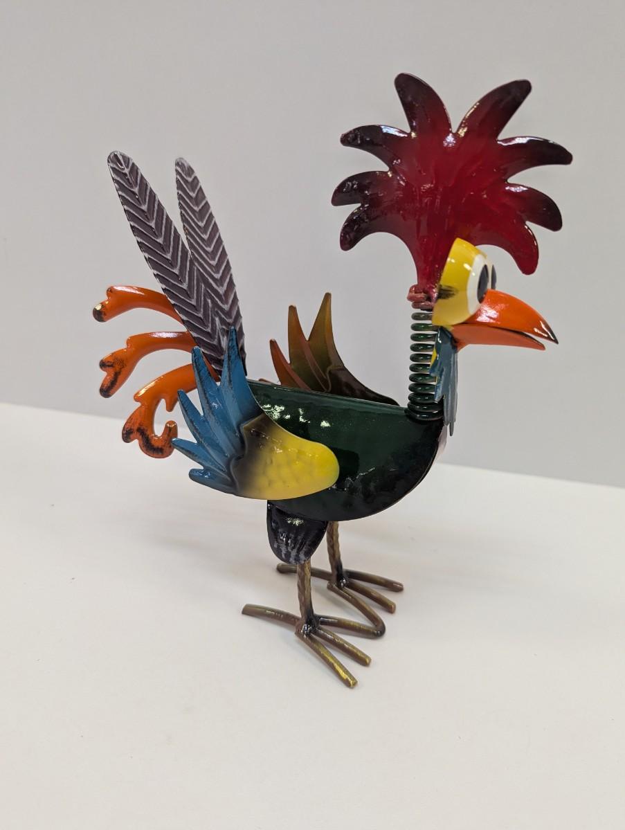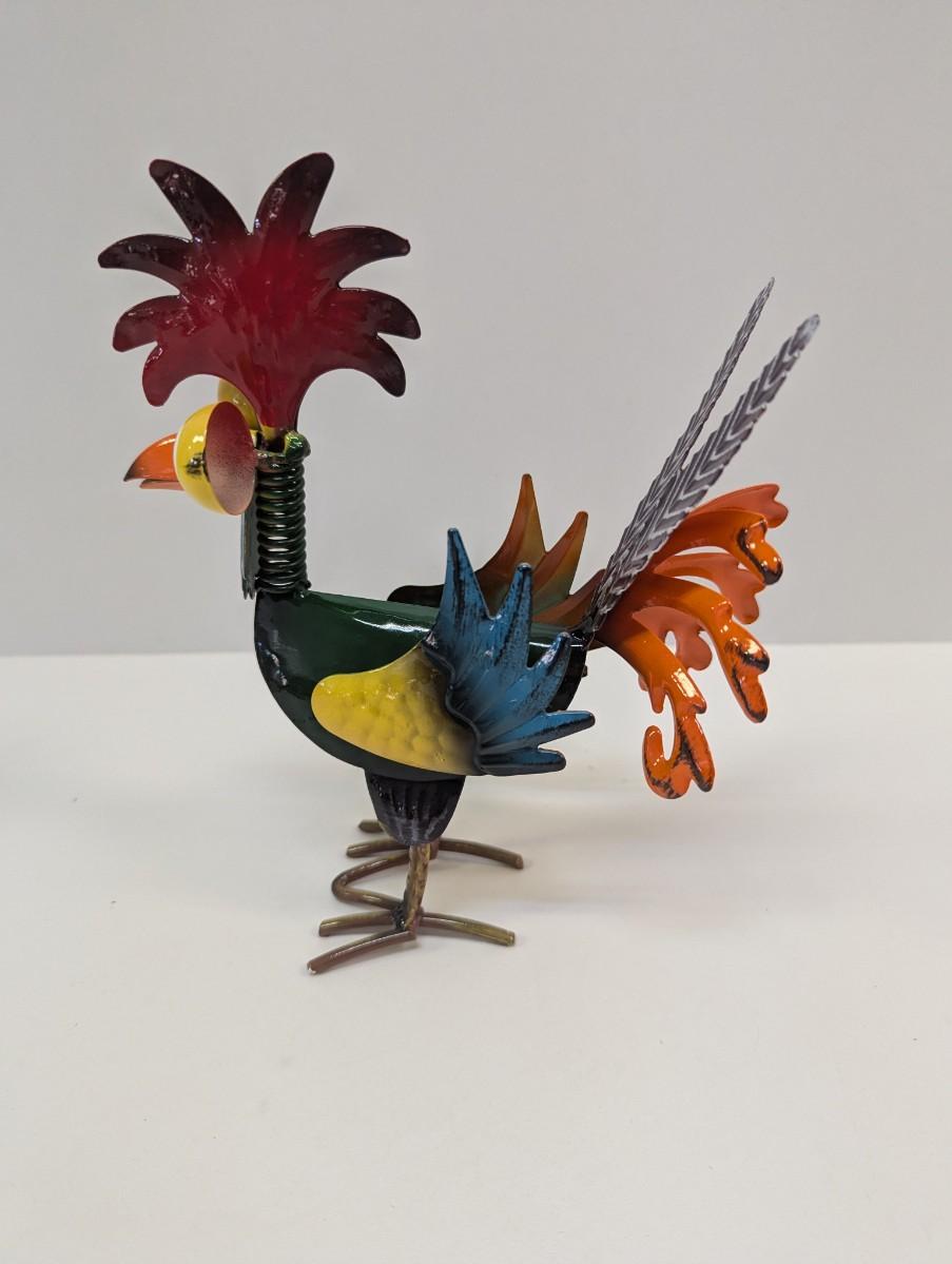 Whimsical Metal Glossy Rooster Decor
