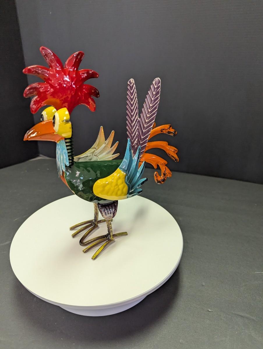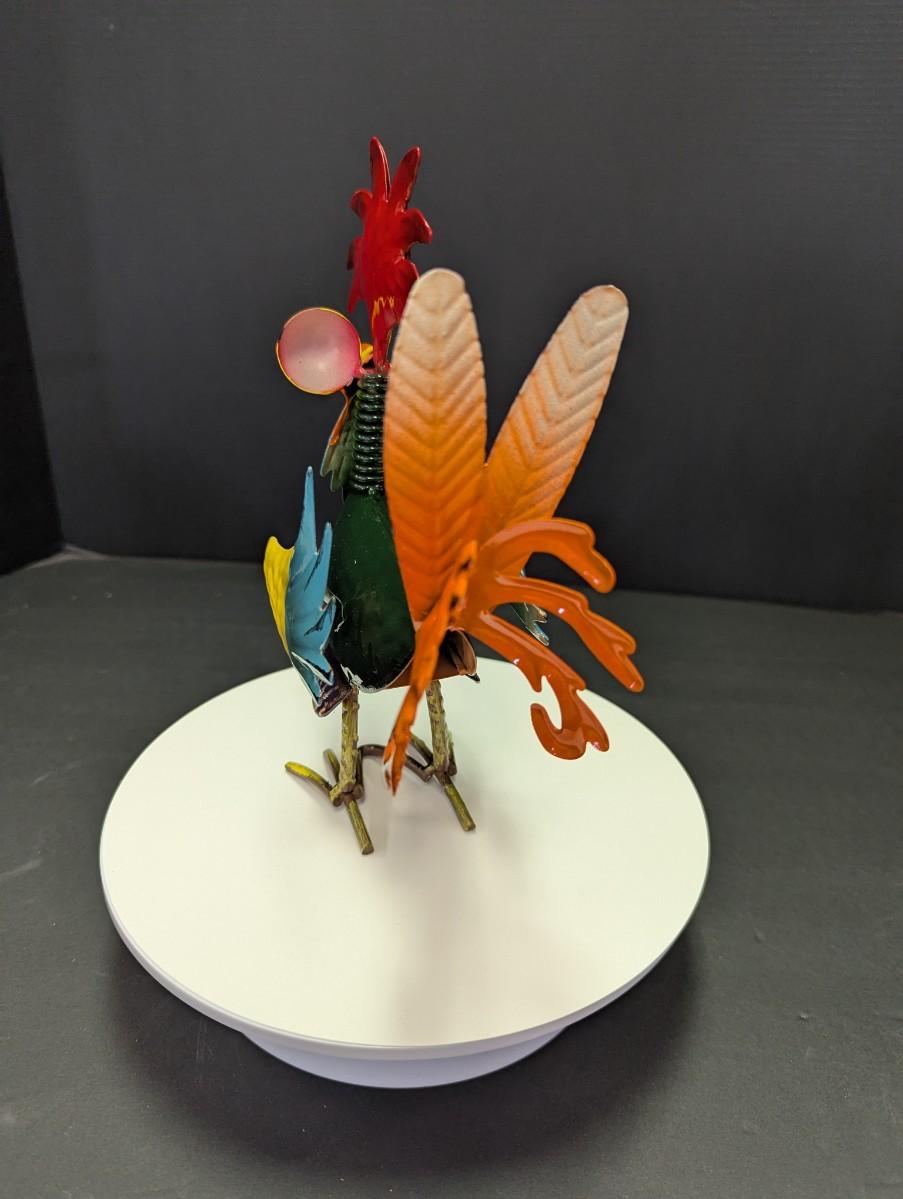 Whimsical Metal Rooster Sculpture Art #2