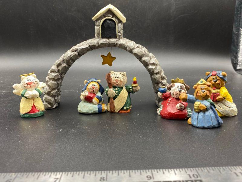 Midwest of Cannon Falls Nativity scene. Done in a whimsical fashion, animals are the figures. Very cute. 2" size figurines.