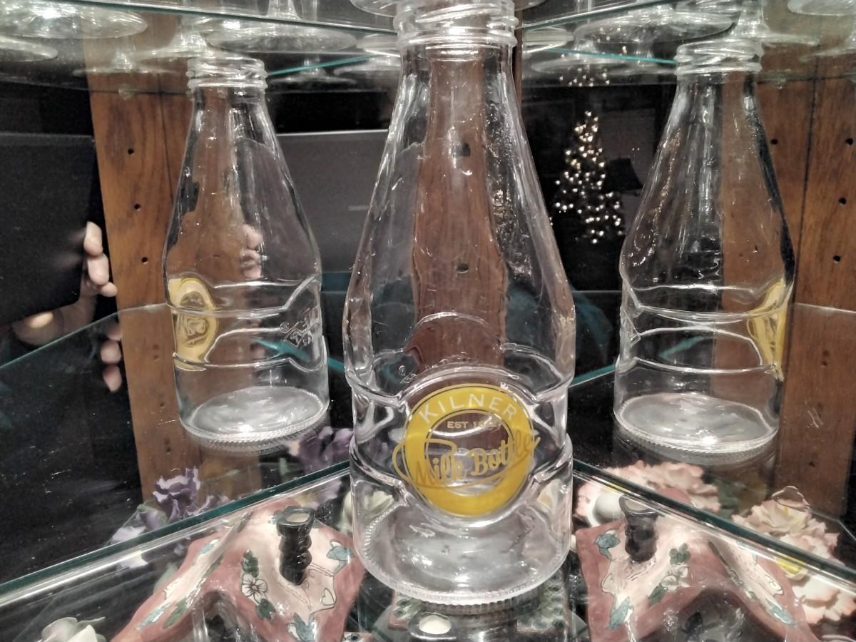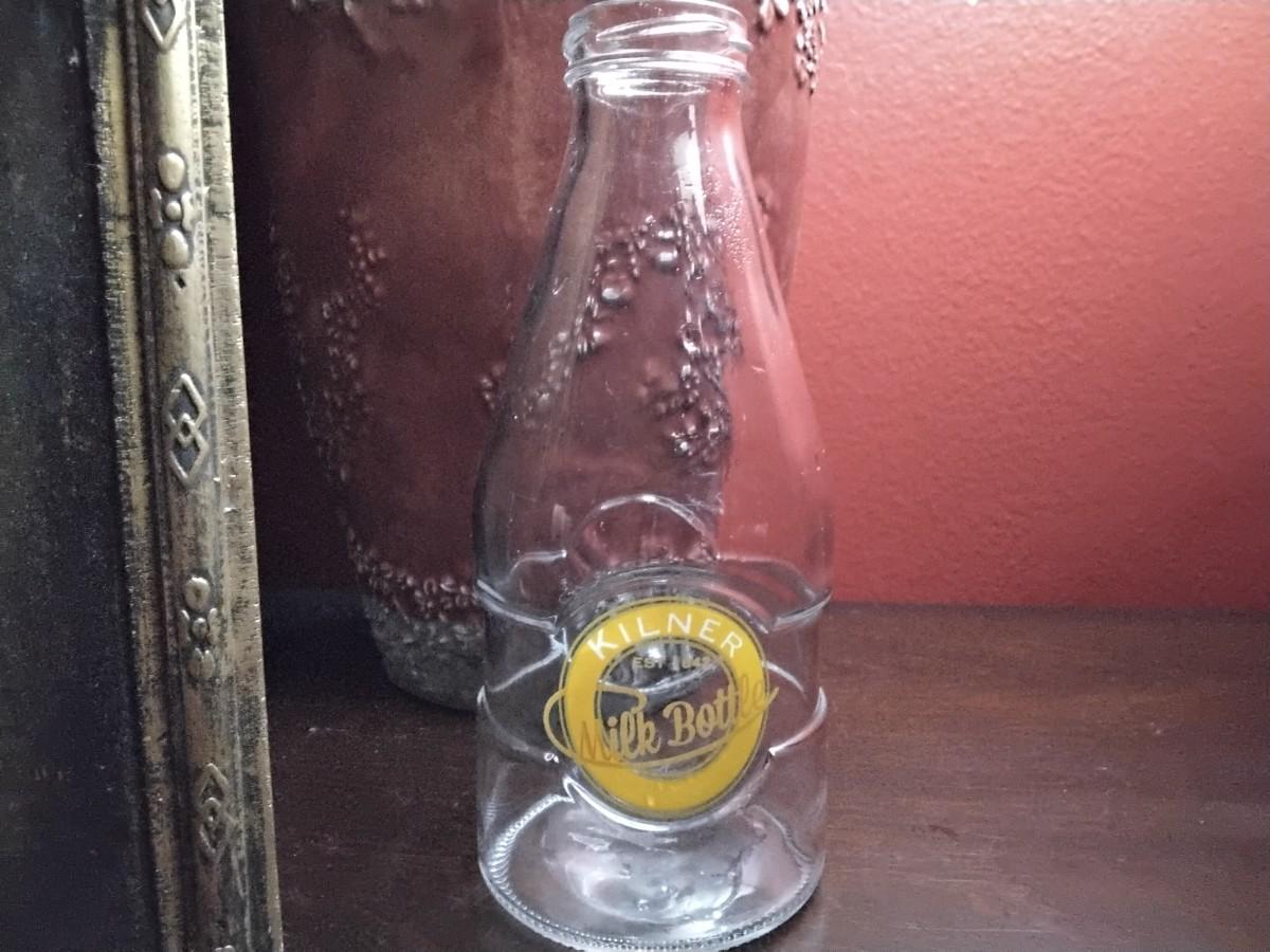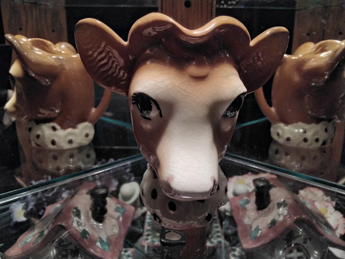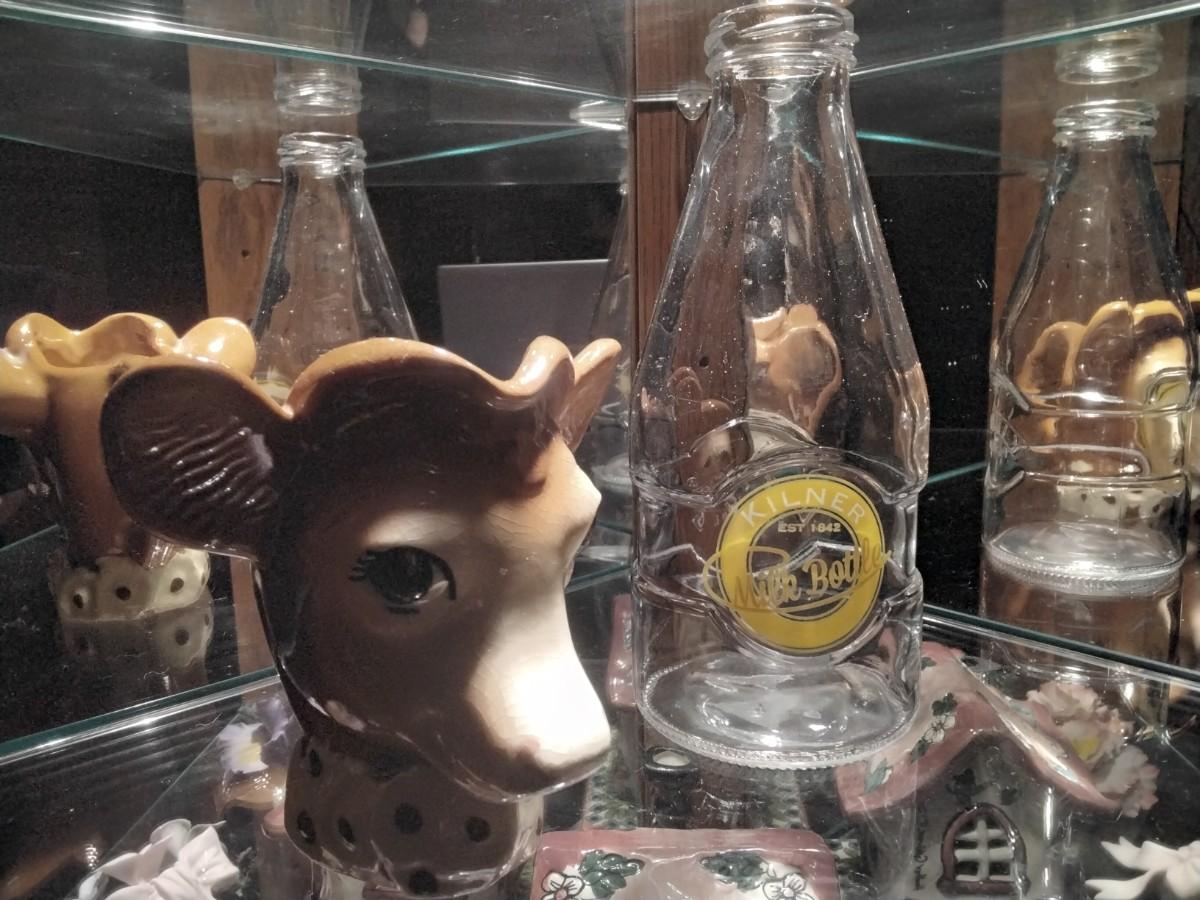 Whimsical vintage cow head creamer and Kilner milk bottle