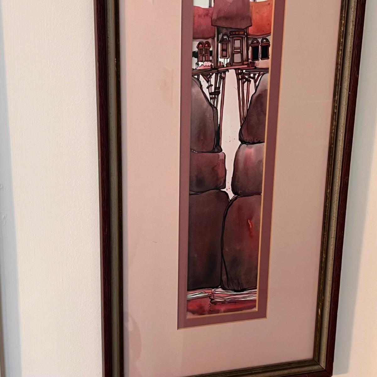 This delightful watercolor print has been beautifully matted in complementary colors and framed under glass in a wood frame. Printed signature - David Kaemming.