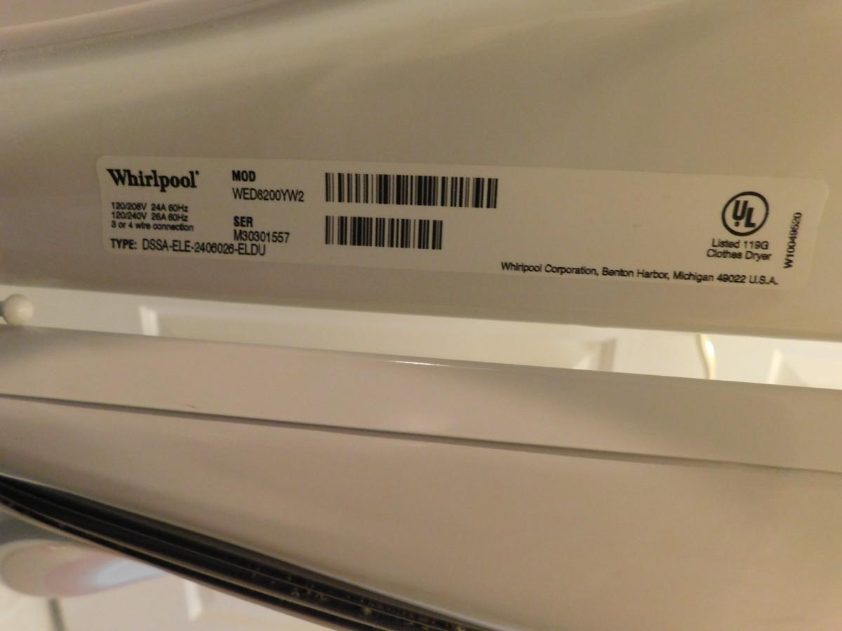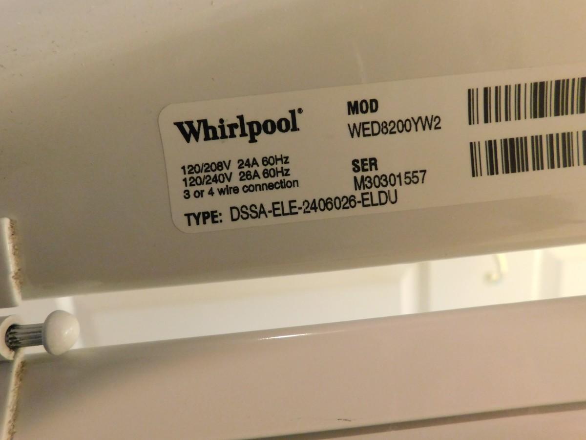 Brand: Whirlpool. Series: Cabrio. Model: WED8200YW.