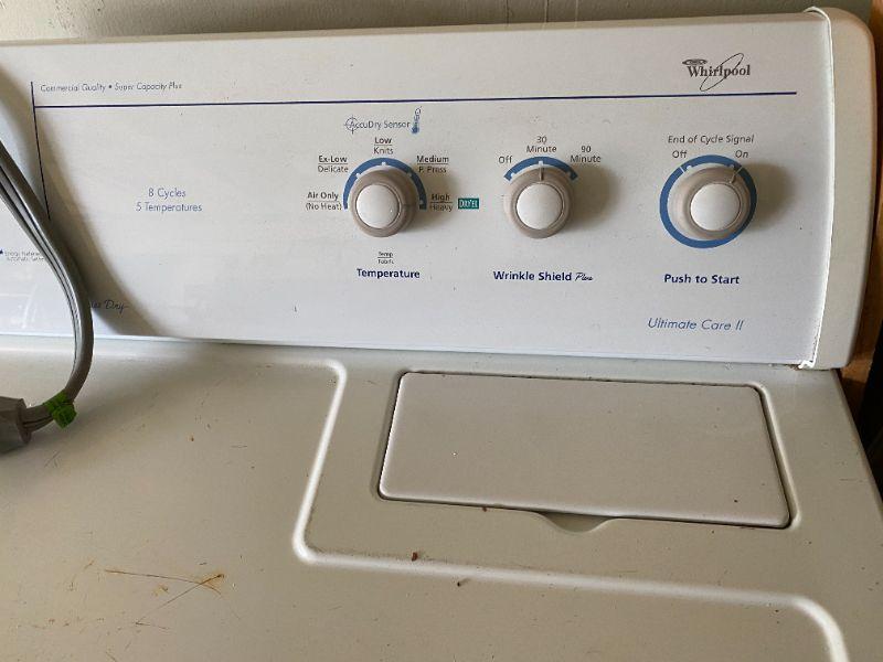 Whirlpool Dryer Ultimate Care, Wrinkle shield plus, 8-cycle, 5-temp, some scratches on exterior
